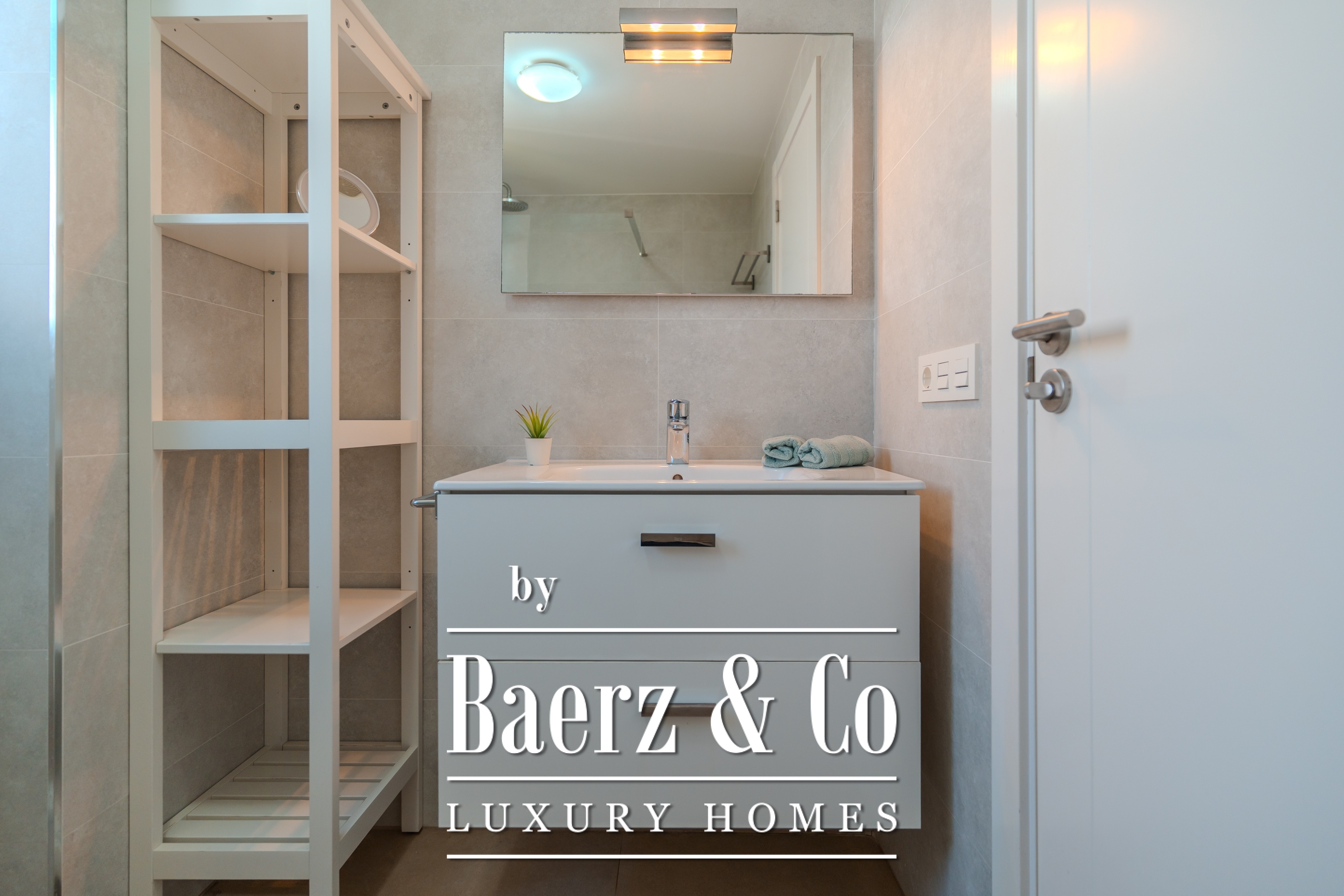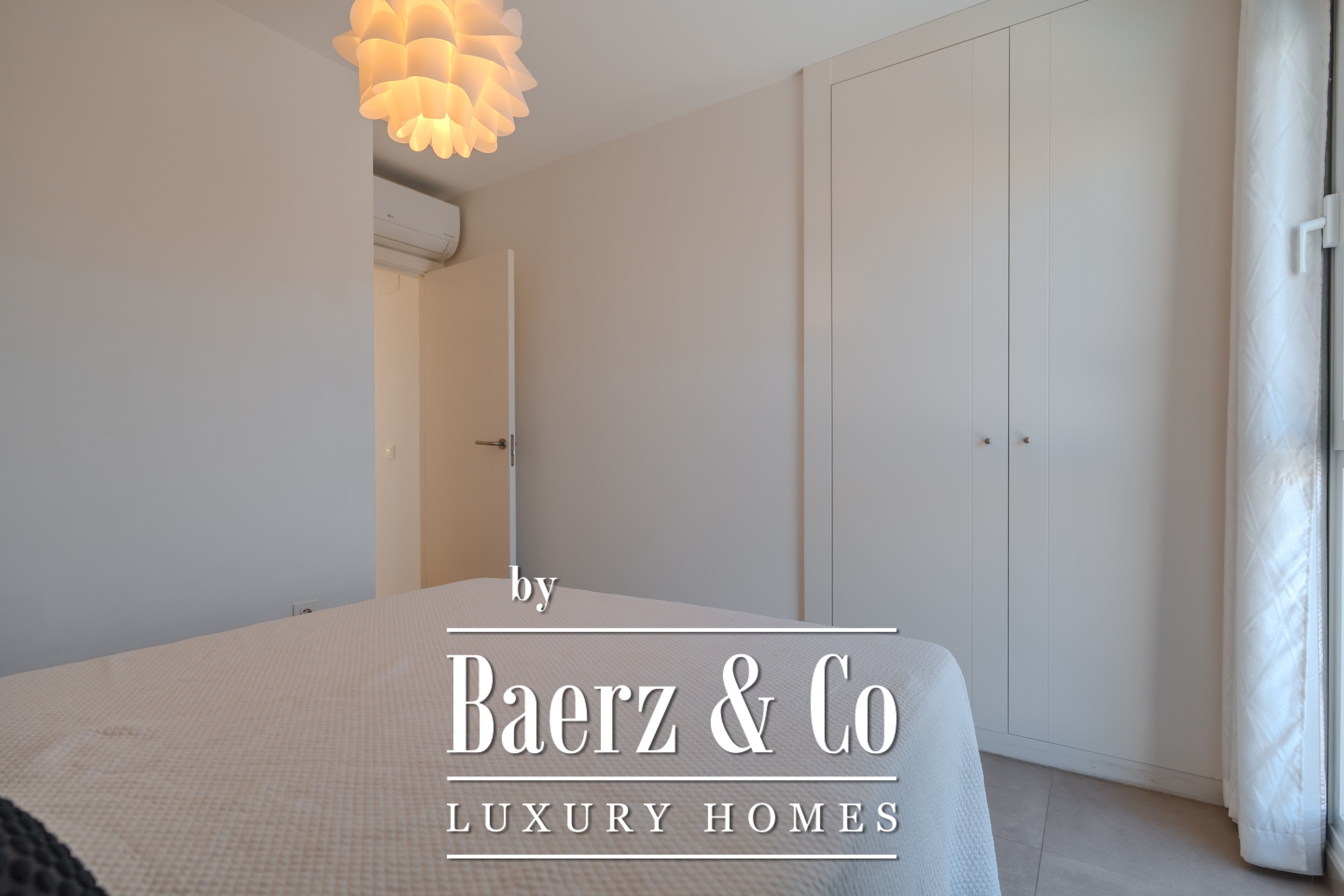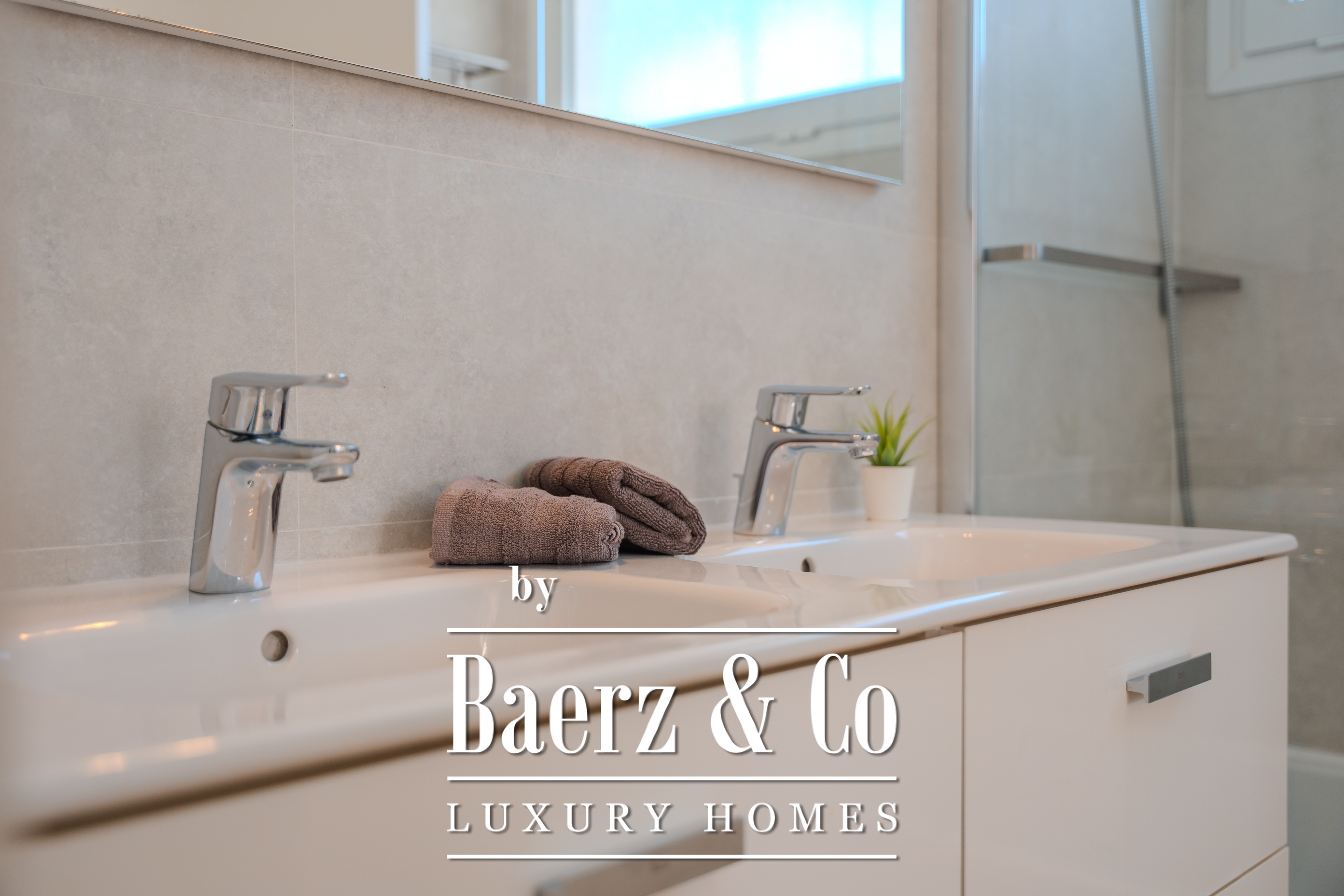 This modern villa offers a bright and comfortable living space on a 386 m² plot and has a total built area of 146 m² (104 m² usable) distributed across two floors. The ground floor (80 m²) includes a living room, dining area, fully equipped kitchen, guest toilet, and storage room. The upper floor (66 m²) has 3 bedrooms with built-in wardrobes, two bathrooms (one en-suite), and an additional storage room. The main bedroom opens onto a terrace with partial sea views. The house is equipped with air-conditioning and solar panels for hot water.