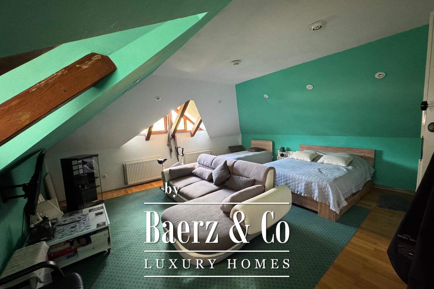 The residential portion encompasses a 110 m² apartment featuring a bedroom, children’s room, bathroom, separate toilet, living space, kitchen, and dining, as well as a supplementary apartment suitable for guests or staff. Twenty private parking spaces and robust materials define the estate, with ceramic tile and parquet flooring, solid oak double-glazed joinery, and full internet connectivity.