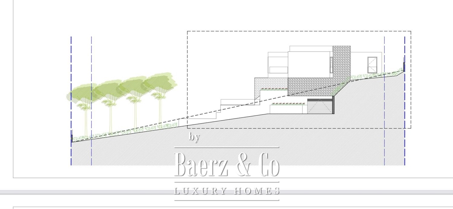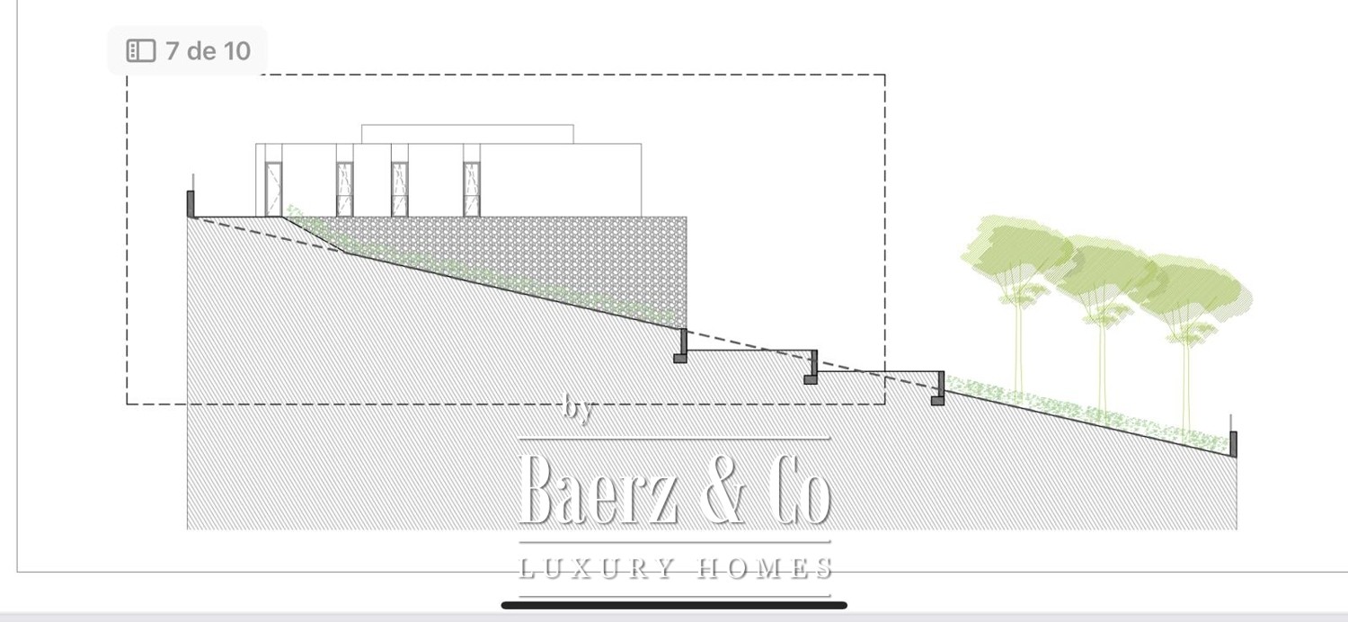 Contemporary villa Portals Nous is a modern statement of architecture and coastal living, situated in one of Mallorca’s most sought-after enclaves. This villa, currently under construction and set on a 1,011 m² elevated plot, offers 290 m² of interior space where expansive glass façades infuse each room with natural light and partial sea views underscore the setting’s exclusivity.