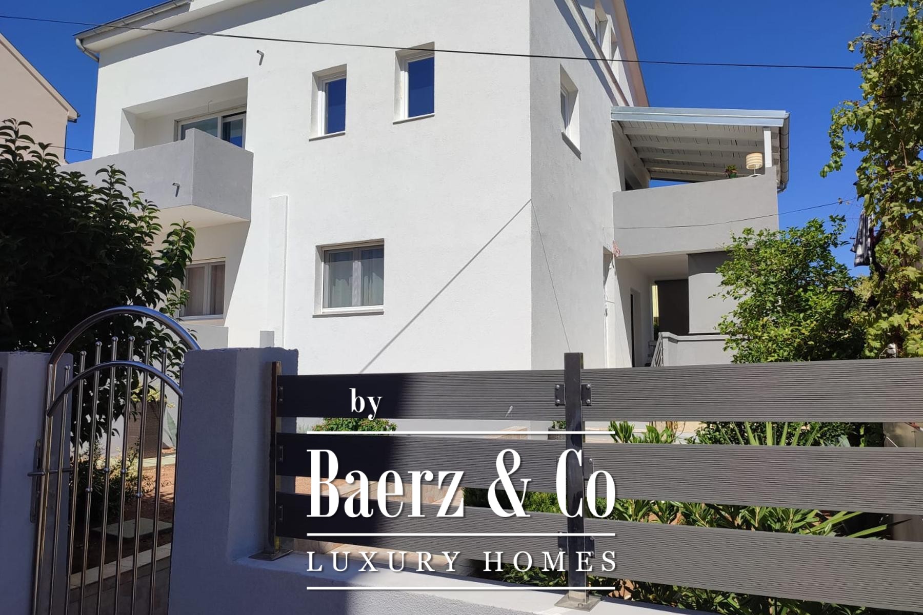 Meticulous renovations were completed in 2022, incorporating top-quality materials such as PVC joinery, Velux roof windows, Mediterranean tondach tiles, and carefully selected ceramics and sanitary ware. The landscaped Mediterranean yard invites leisure and outdoor dining amidst greenery and barbecue, and parking accommodates up to four cars. This house with three apartments Preko presents a rare opportunity to embrace Mediterranean living in a central location with sea views.