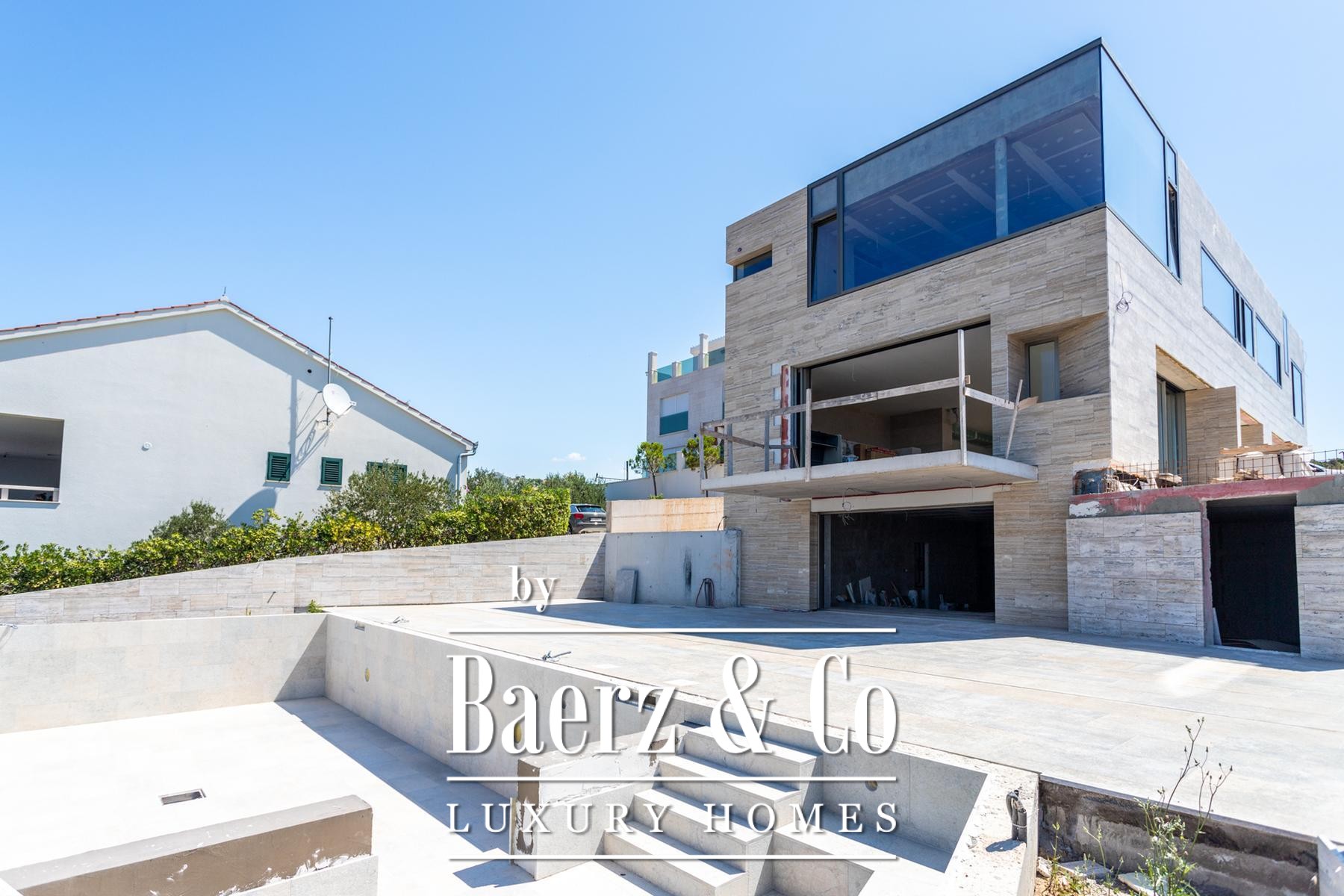 Villa Rogoznica first row to the sea presents a rare intersection of cutting-edge architecture and an unrepeatable coastal setting. This villa occupies 540 m² of living space on an 810 m² plot, wrapping contemporary life in immediate proximity to the Adriatic, bordered by verdant forest. Arranged over three levels, the experience of space unfolds in measured light and thoughtful design.