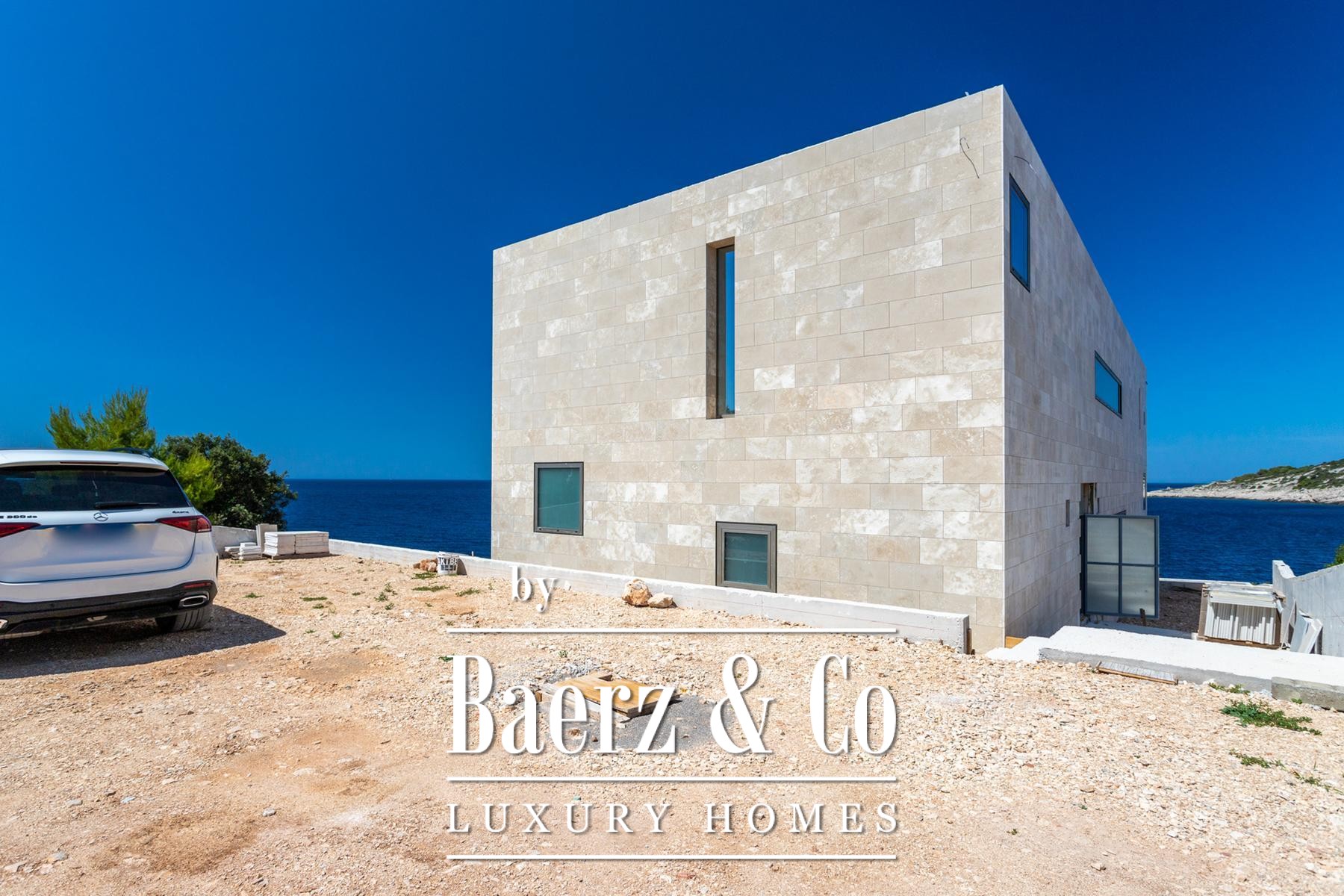 Materials specified include natural stone, tiles, and first-class American walnut parquet. High-end fixtures blend Grohe sanitary ware and a Mitsubishi multi VRF air conditioning system. Otis elevators serve each level, while modern designer furnishings echo the contemporary character and natural setting. Outdoor amenities include five parking spaces, barbecue and kitchen area, dedicated to restful gatherings by the sea. Completion is expected in December 2024, promising a villa in Croatia tailored to the discreet tastes of a global audience.