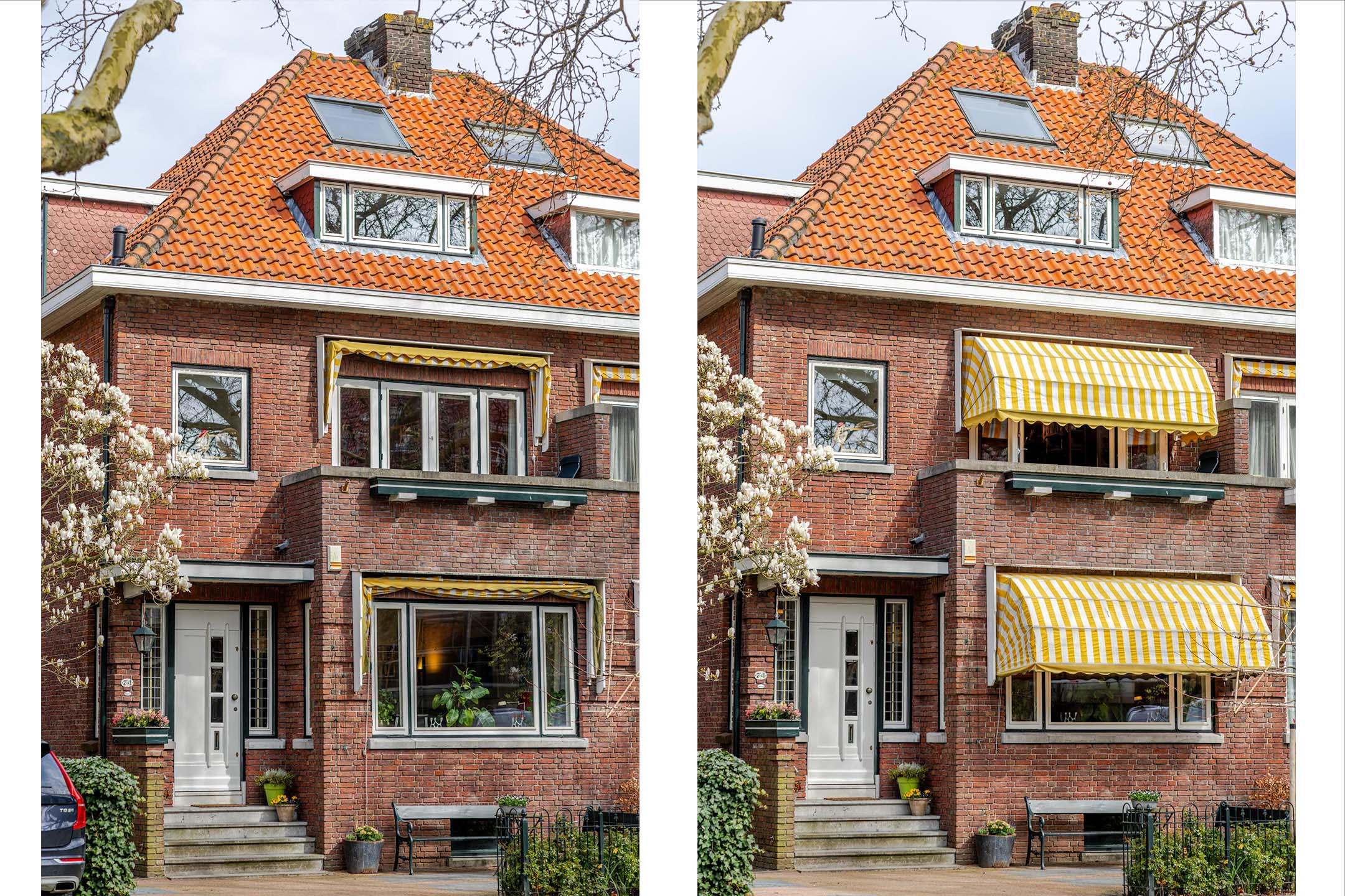 - exterior sun blinds (awnings) on the front facade