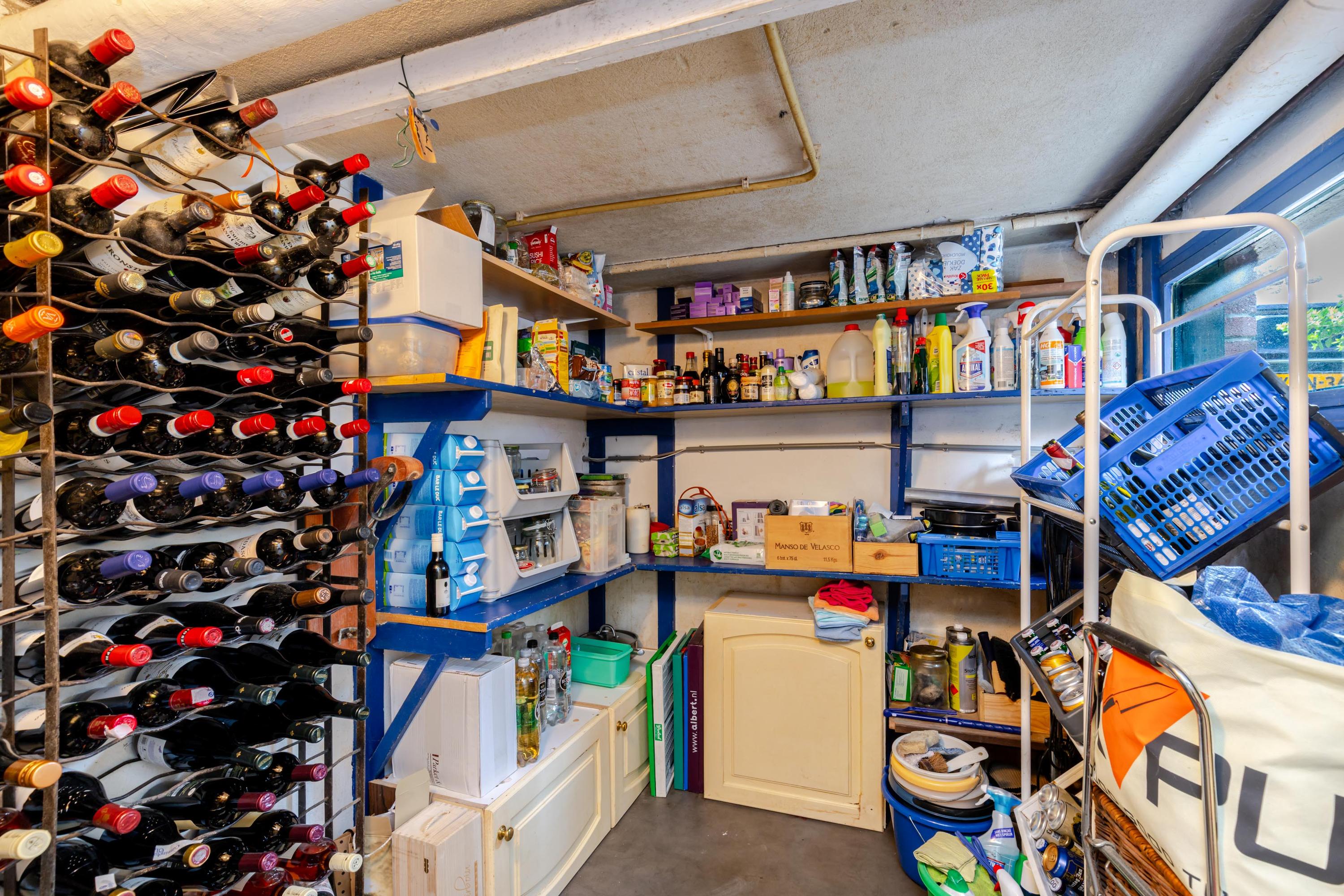 A fantastic space extending under the entire house with a ceiling height of approx. 190cm in the hallway and approx. 175cm in the rooms under the beams and approx. 198cm between the beams, consisting of a hallway with a washing machine and dryer setup and access to the backyard, a pantry (ideal for a wine cellar), and 2 spacious rooms or hobby rooms that can be used for multiple purposes.