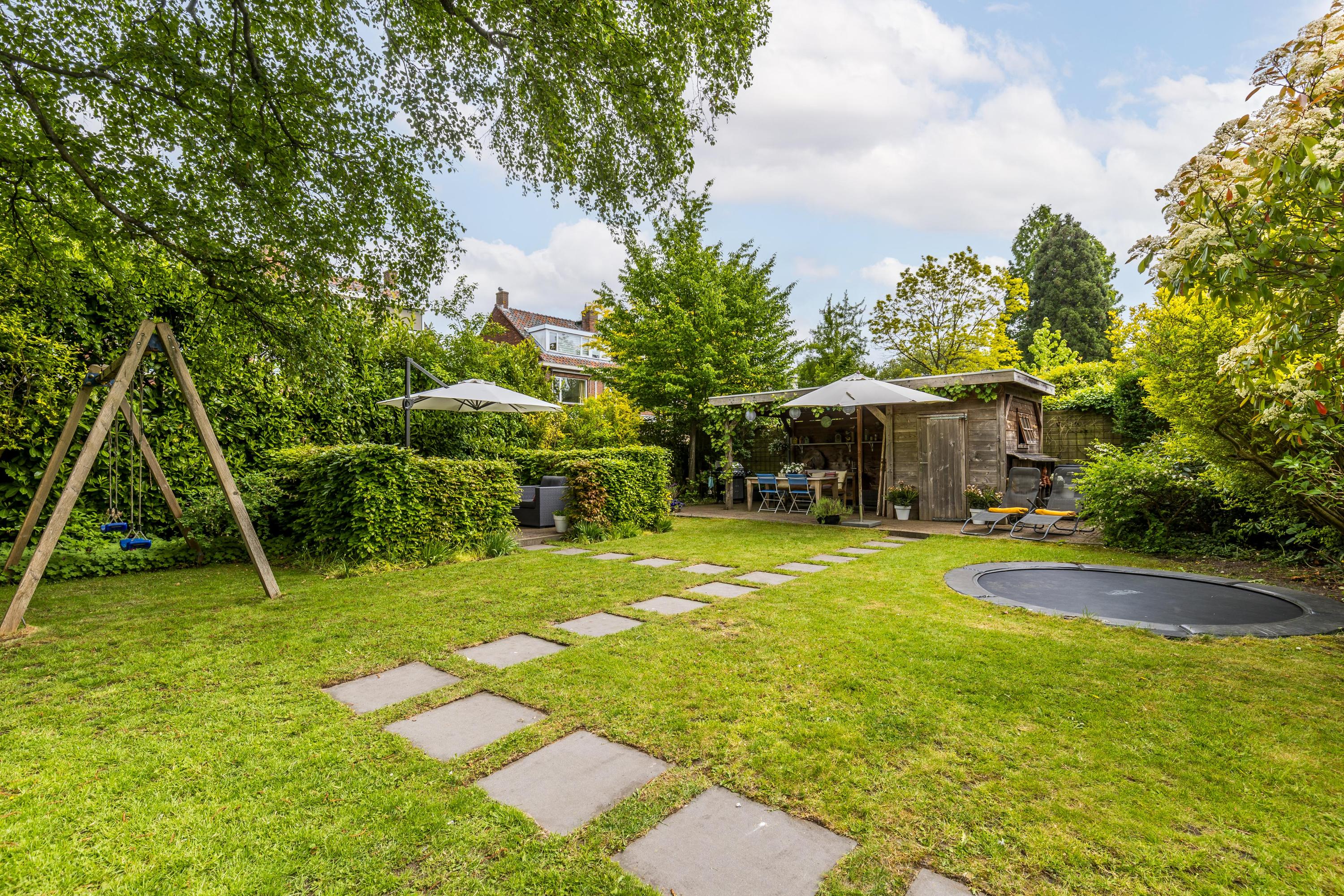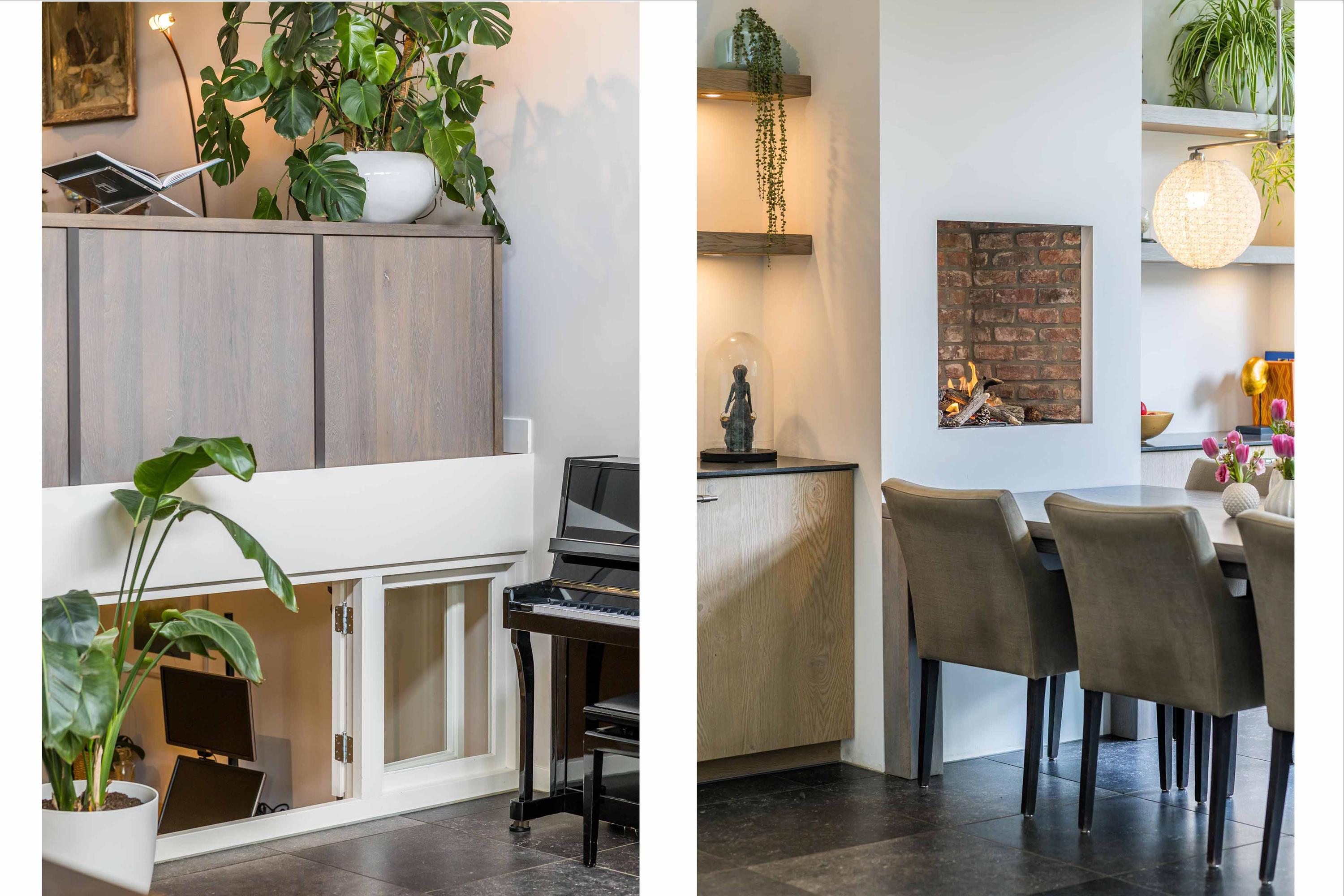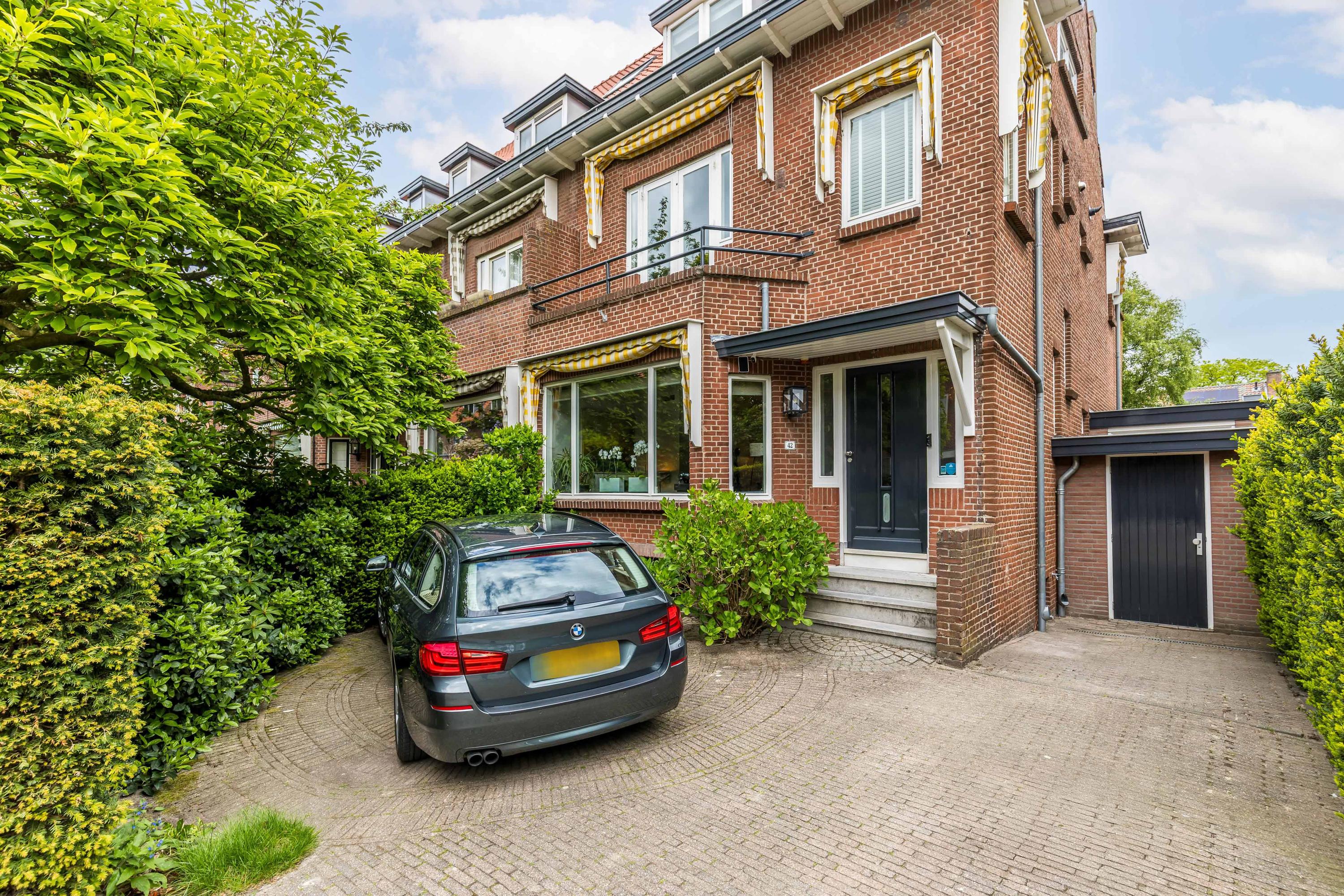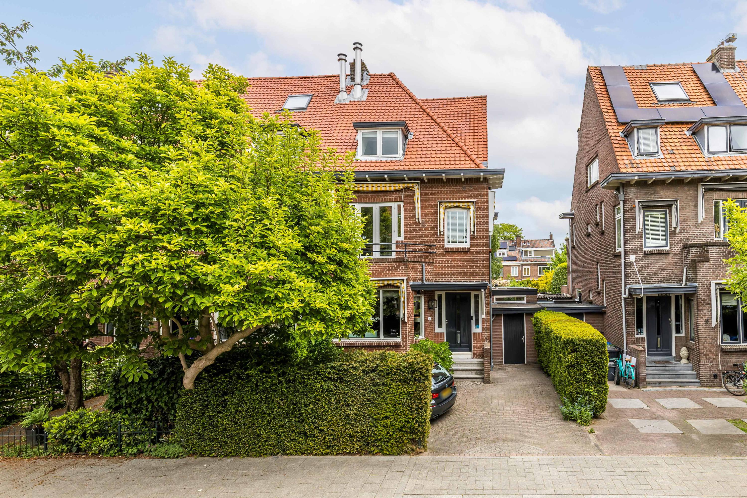Ground floor: Entrance, light and spacious hall with extra spacious toilet with washbasin, 2 staircase cupboards for coats and shoes, beautiful wide and light living room with an oak parquet floor, the high-efficiency wood-burning fireplace that radiates a wonderful, comfortable warmth. The kitchen-diner is situated in the attractive extension at the rear. This extension has been executed to perfection, so that it feels as if it has always been like this. The gas-fired fireplace at the head of the dining table is the mood maker for many cozy dinners and drinks at home. From the kitchen-diner there is access to the basement with laundry room and to the utility room that is situated in the side extension. At the front is the storage function/shed with access to the street, ideal for putting a nice (cargo) bike or scooter inside and at the rear the utility room function with high storage cupboards, a washbasin unit, which is handy for sports shoes, coats or if you have pets. The utility room also has a door to the back garden, so you can easily go to the back garden with a green bin, for example. In addition, the back garden has a back entrance at the rear, connecting to the back path.
