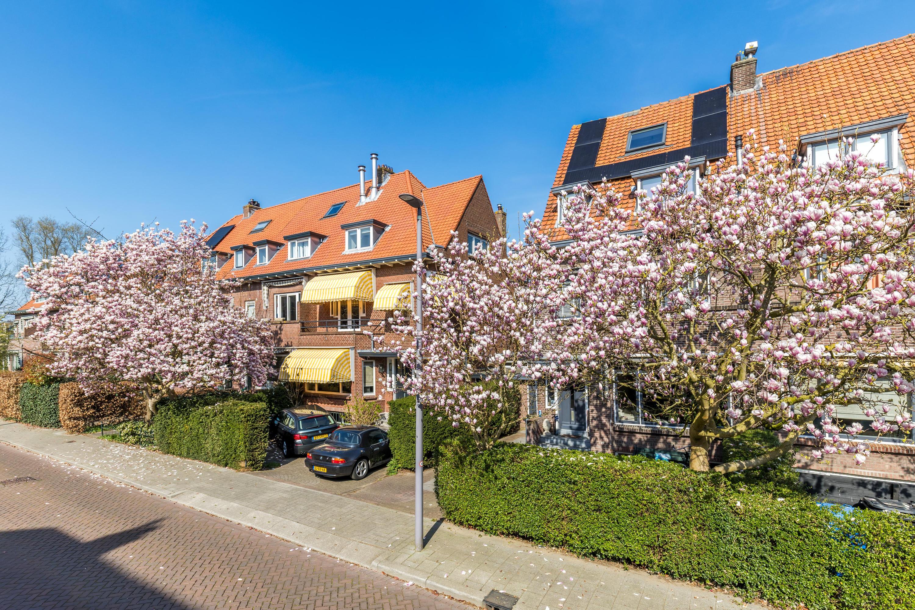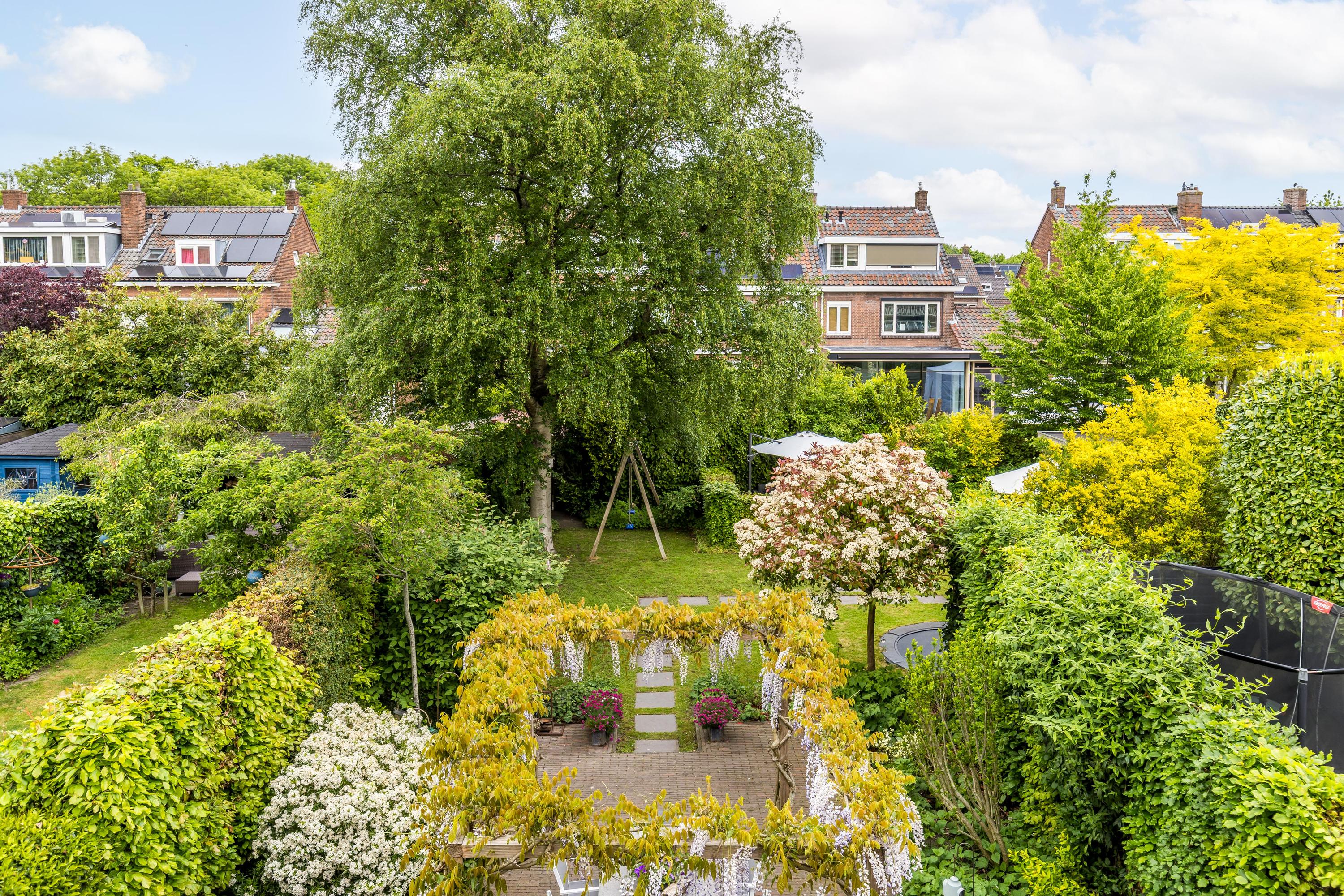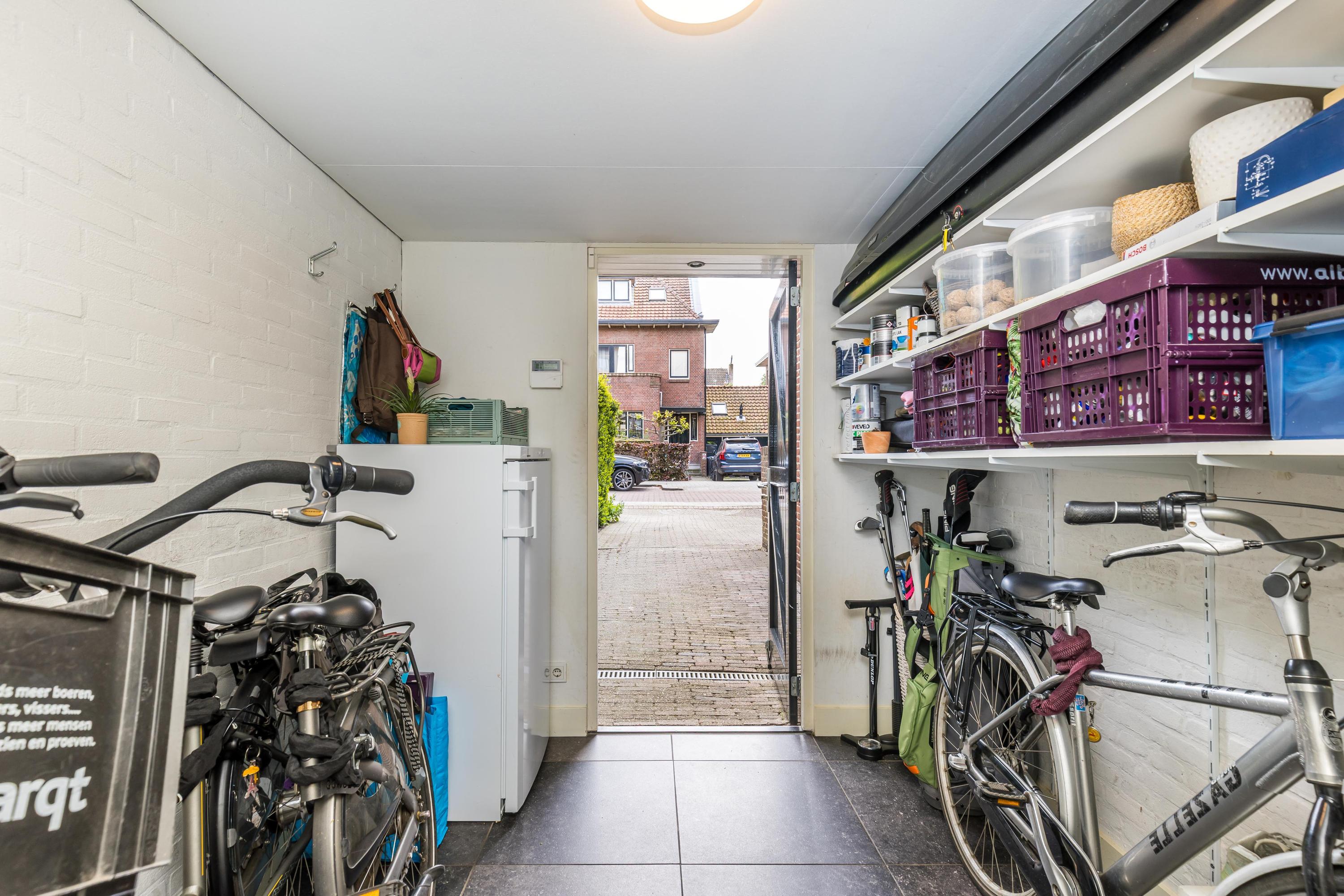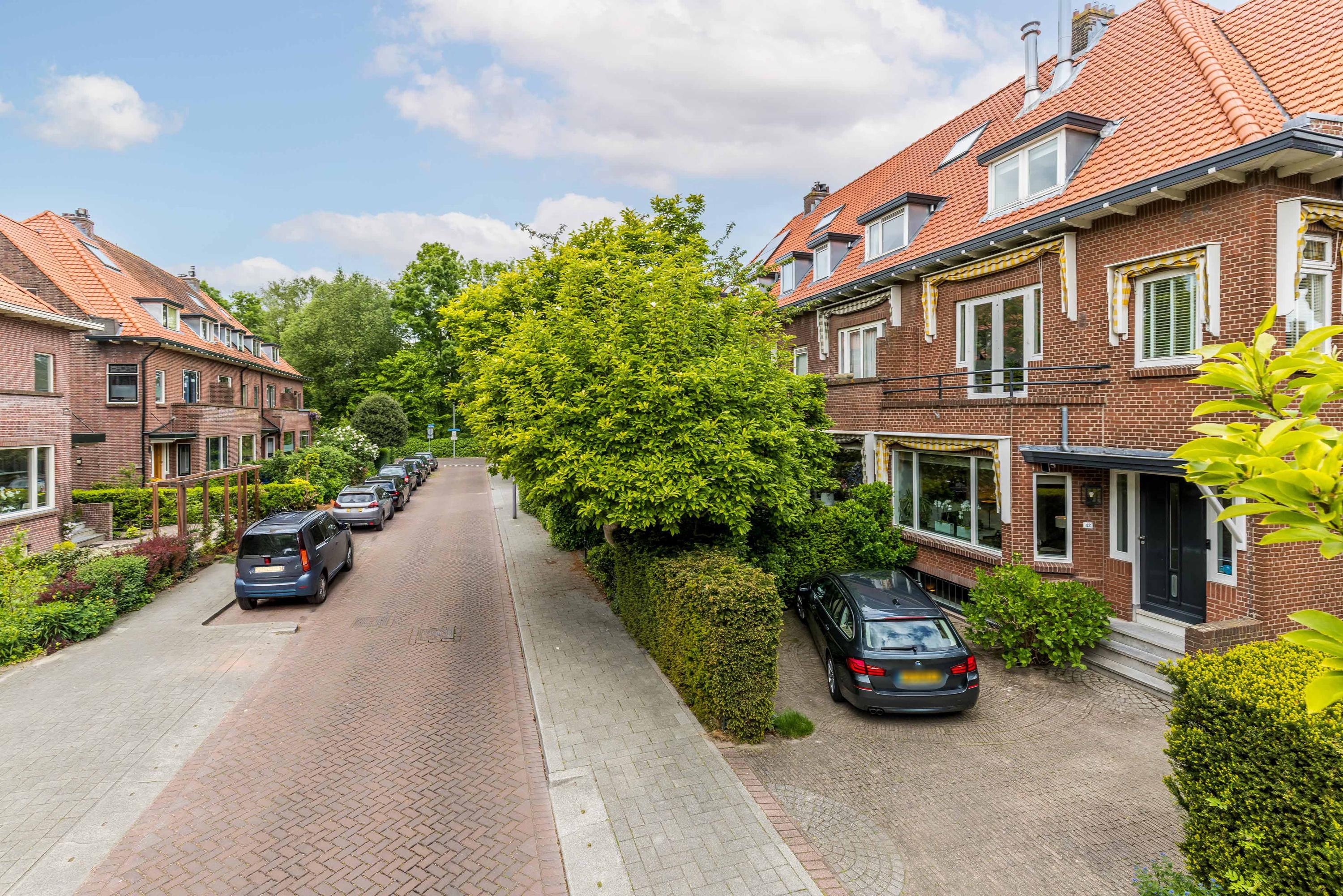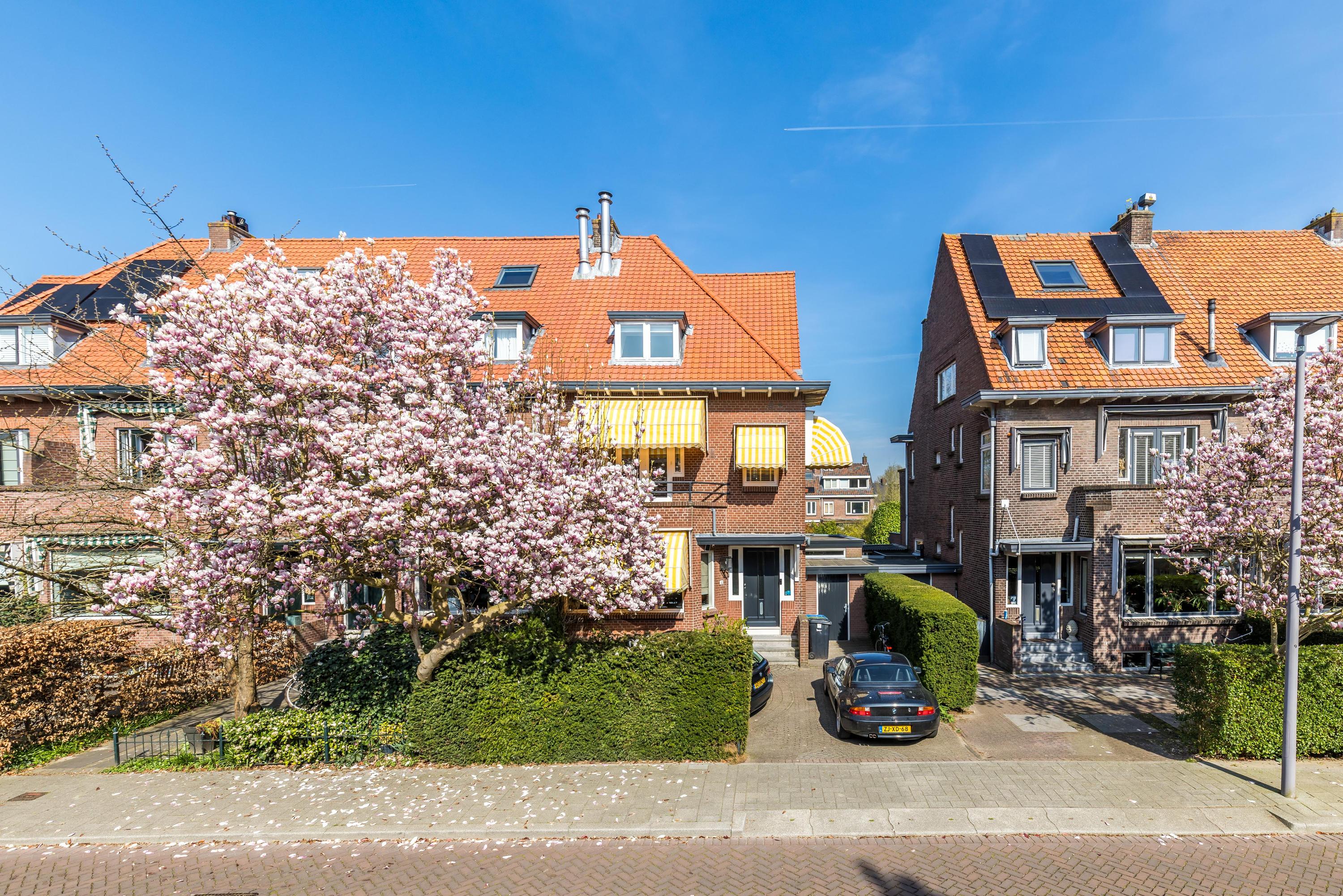 Ground floor: Entrance, light and spacious hall with extra spacious toilet with washbasin, 2 staircase cupboards for coats and shoes, beautiful wide and light living room with an oak parquet floor, the high-efficiency wood-burning fireplace that radiates a wonderful, comfortable warmth. The kitchen-diner is situated in the attractive extension at the rear. This extension has been executed to perfection, so that it feels as if it has always been like this. The gas-fired fireplace at the head of the dining table is the mood maker for many cozy dinners and drinks at home. From the kitchen-diner there is access to the basement with laundry room and to the utility room that is situated in the side extension. At the front is the storage function/shed with access to the street, ideal for putting a nice (cargo) bike or scooter inside and at the rear the utility room function with high storage cupboards, a washbasin unit, which is handy for sports shoes, coats or if you have pets. The utility room also has a door to the back garden, so you can easily go to the back garden with a green bin, for example. In addition, the back garden has a back entrance at the rear, connecting to the back path.