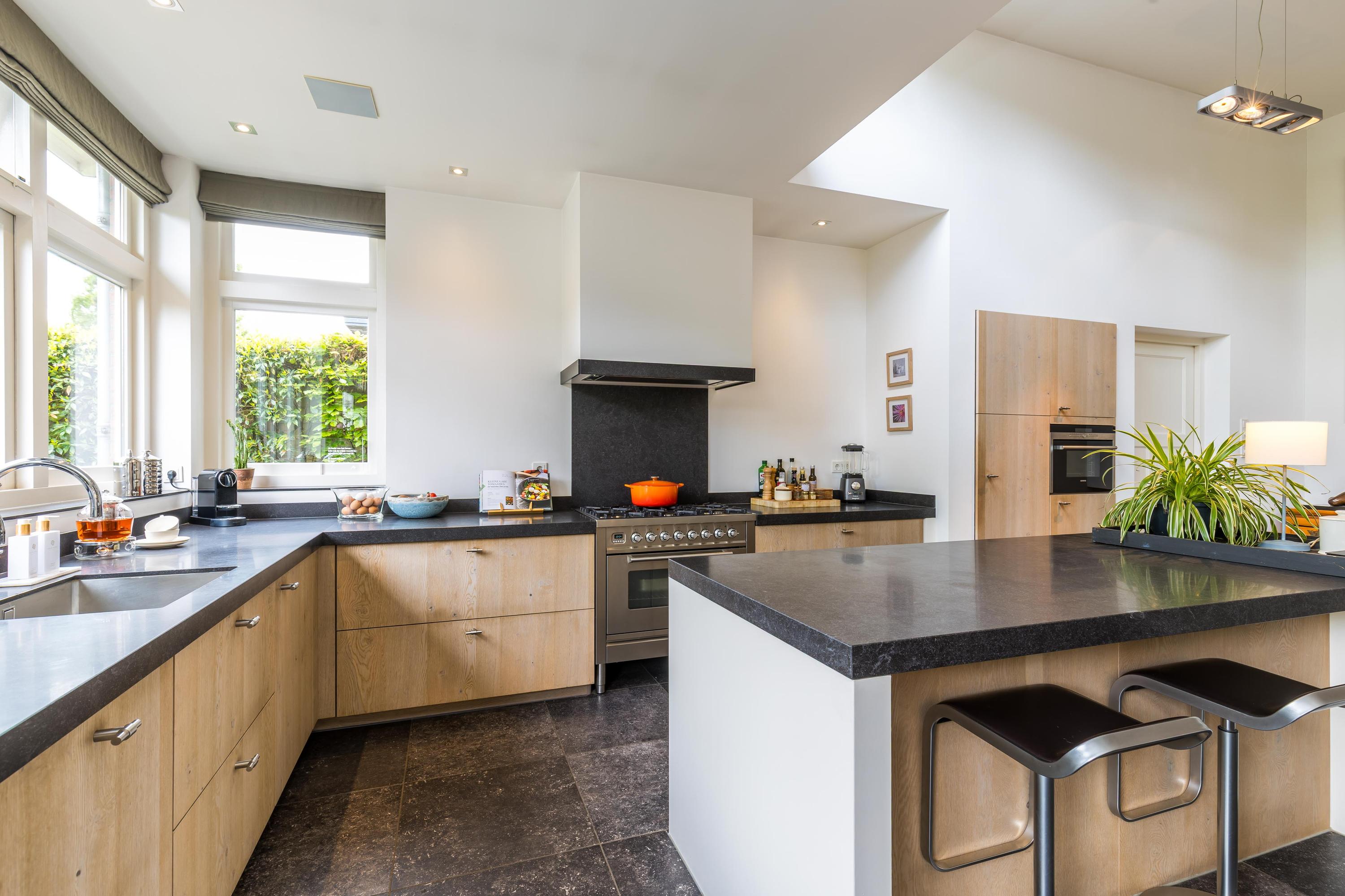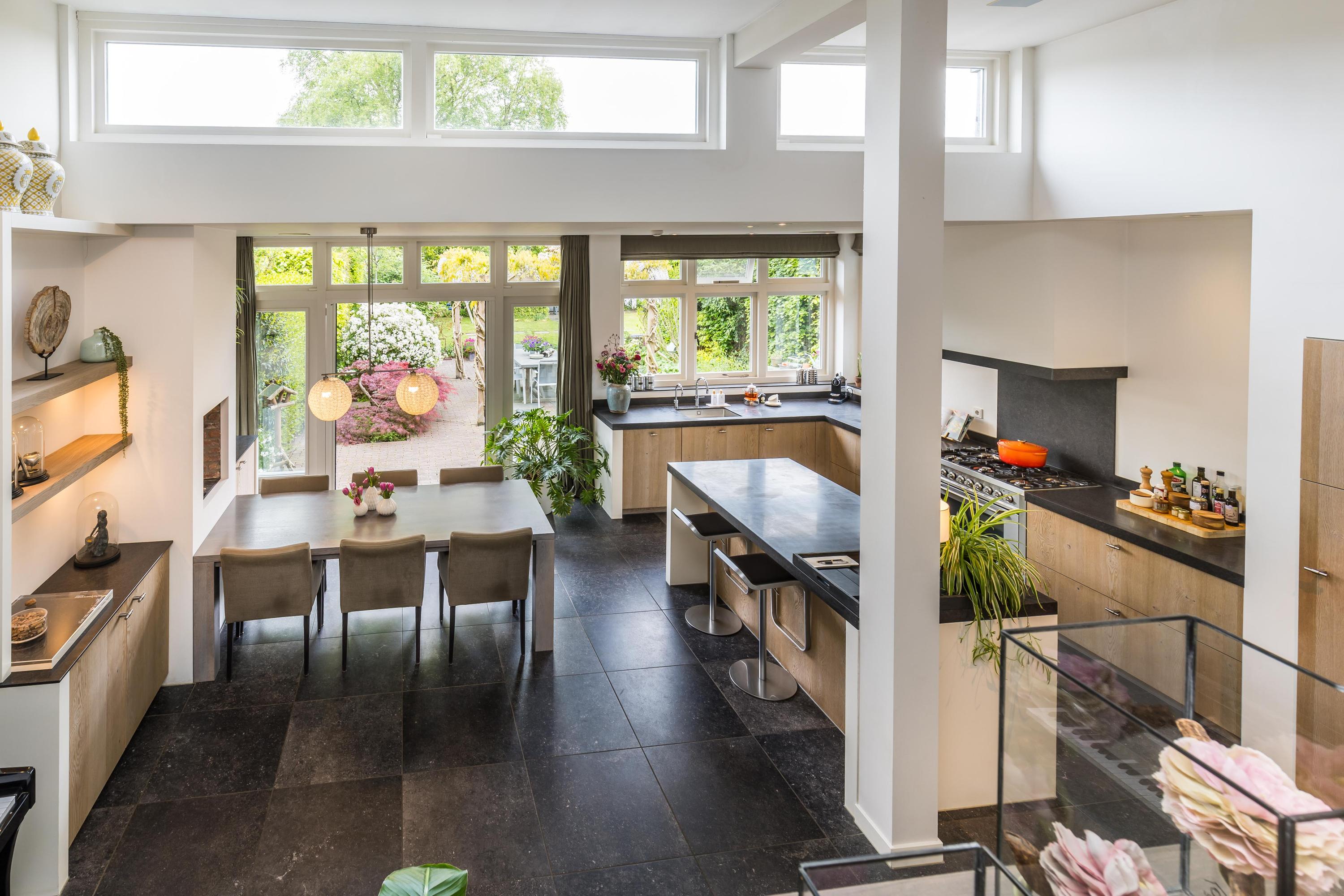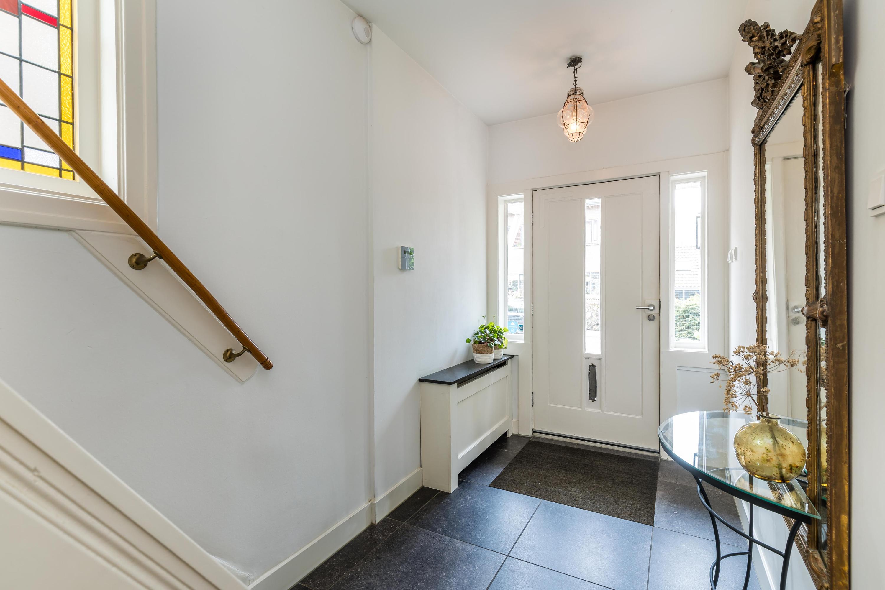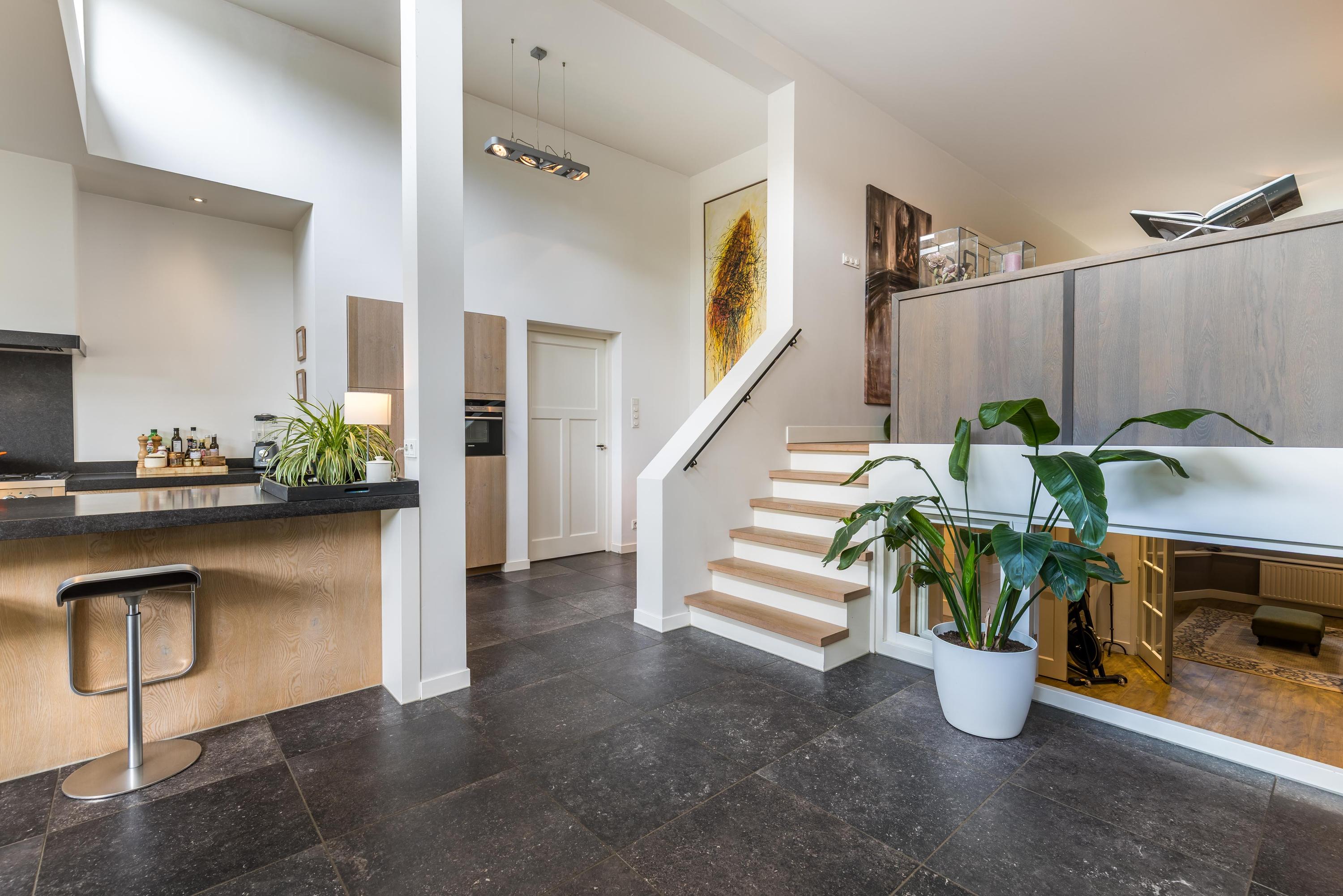 Ground floor: Entrance, light and spacious hall with extra spacious toilet with washbasin, 2 staircase cupboards for coats and shoes, beautiful wide and light living room with an oak parquet floor, the high-efficiency wood-burning fireplace that radiates a wonderful, comfortable warmth. The kitchen-diner is situated in the attractive extension at the rear. This extension has been executed to perfection, so that it feels as if it has always been like this. The gas-fired fireplace at the head of the dining table is the mood maker for many cozy dinners and drinks at home. From the kitchen-diner there is access to the basement with laundry room and to the utility room that is situated in the side extension. At the front is the storage function/shed with access to the street, ideal for putting a nice (cargo) bike or scooter inside and at the rear the utility room function with high storage cupboards, a washbasin unit, which is handy for sports shoes, coats or if you have pets. The utility room also has a door to the back garden, so you can easily go to the back garden with a green bin, for example. In addition, the back garden has a back entrance at the rear, connecting to the back path.
