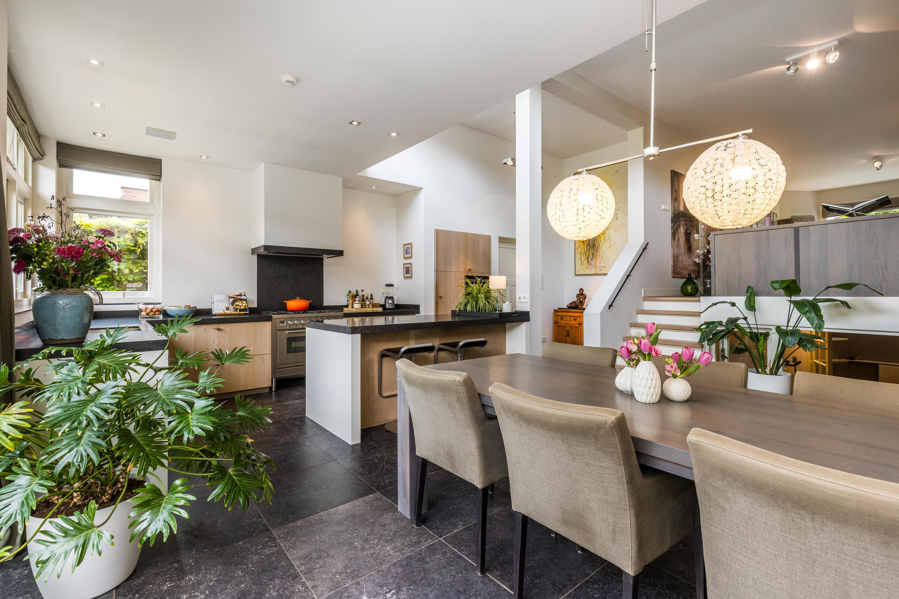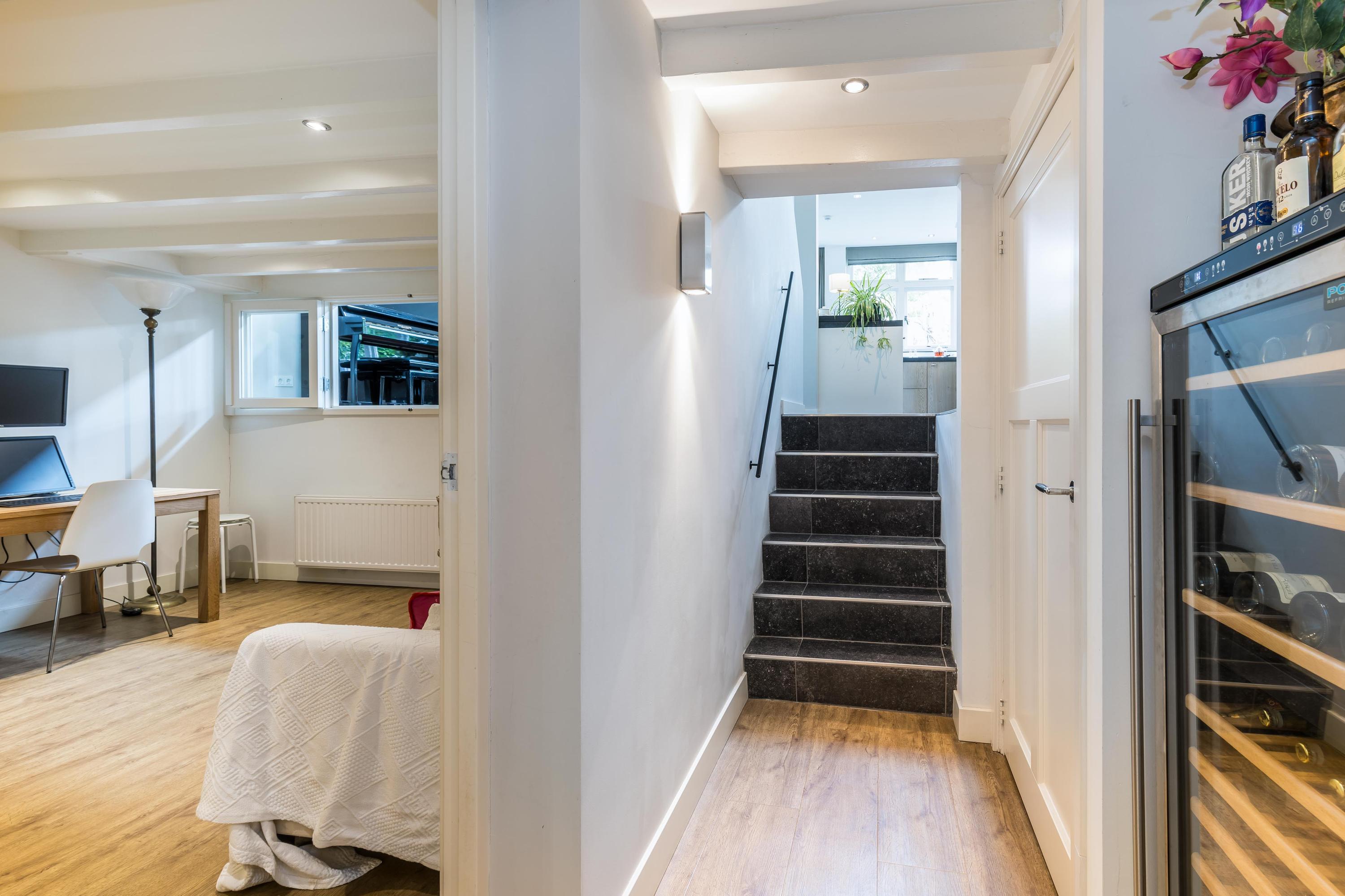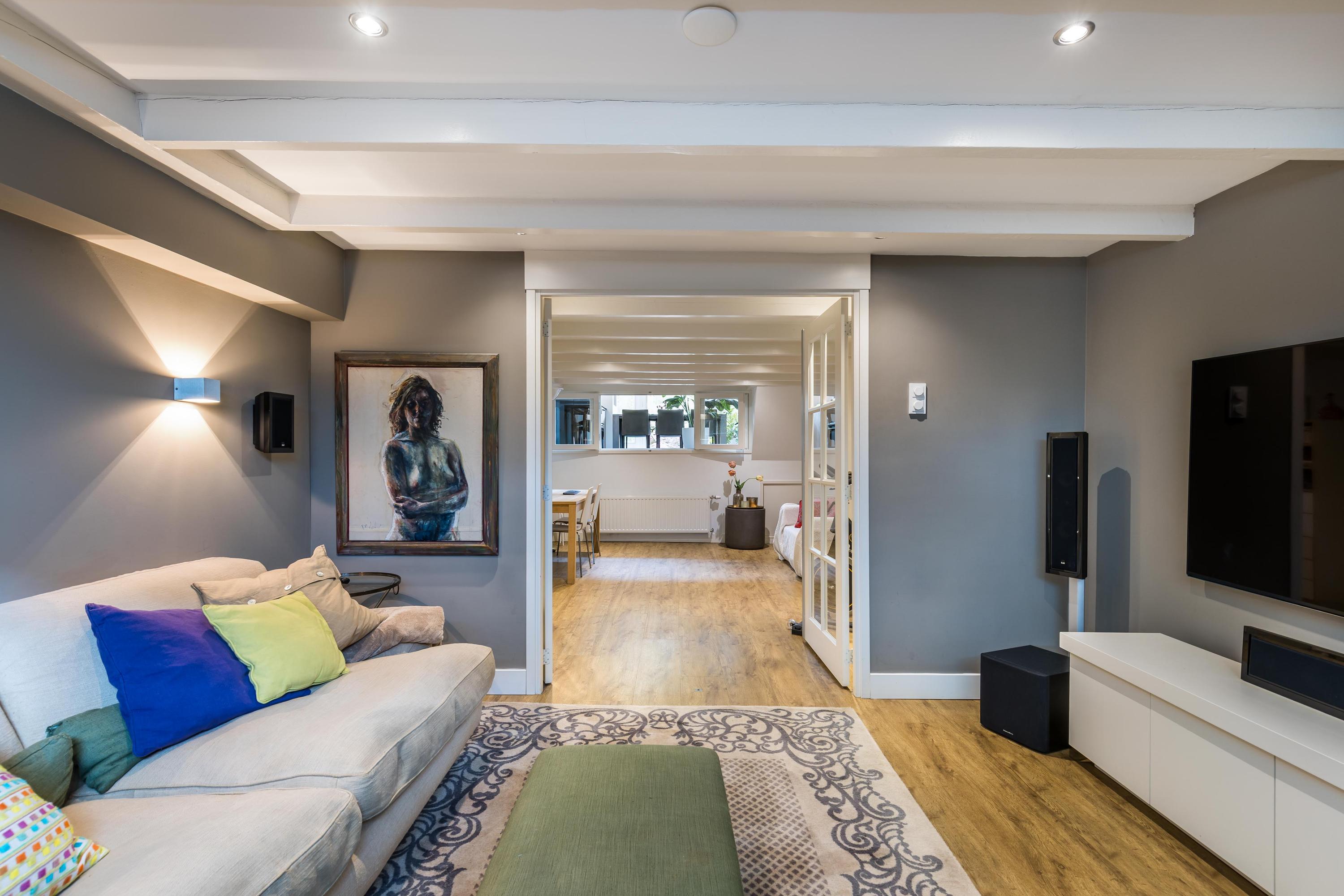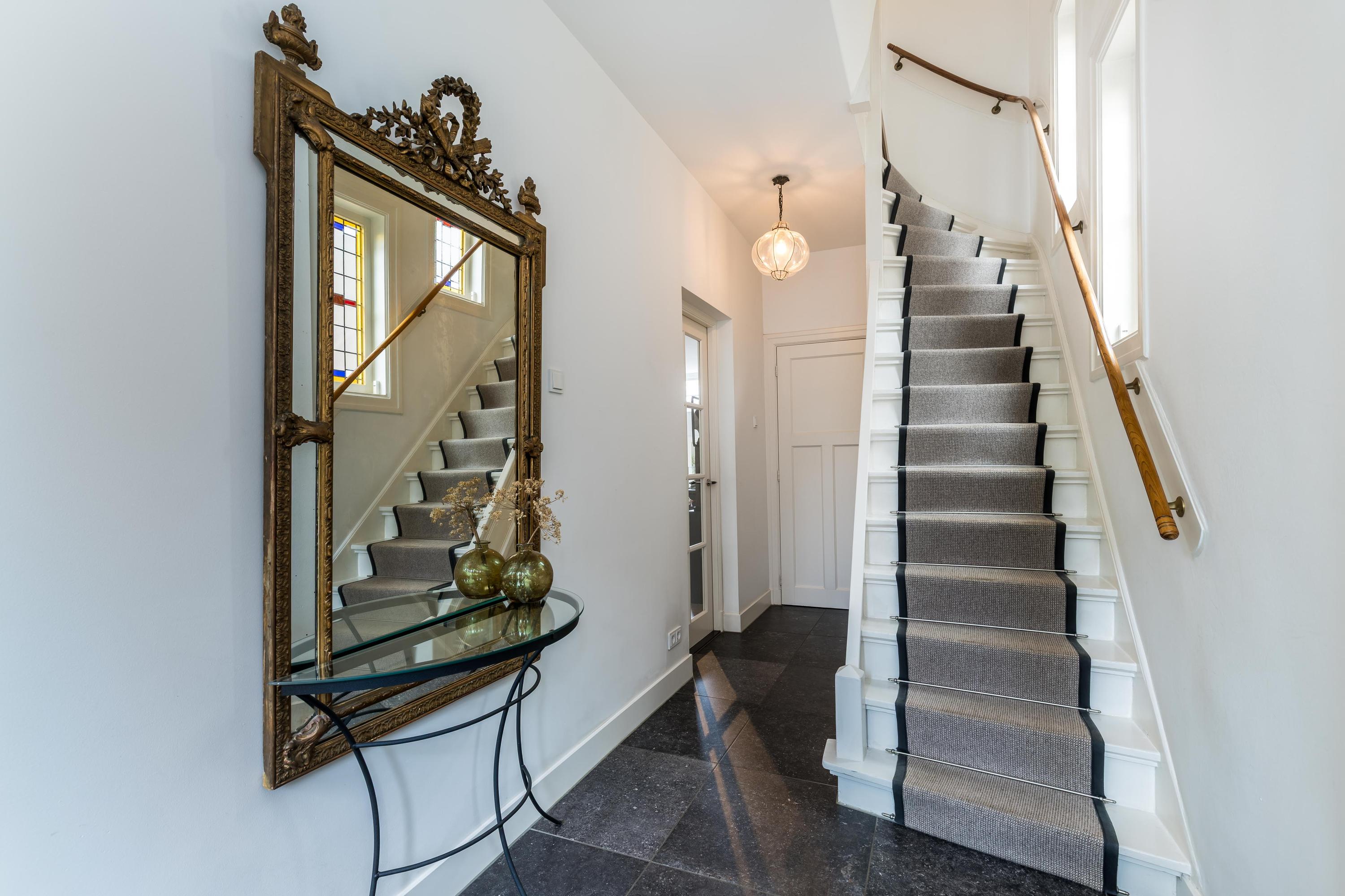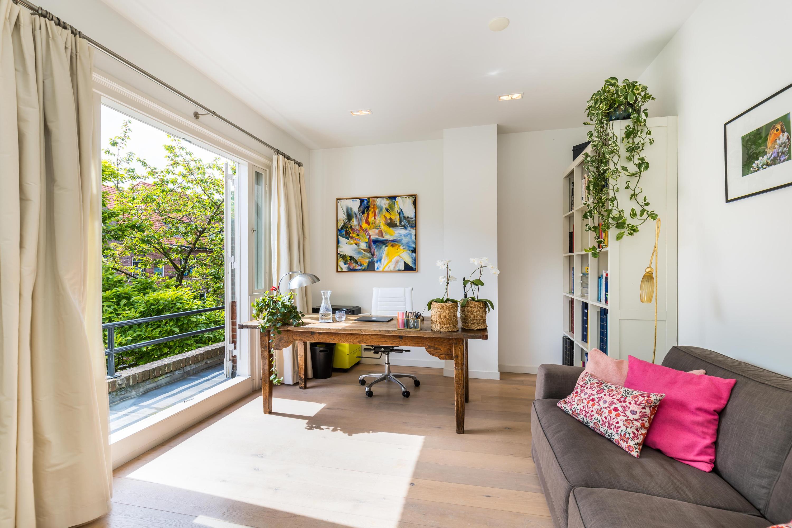 The beautiful spacious kitchen/diner with high ceiling and the nature and child-friendly backyard may be the real eye-catchers, but the house has many more strong plus points and unique selling points. For example, the combination of the preserved authentic details and the applied modern comfort is particularly attractive and atmospheric. The basement with a TV room/chill room/playroom is ideal for families. On the 2 sleeping floors there are 3 spacious bedrooms, 2 with a balcony, 1 with a stylish en suite walk-in closet and 1 with an en suite bathroom. If desired, 2 extra bedrooms can be created on the top floor relatively easily.