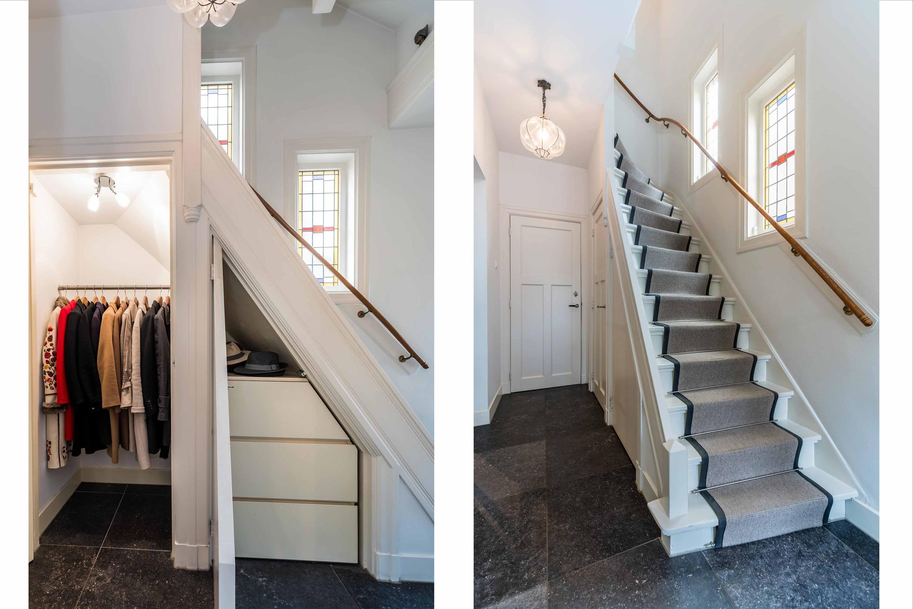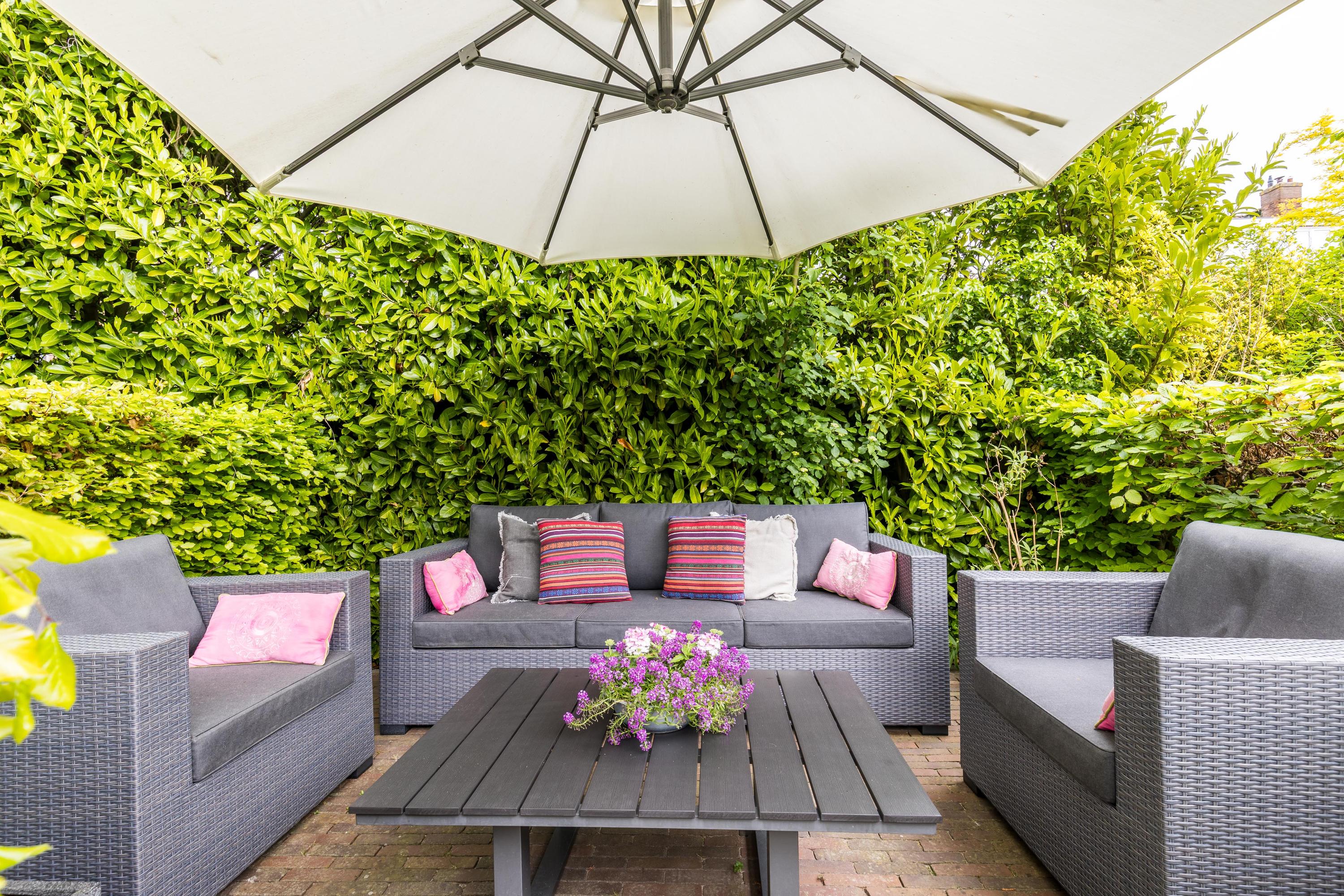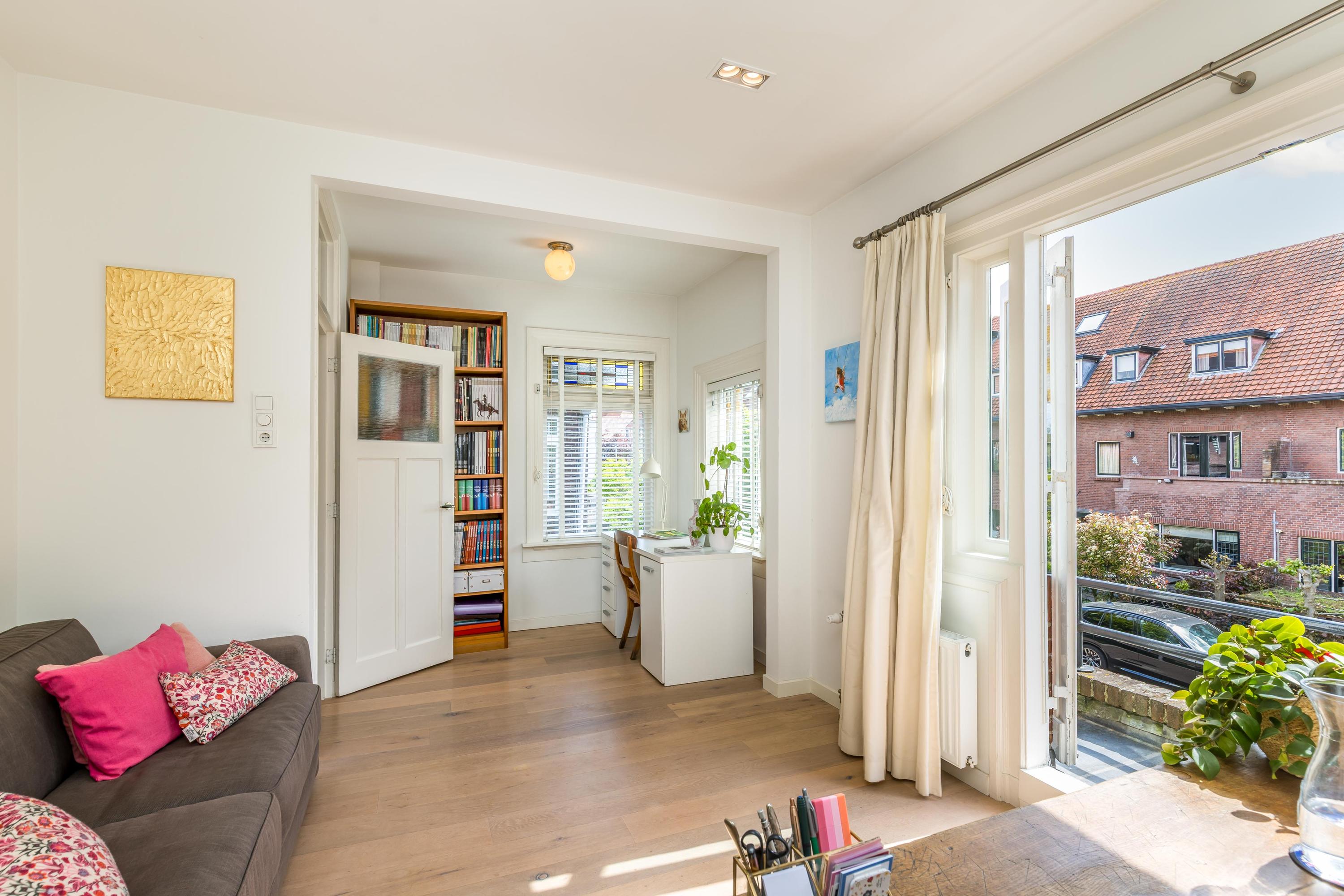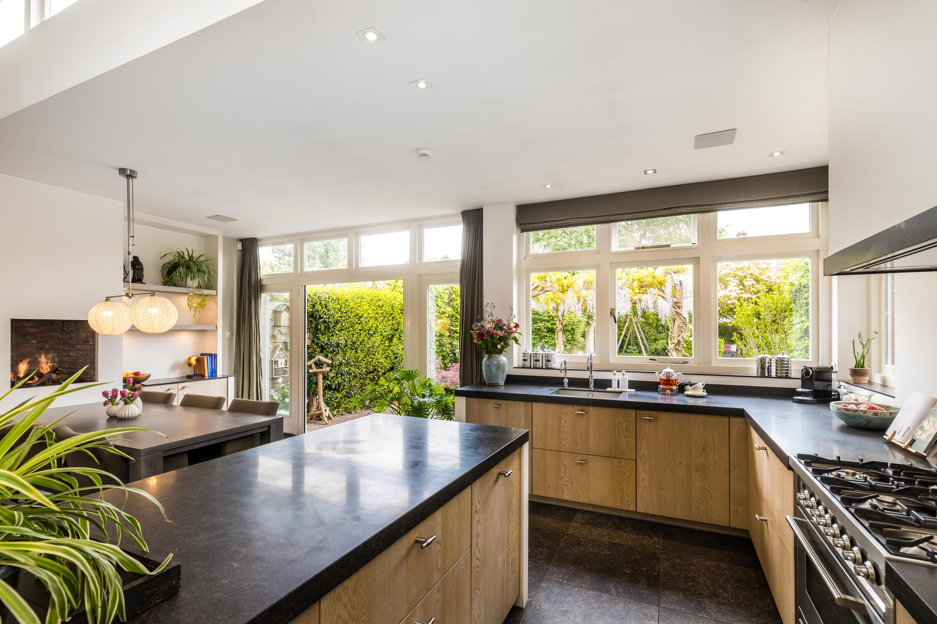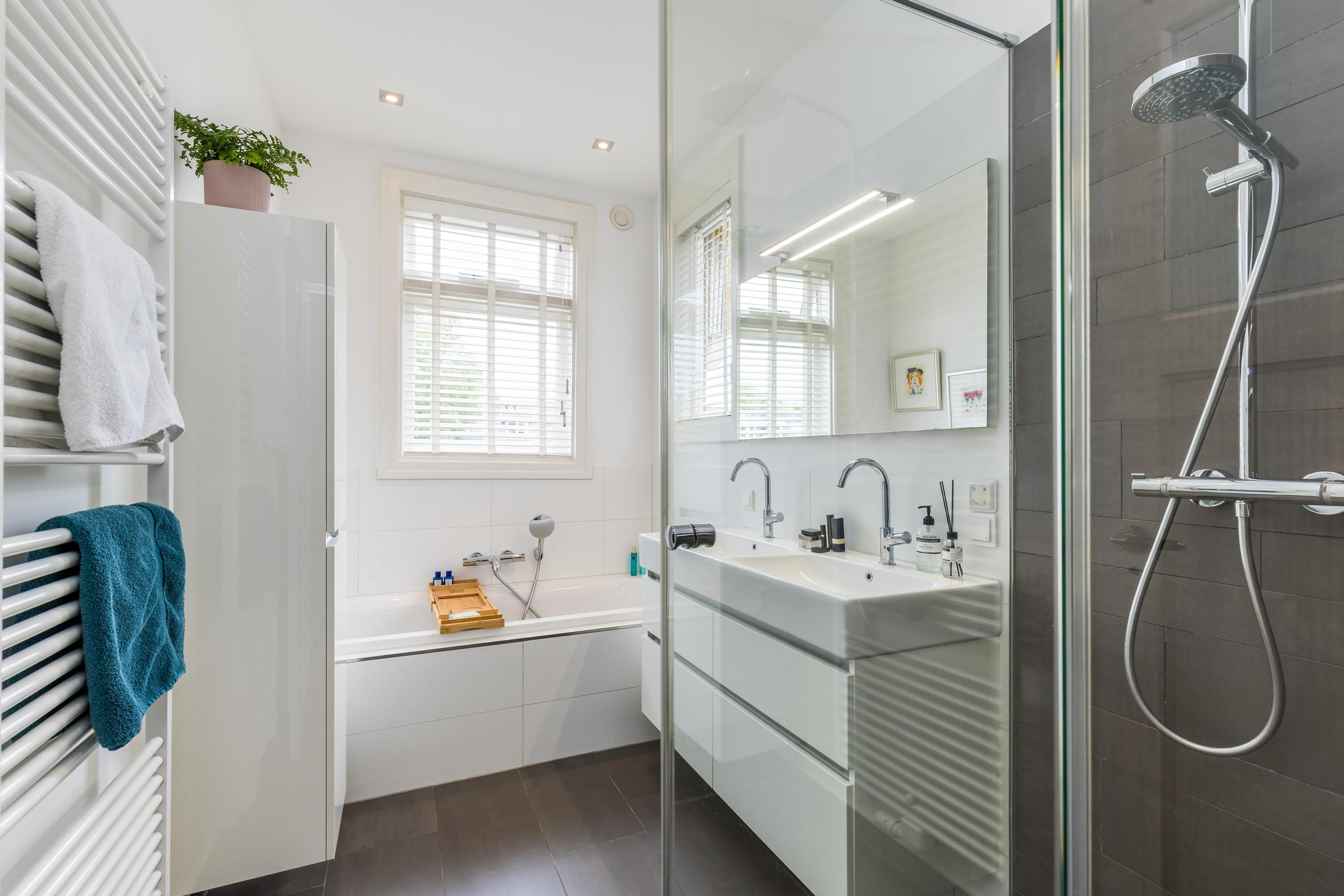 The beautiful spacious kitchen/diner with high ceiling and the nature and child-friendly backyard may be the real eye-catchers, but the house has many more strong plus points and unique selling points. For example, the combination of the preserved authentic details and the applied modern comfort is particularly attractive and atmospheric. The basement with a TV room/chill room/playroom is ideal for families. On the 2 sleeping floors there are 3 spacious bedrooms, 2 with a balcony, 1 with a stylish en suite walk-in closet and 1 with an en suite bathroom. If desired, 2 extra bedrooms can be created on the top floor relatively easily.