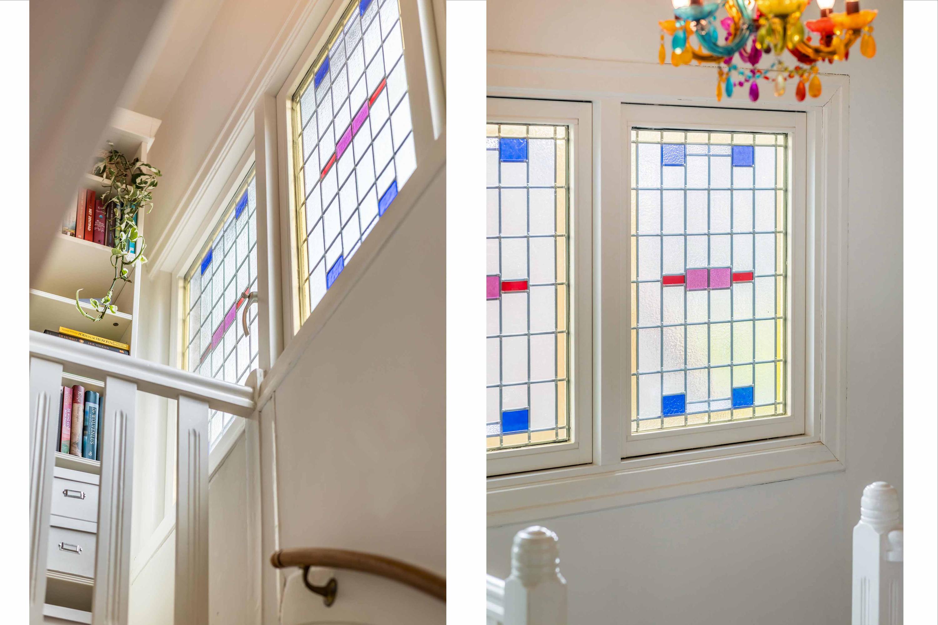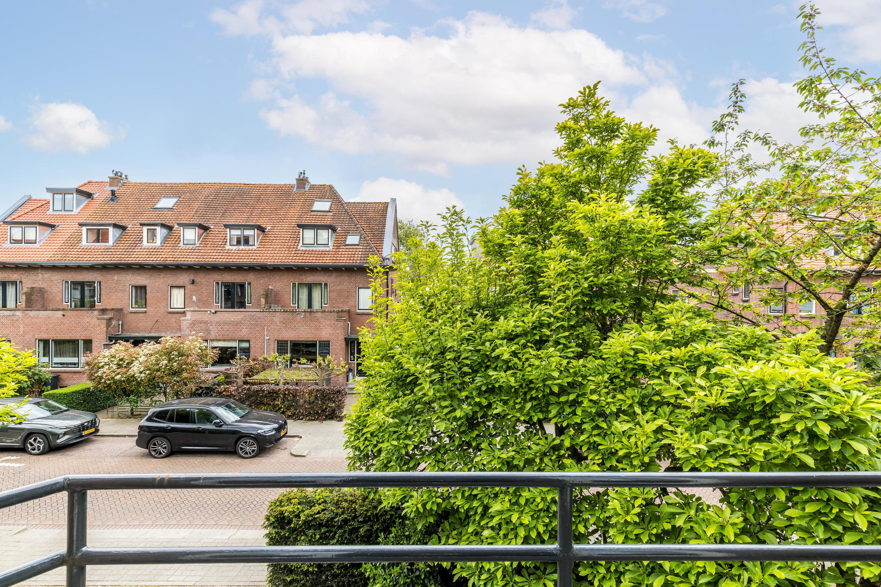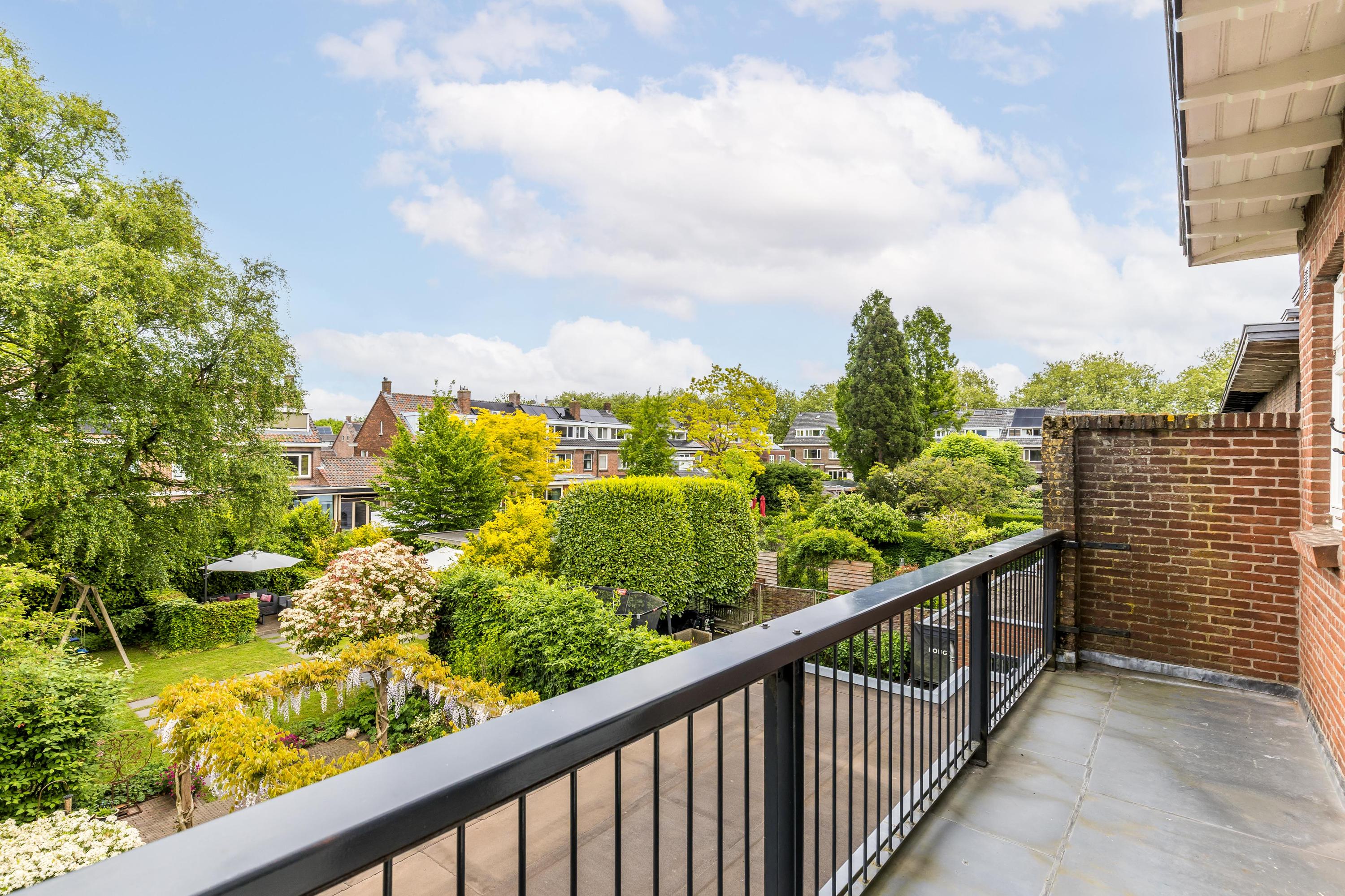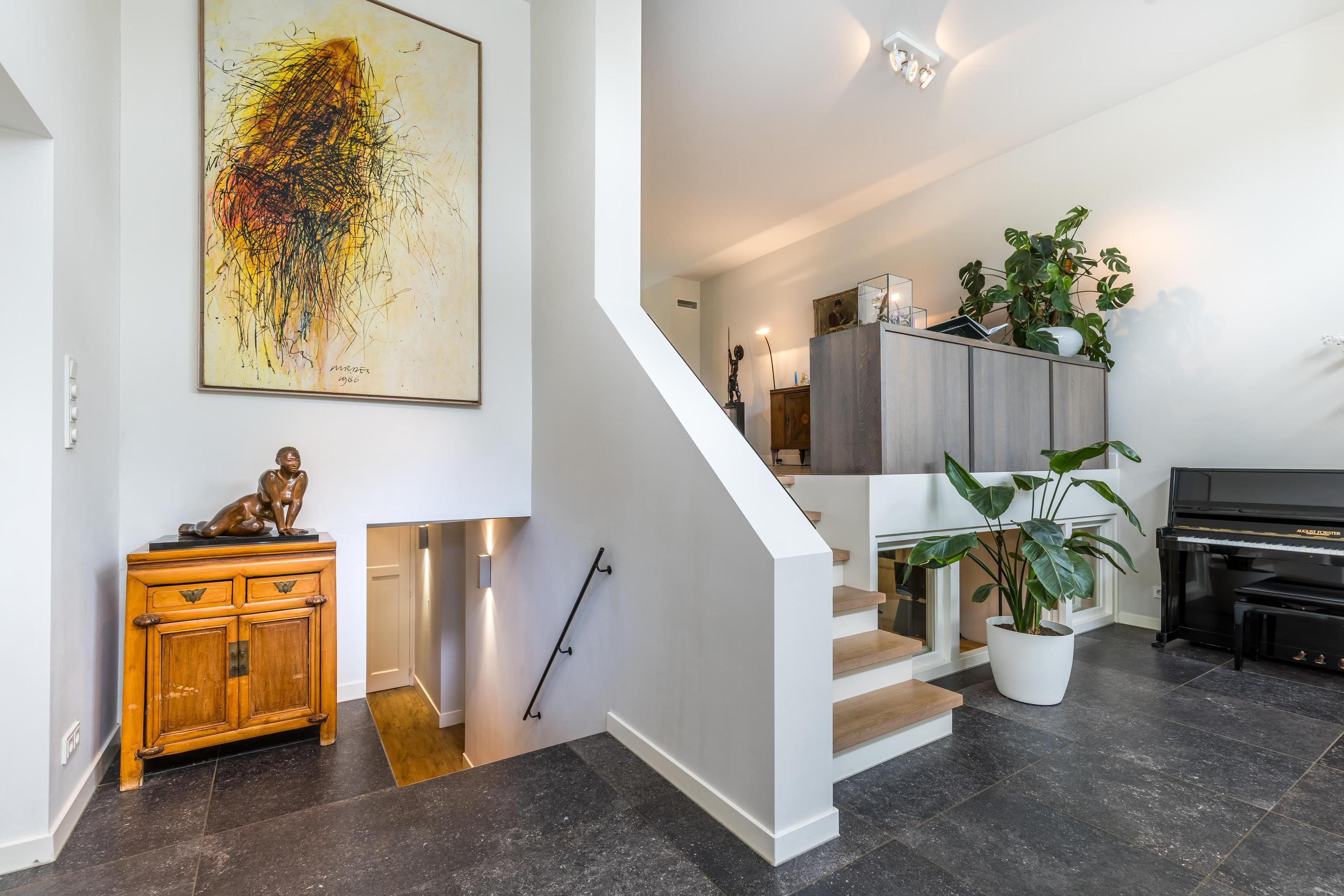 First floor: From the ground floor, the staircase to the first floor has beautiful authentic stained glass windows that are placed in double glazing and provide a pleasant and warm light in the stairwell. The entire floor has a beautiful oak floor. Once upstairs, there is the landing with toilet, the bright bathroom at the rear with walk-in shower, bath, double sink, towel radiator and electric underfloor heating. The master bedroom is light and quiet and has an en suite walk-in closet that can be closed off with original sliding doors, there are also patio doors to the spacious balcony across the entire width of the building. From this bedroom and the balcony the view of the beautiful backyard is breathtakingly beautiful. At the front is the 2nd spacious bedroom (formerly 2 bedrooms), currently used as a study with a super charming balcony and a view of the beautiful crown of the magnolia. Staircase to the 2nd floor also equipped with original stained glass windows in double glazing.