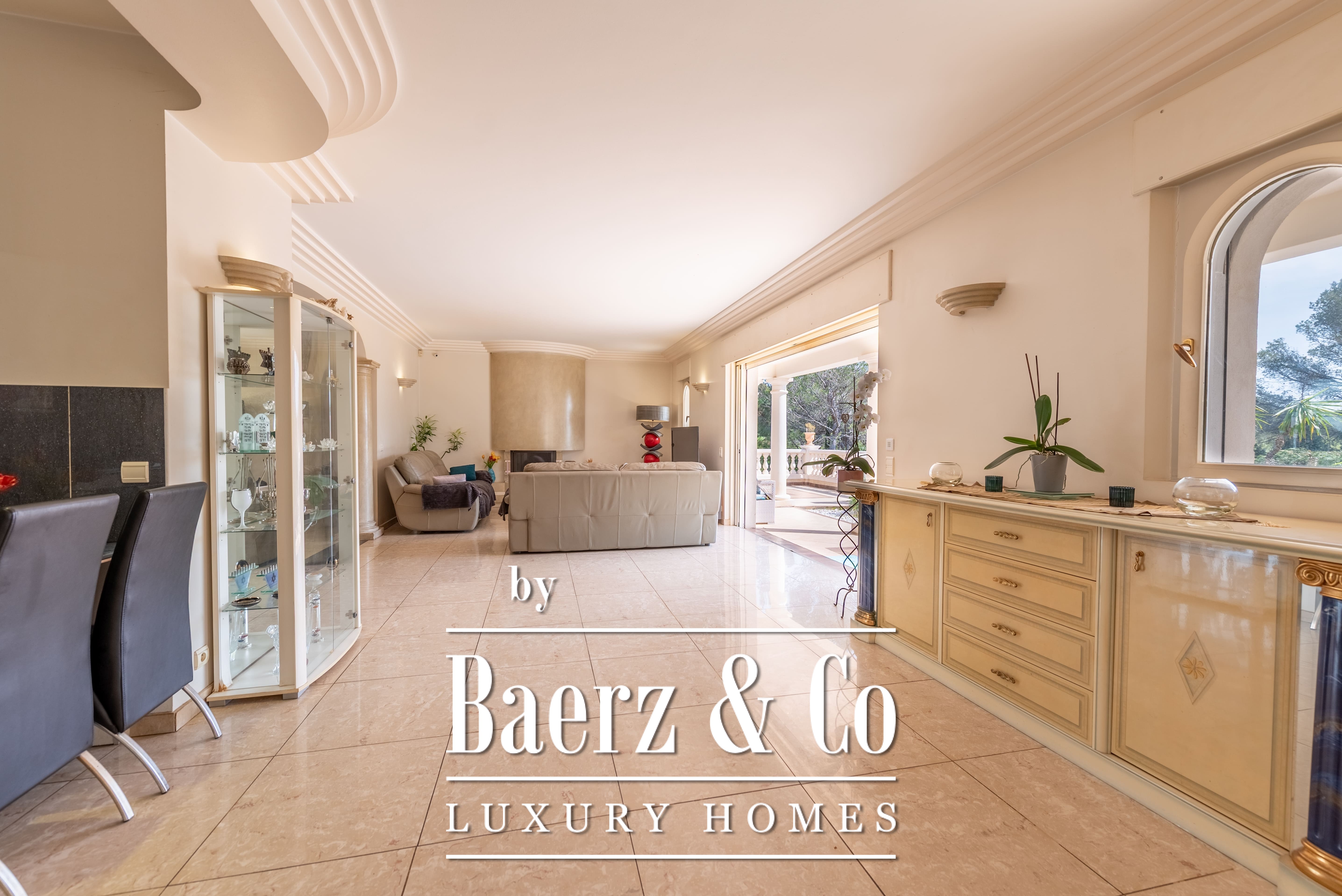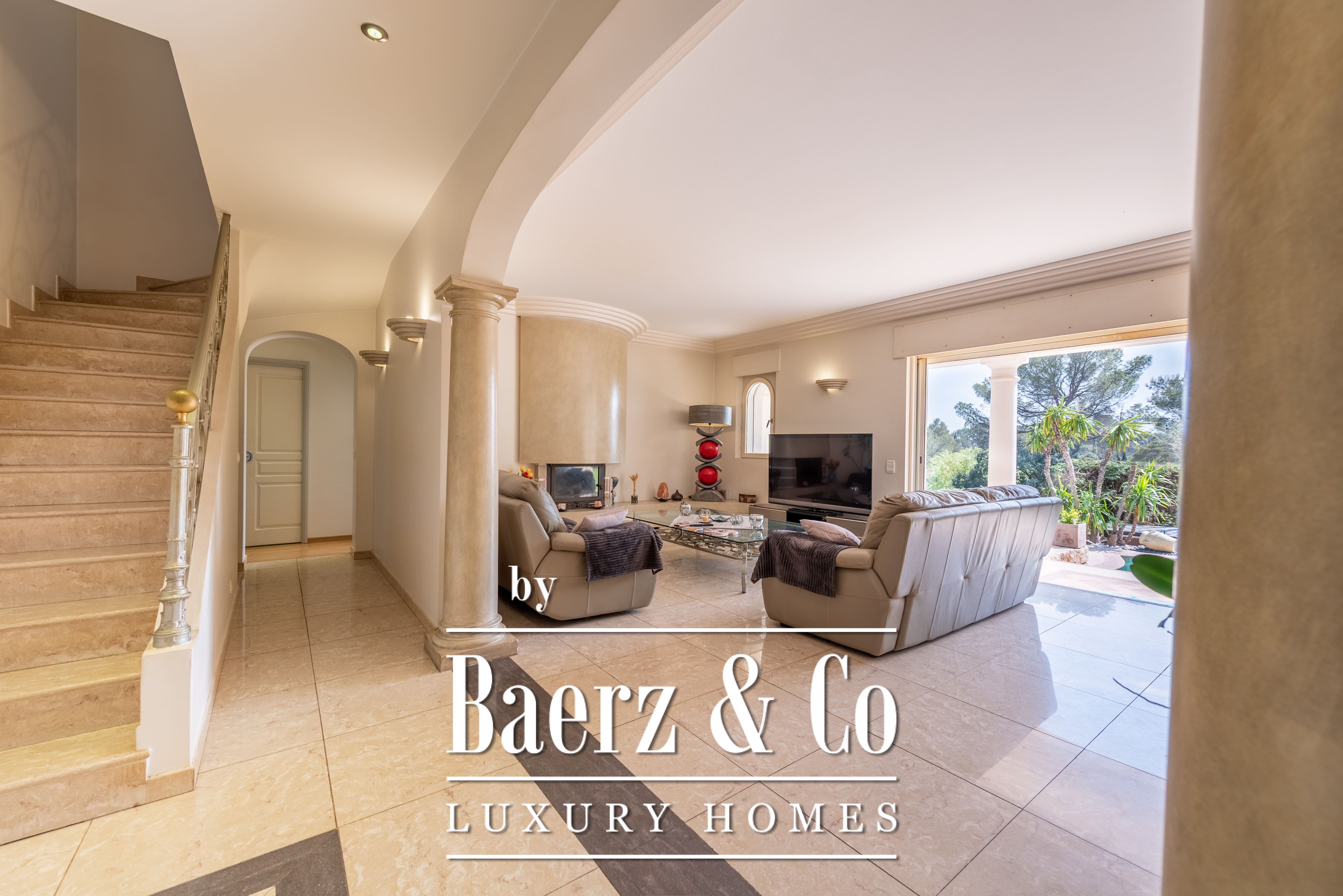 Villa Saint-Raphaël is offered for sale in one of the most desirable settings on the Côte d’Azur, set within a private, secure estate. This 205 m² residence is defined by its elevated position, optimal sunlight, and quiet residential atmosphere, a short distance from renowned golf courses.