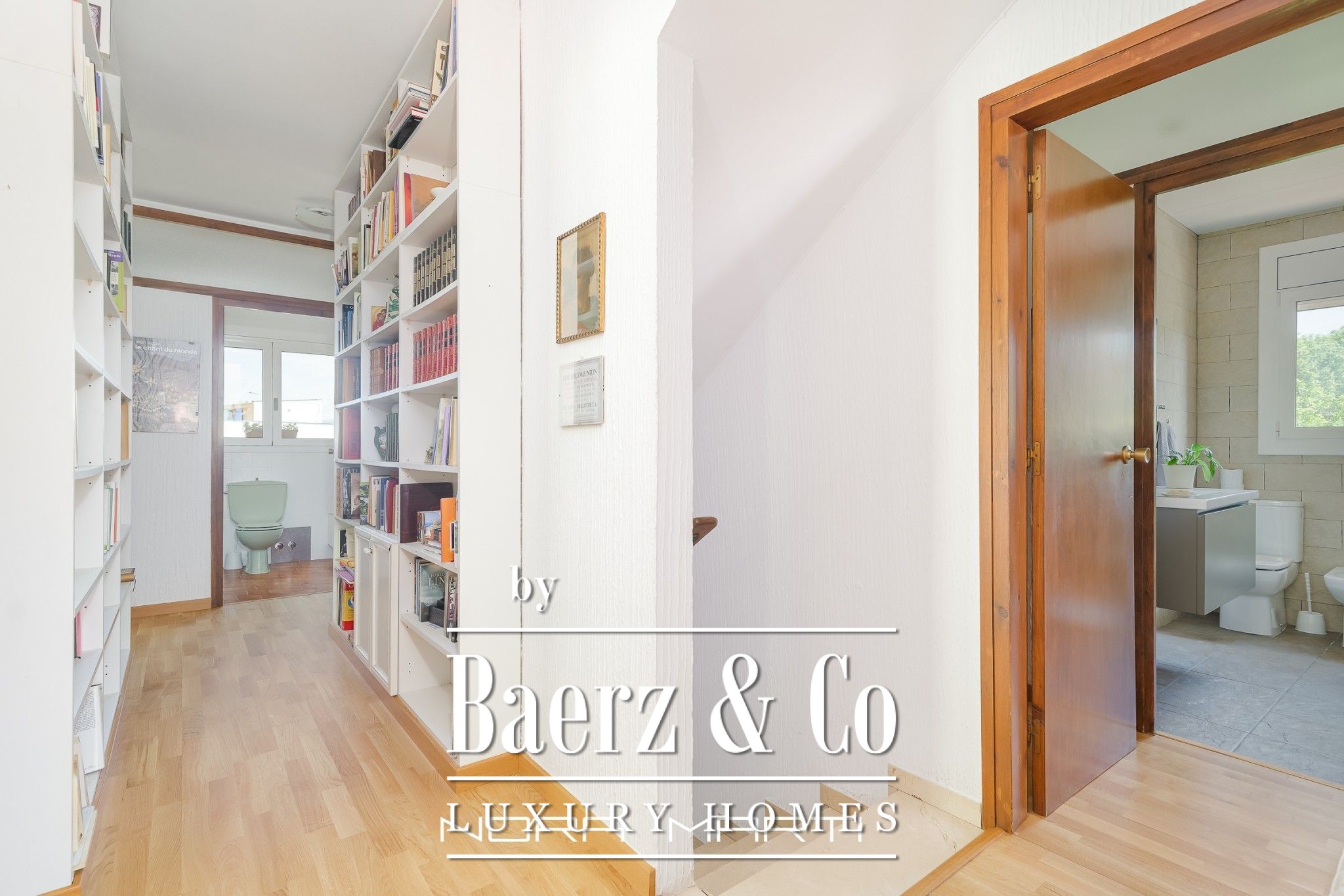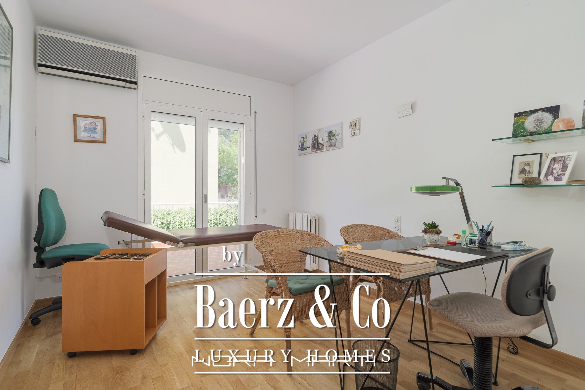 On the 120m2 ground floor we find the garage with direct access to a hall (where the main pedestrian entrance is) that leads us on one side to the living-dining room and kitchen-office plus laundry-iron area and on the other side to an office and 1 bathroom.