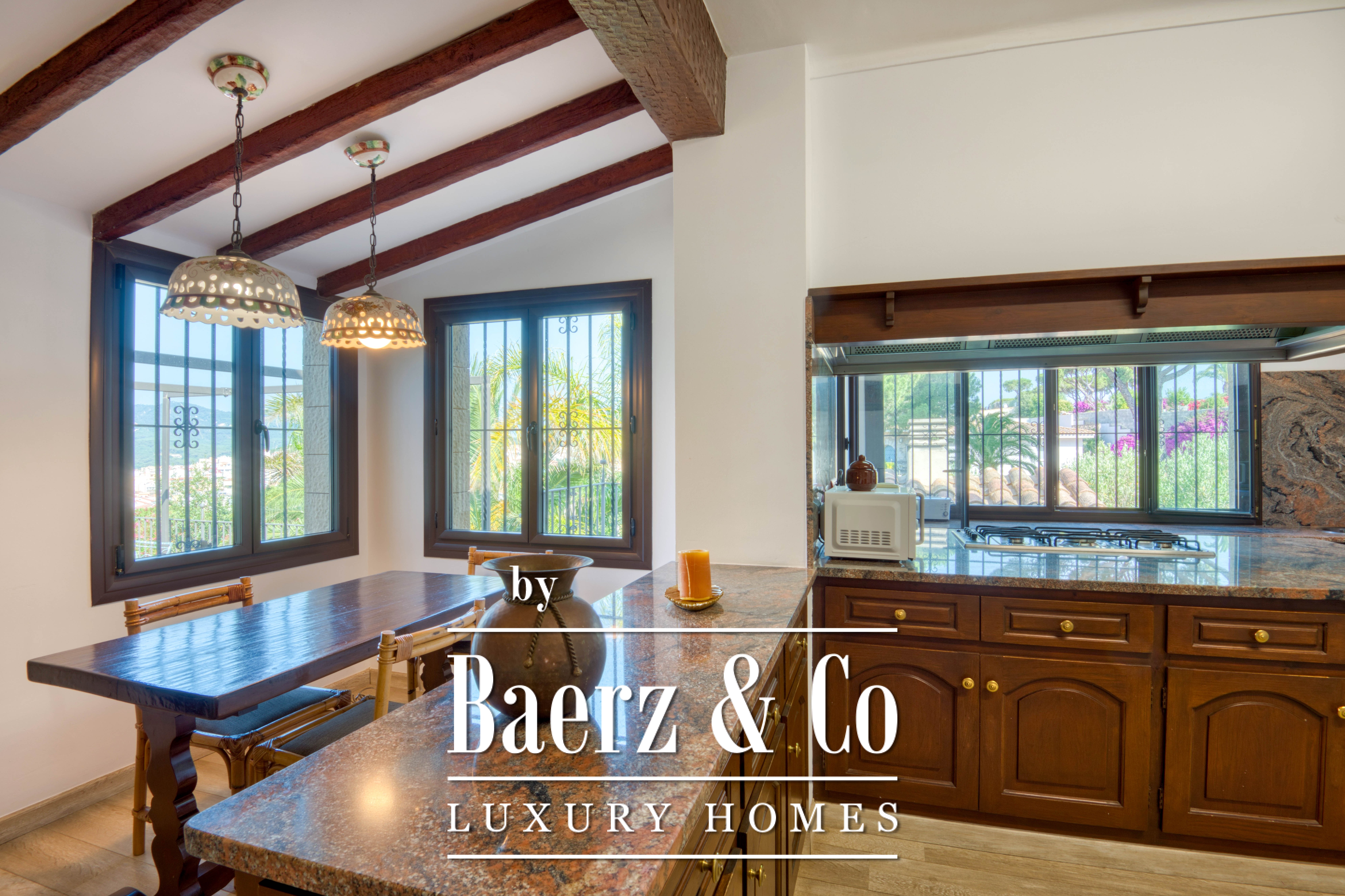 Outdoors, a sizeable pool and private tennis court invite relaxation and activity, sheltered by mature greenery. Endless views reach across the Mediterranean Sea, Sant Feliu Monastery, Sant Elm Mountain, and the Ardenya cornice, shifting with the changing light. Featuring a garage, air conditioning, BBQ area, and games room, this luxury villa for sale in Sant Feliu de Guixols articulates understated luxury and rare authenticity, suited for year-round living or as a treasured retreat.