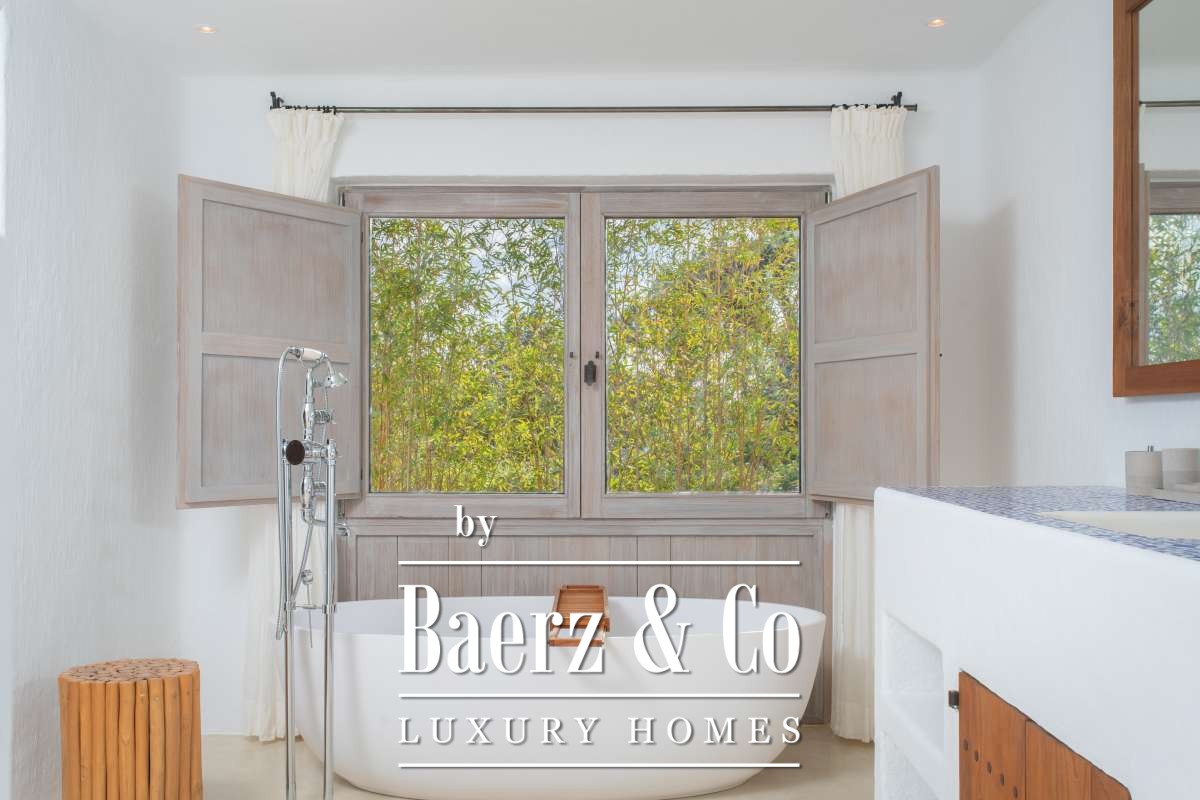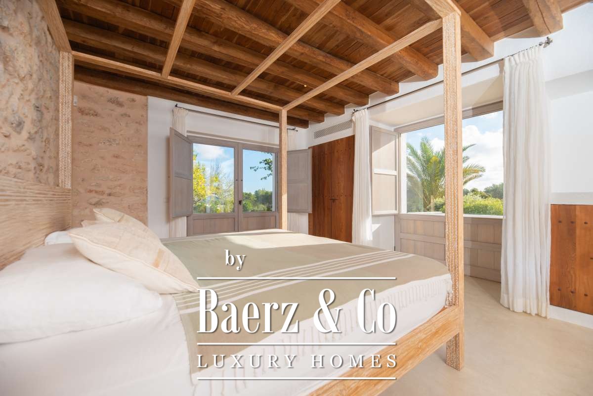 Originally an authentic finca extended in the 1940s, the house now offers 506 m² of living space divided between 361.7 m² on the ground floor and 144.64 m² above. Four bedrooms and five bathrooms have been thoughtfully renovated, each detail respecting the cubic architecture and rustic simplicity. Living areas blend seamlessly with garden terraces, encouraging an unhurried Mediterranean rhythm.