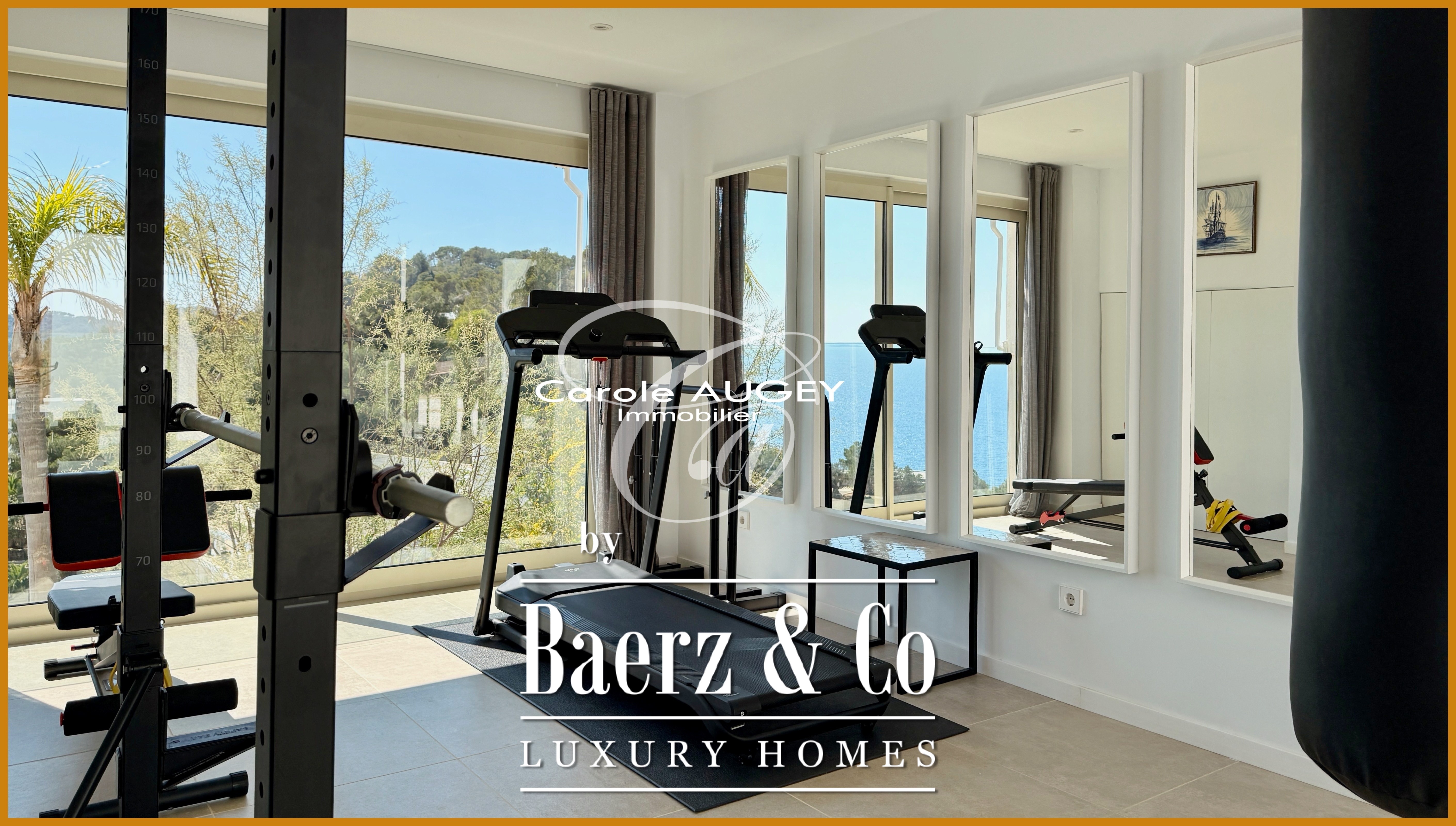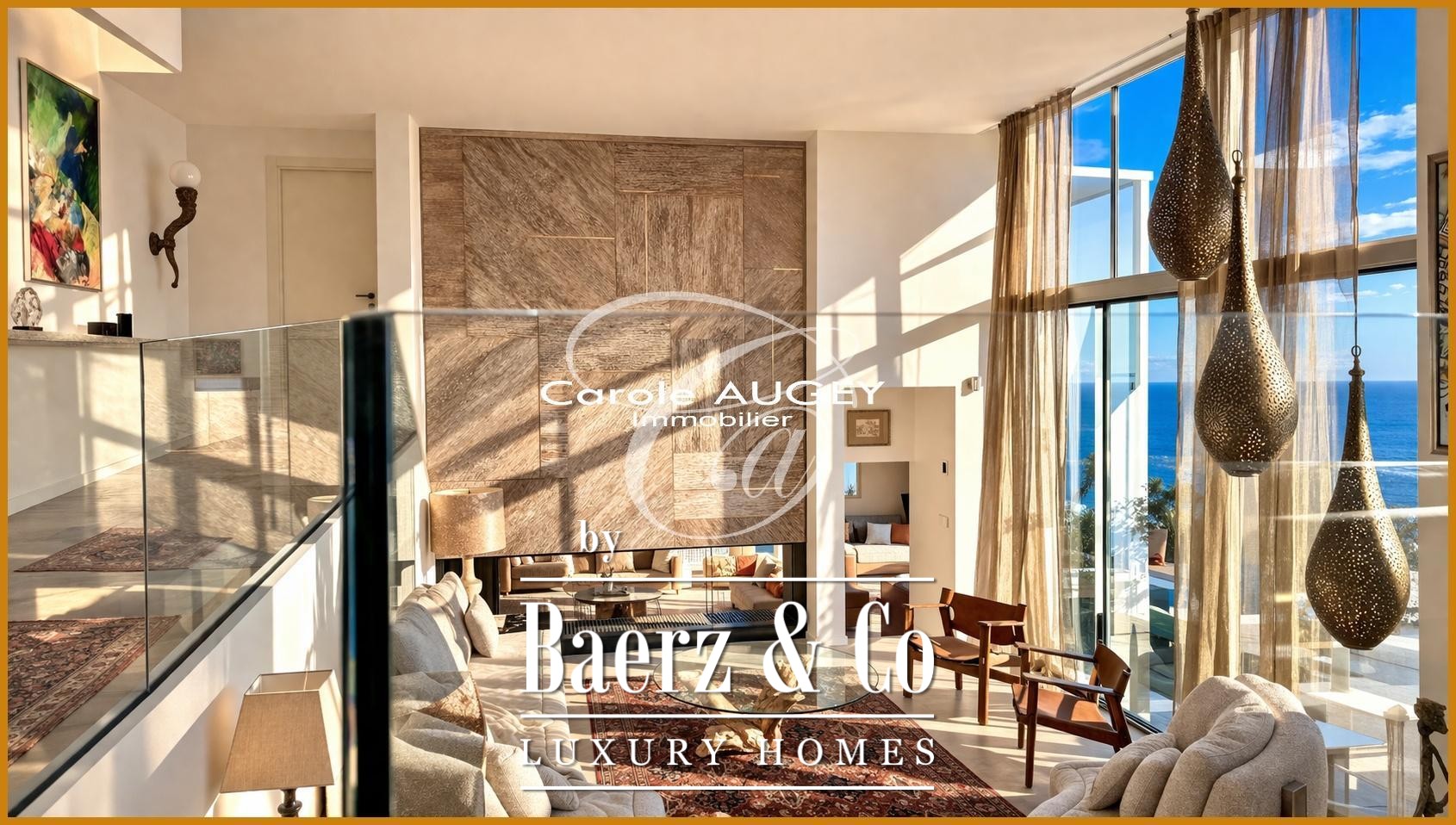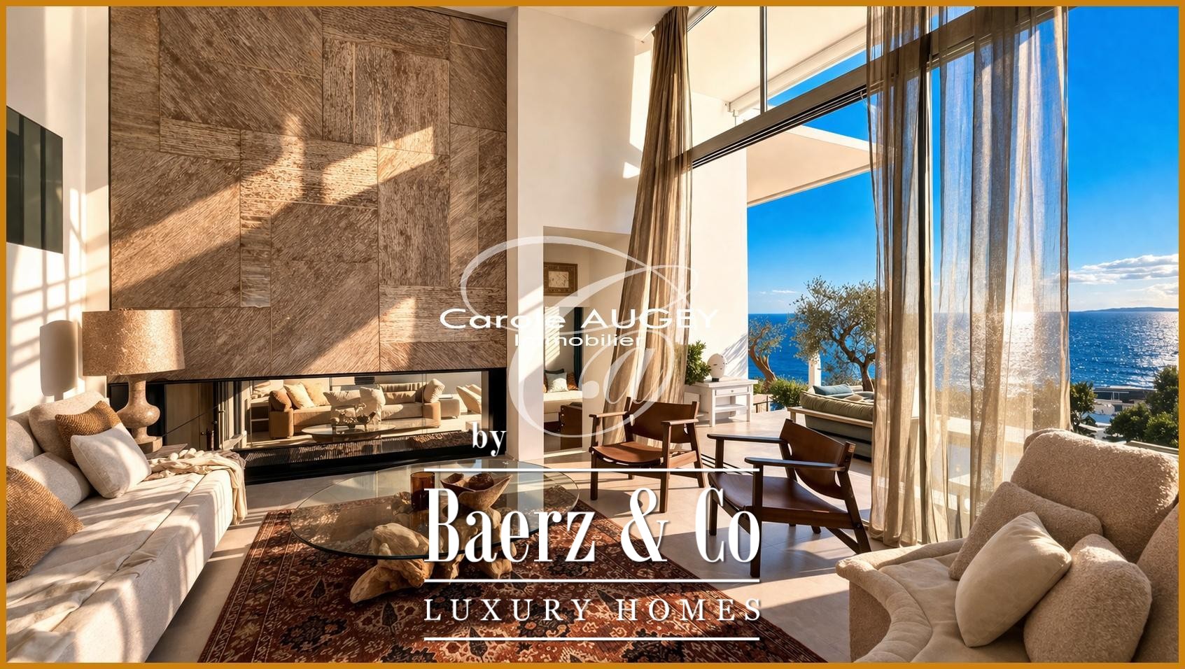 Outdoors, an infinity pool, panoramic terraces, al fresco dining, and a sculptural, architect-designed garden invite reflection and relaxation. The property offers two independent accesses, one via elevator, a sea-view gym, and reversible air conditioning. This fully furnished, turnkey villa, defined by high-quality finishes and remarkable views, is an intensely elegant experience where the sea is a vital presence every day.