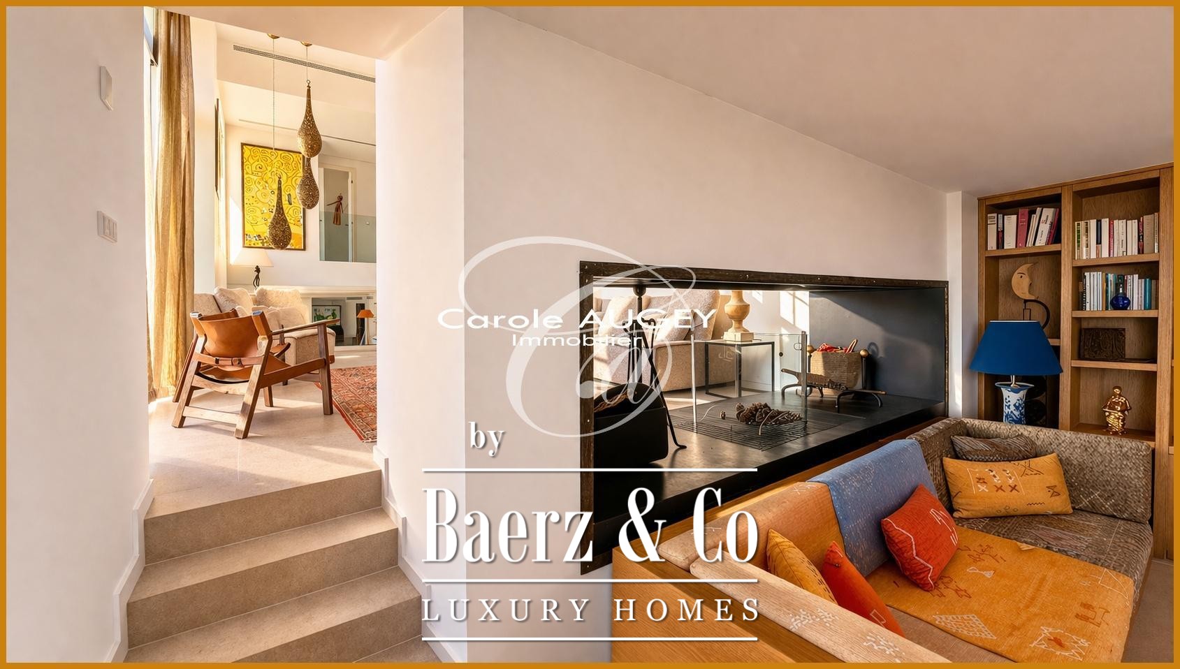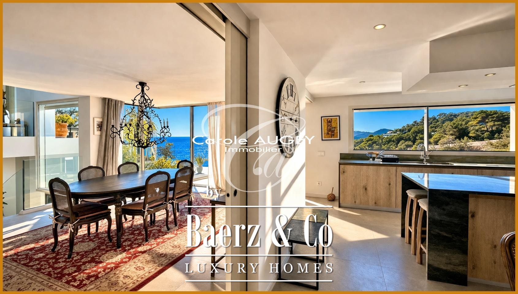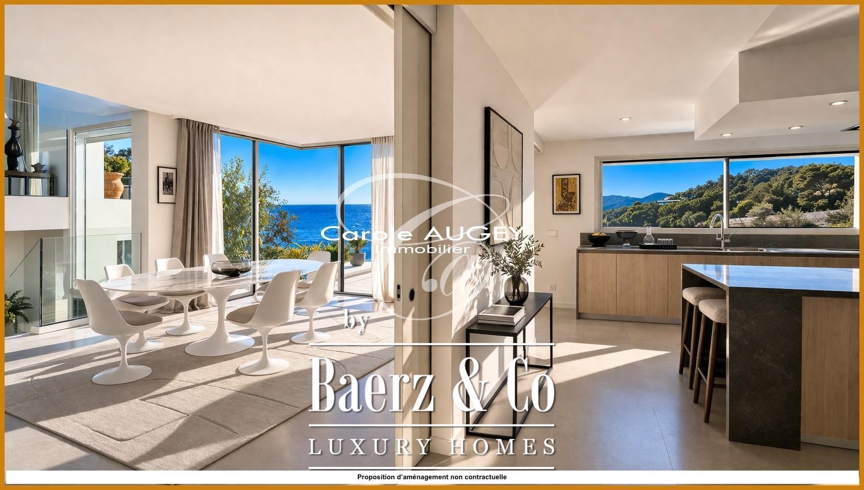 Outdoors, an infinity pool, panoramic terraces, al fresco dining, and a sculptural, architect-designed garden invite reflection and relaxation. The property offers two independent accesses, one via elevator, a sea-view gym, and reversible air conditioning. This fully furnished, turnkey villa, defined by high-quality finishes and remarkable views, is an intensely elegant experience where the sea is a vital presence every day.