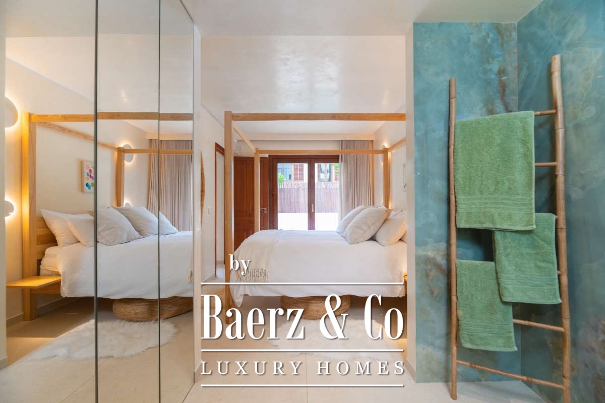 The highlight is the 72 m² private terrace, a rarity in central Santa Gertrudis. It features a private pool, lounge, and dining area, inviting long evenings outdoors or serene afternoons in the garden. Surrounded by landscaped greenery, the terrace extends the interior living space, offering pure Mediterranean light and privacy. Proximity to restaurants, shops, and quick access to beaches, Ibiza Town, and the airport further enhance the appeal of this luxury apartment for sale in Santa Gertrudis for those who value both connection and sanctuary.