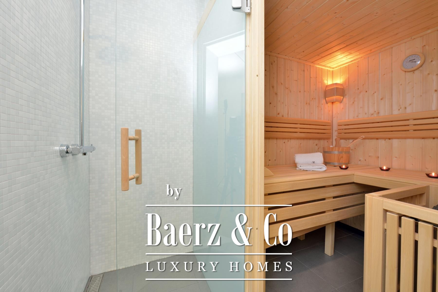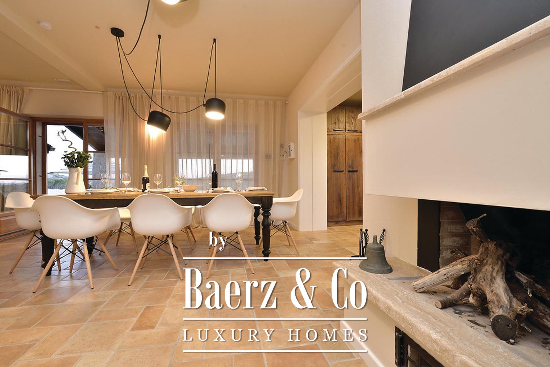 and a sliding glass wall, which allows it to open towards the pool. The complex also includes a sports field with artificial grass, designed for small football, volleyball or badminton, a bocce court, a Mediterranean garden with about 30 olive trees, fruit trees and herbs, and covered parking for 3 cars.The villa is built to top standards and is equally well equipped. Each room has air conditioning, and the bathrooms have underfloor heating. It is also equipped with top-of-the-line kitchen appliances, video surveillance, an automatic irrigation system, an anti-burglary system, 5G internet and a top-of-the-line sound system. It is located in a prime location, less than 150 meters from the sea.All other information on request.