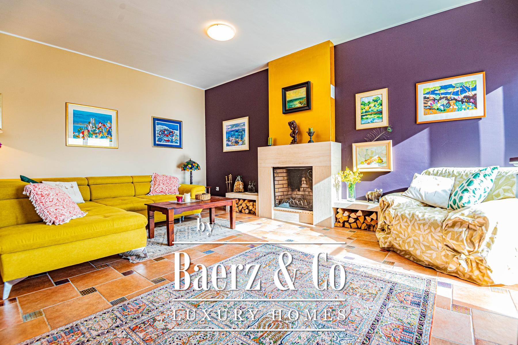 a large covered terrace with a sea view, where there is a fireplace and a space for socializing. On the first floor there are three bedrooms, each with a private bathroom, and two rooms also have access to a terrace with a sea view.The house was built to top standards, and is very nicely decorated. It is surrounded by a very beautiful garden that is excellently decorated and maintained, and there is also a large swimming pool and a sunbathing area.All other information on request.