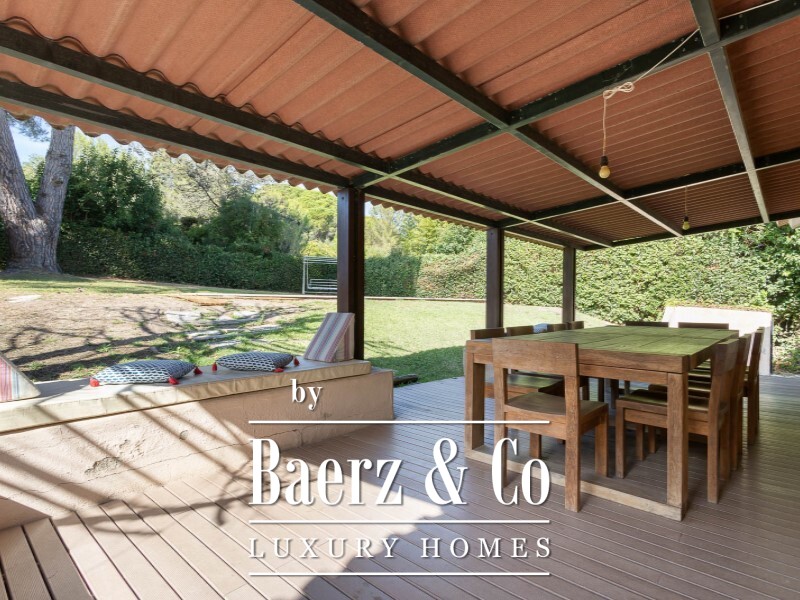 The house offers 380 sqm of private area, spread over three floors (ground floor and two upper levels). It features a swimming pool, garden, a 200 sqm garage, and several porches and terraces that create multiple outdoor leisure and living areas.