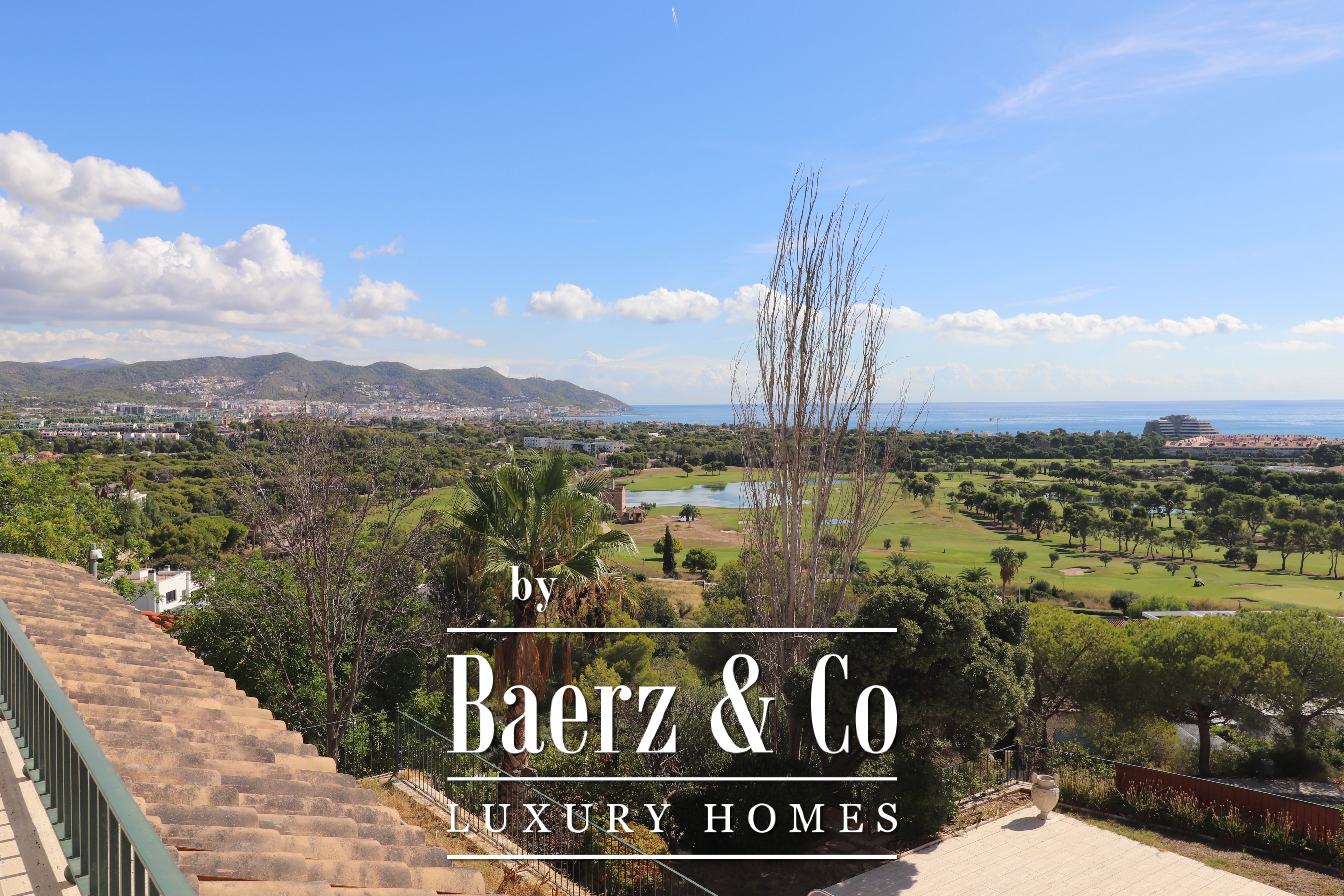 Contemporary villa Sitges defines the height of modern Mediterranean living, with 910 m² of architecture overlooking the golf course and the protected coastline. The property is set within 2,647 m² of mature land, embraced by native vegetation and oriented south to capture exceptional natural light. Residents experience serene privacy, expansive terraces, and sweeping sea views that extend over a manicured garden and a shimmering deep blue swimming pool.