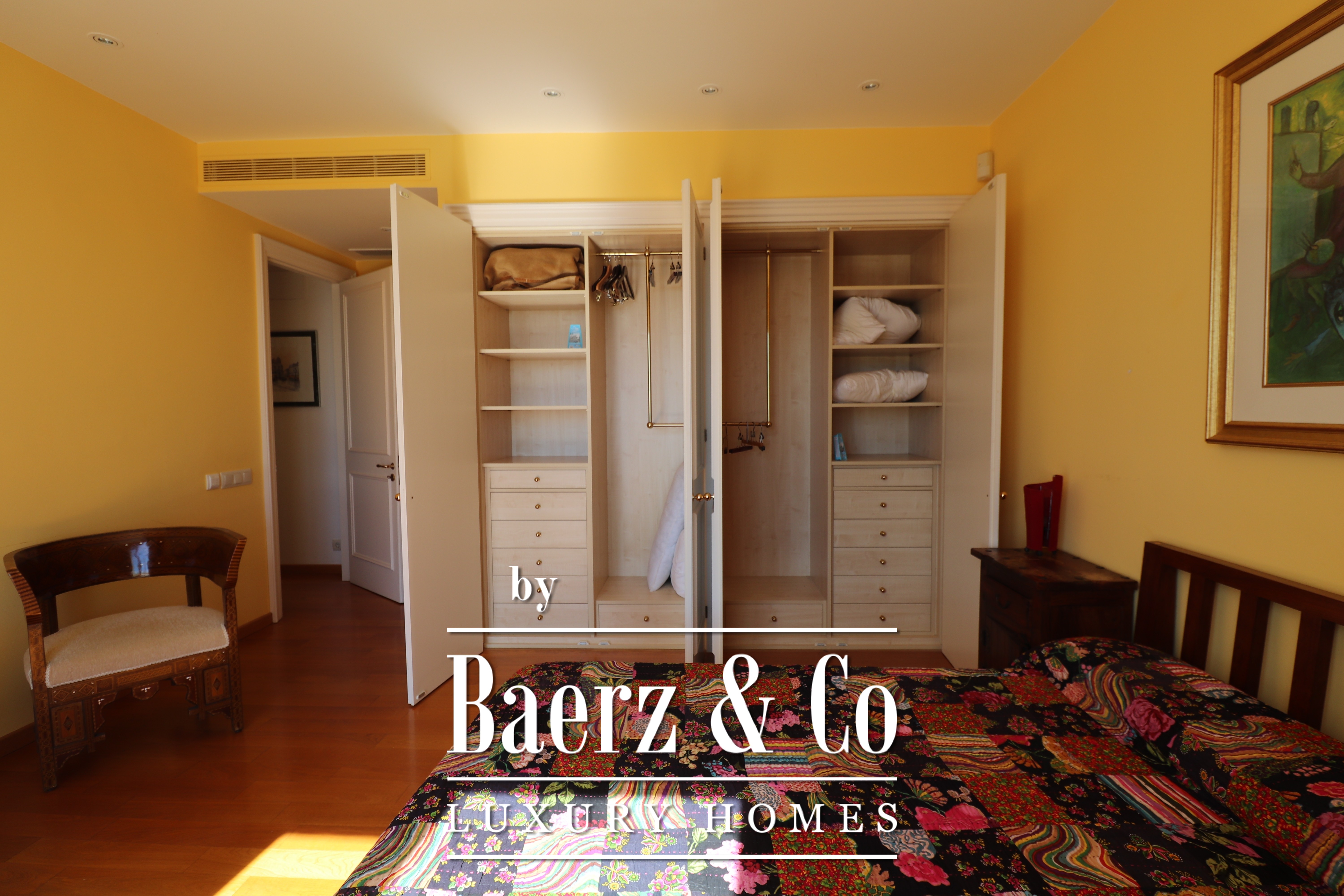 The upper floor is dedicated to rest, offering four suites, each with dressing rooms and private terraces against a backdrop of the Mediterranean. The lower level enhances daily ritual with a gym, sauna, wine cellar with dining zone, an additional bedroom, laundry, and a garage with capacity for eight vehicles. Fine materials, marble floors, high-end carpentry, and seamless home automation define every surface. Minutes from the centre of Sitges and the sea, this luxury villa for sale in Sitges offers a life of ease, privacy, and enduring style.