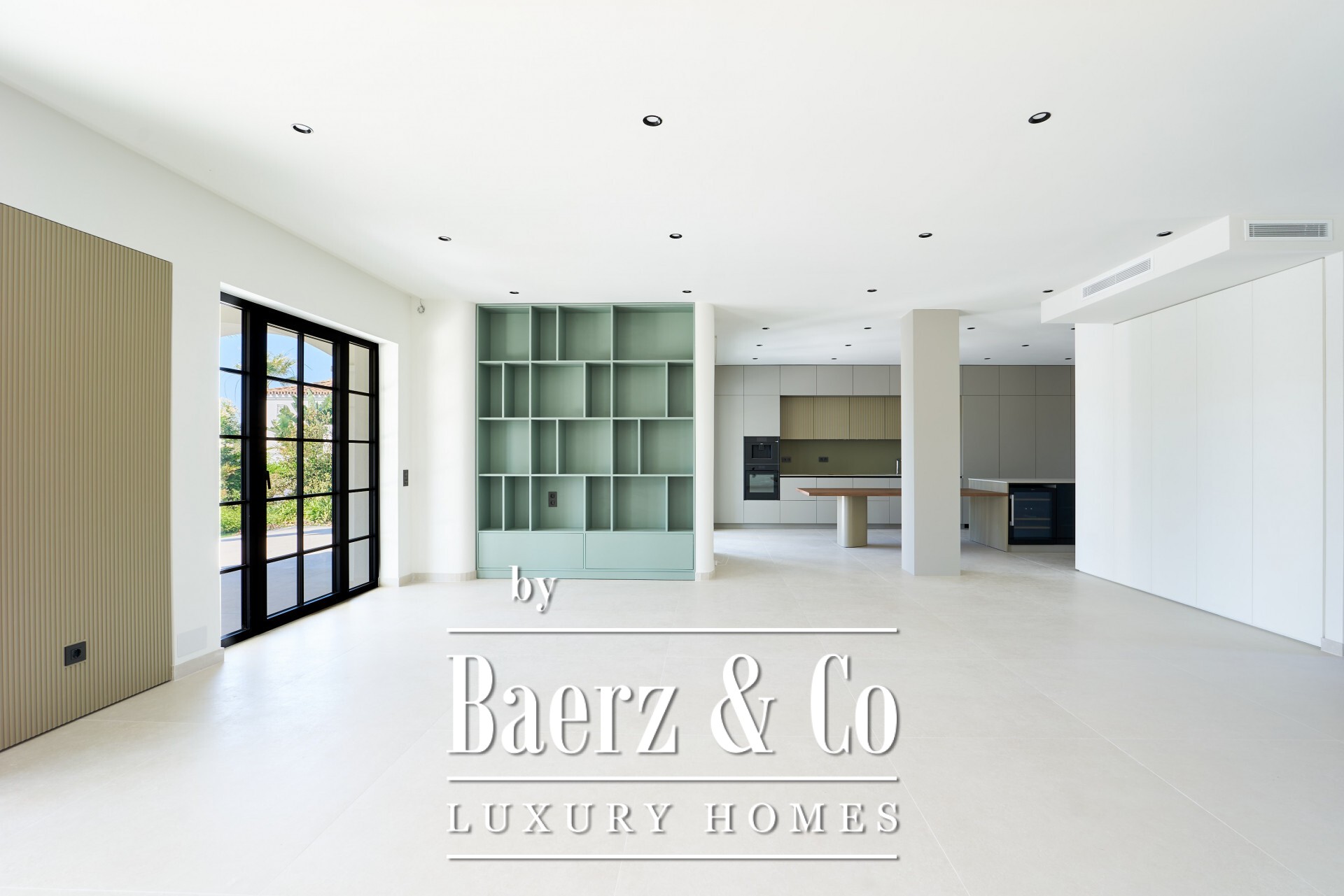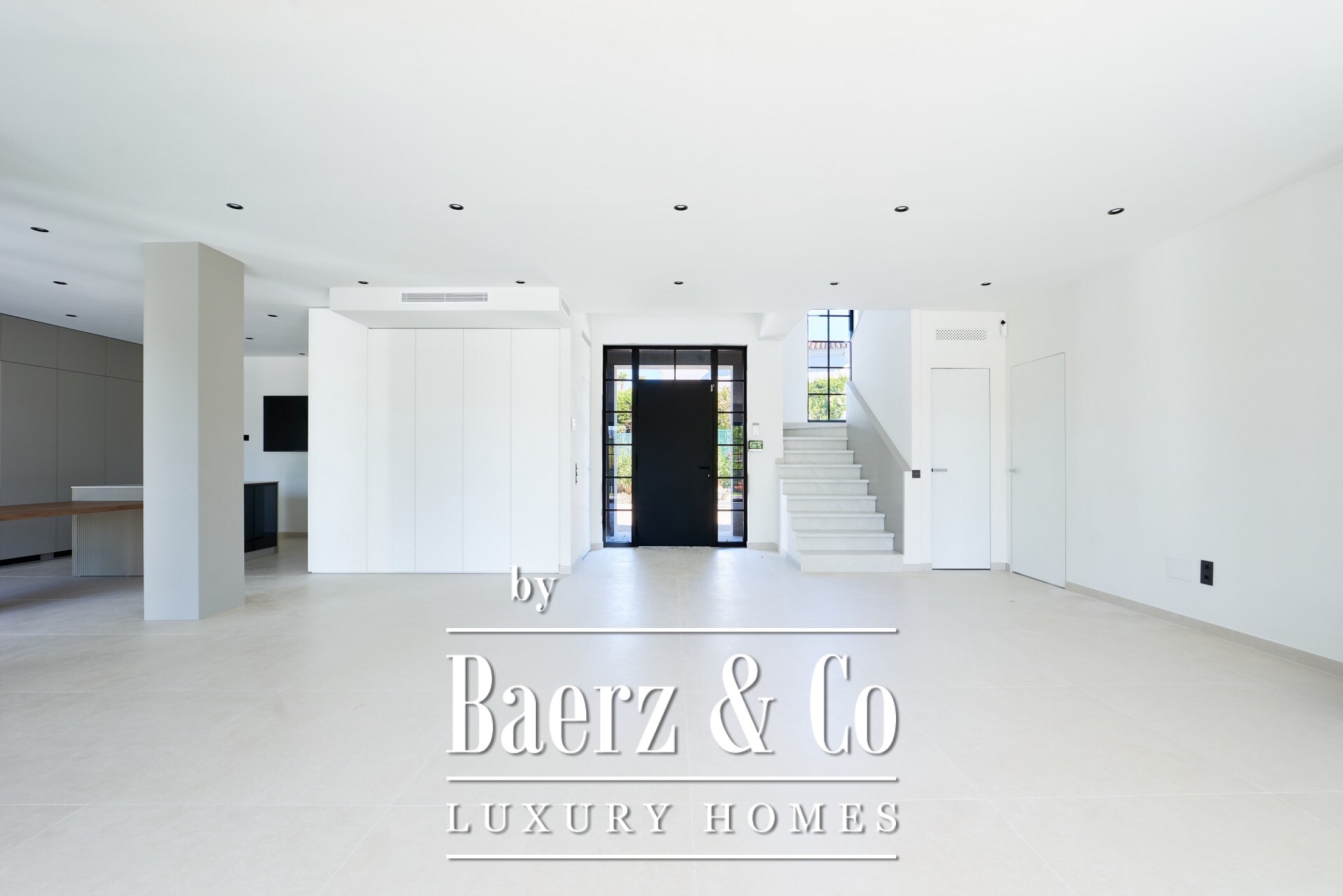 A 96 m² terrace, private pool, and landscaped gardens nod to the region’s traditional cortijos, yet the lines remain resolutely clean and modern. Positioned within a gated community, the home provides security and privacy while being moments from celebrated golf courses such as Valderrama and La Reserva, as well as Sotogrande Marina and International School. For those seeking a villa for sale in Sotogrande, this property balances serene surroundings with access to local amenities, beaches, and a community admired for its quality of life.