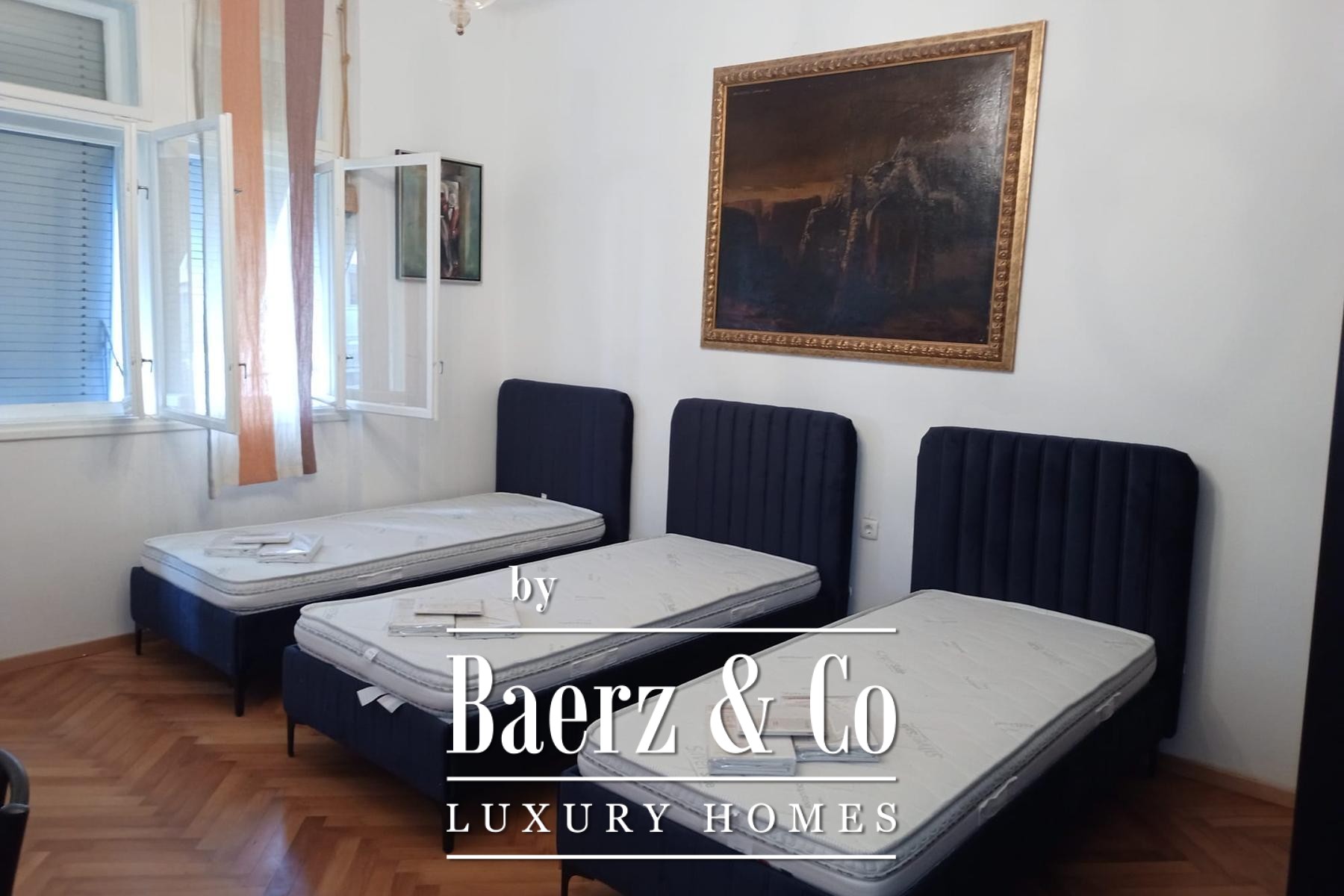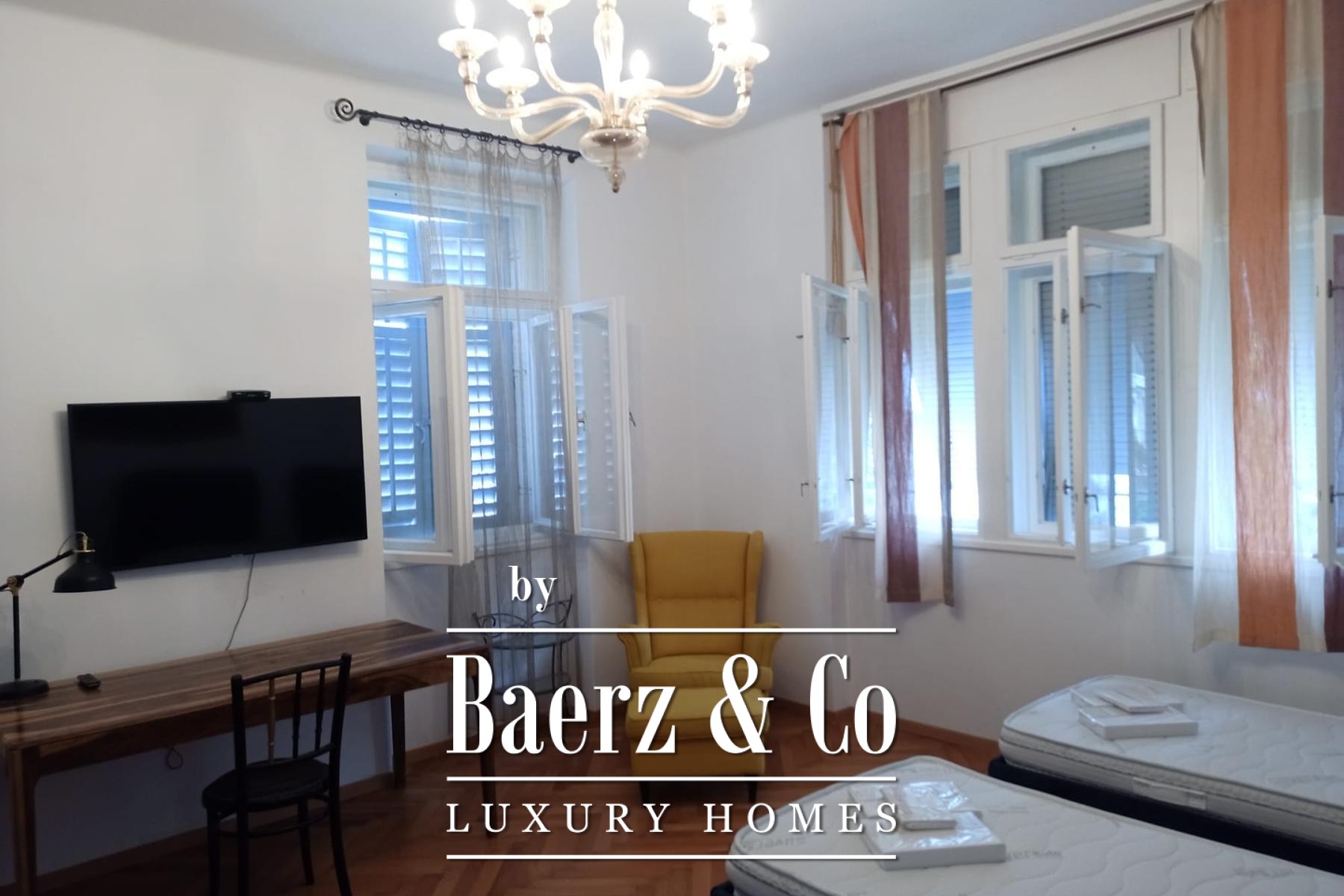 Every inch of this residence has been thoughtfully renovated, retaining historical charm while embracing modern installations and finishes. The option for further extension is offered by an attic space spanning 78 m², adding flexibility to the well-proportioned interiors. Outside, a landscaped Mediterranean garden of 126 m² frames the apartment with olive tones and textures, accompanied by a shaded gazebo for tranquil moments or gatherings.