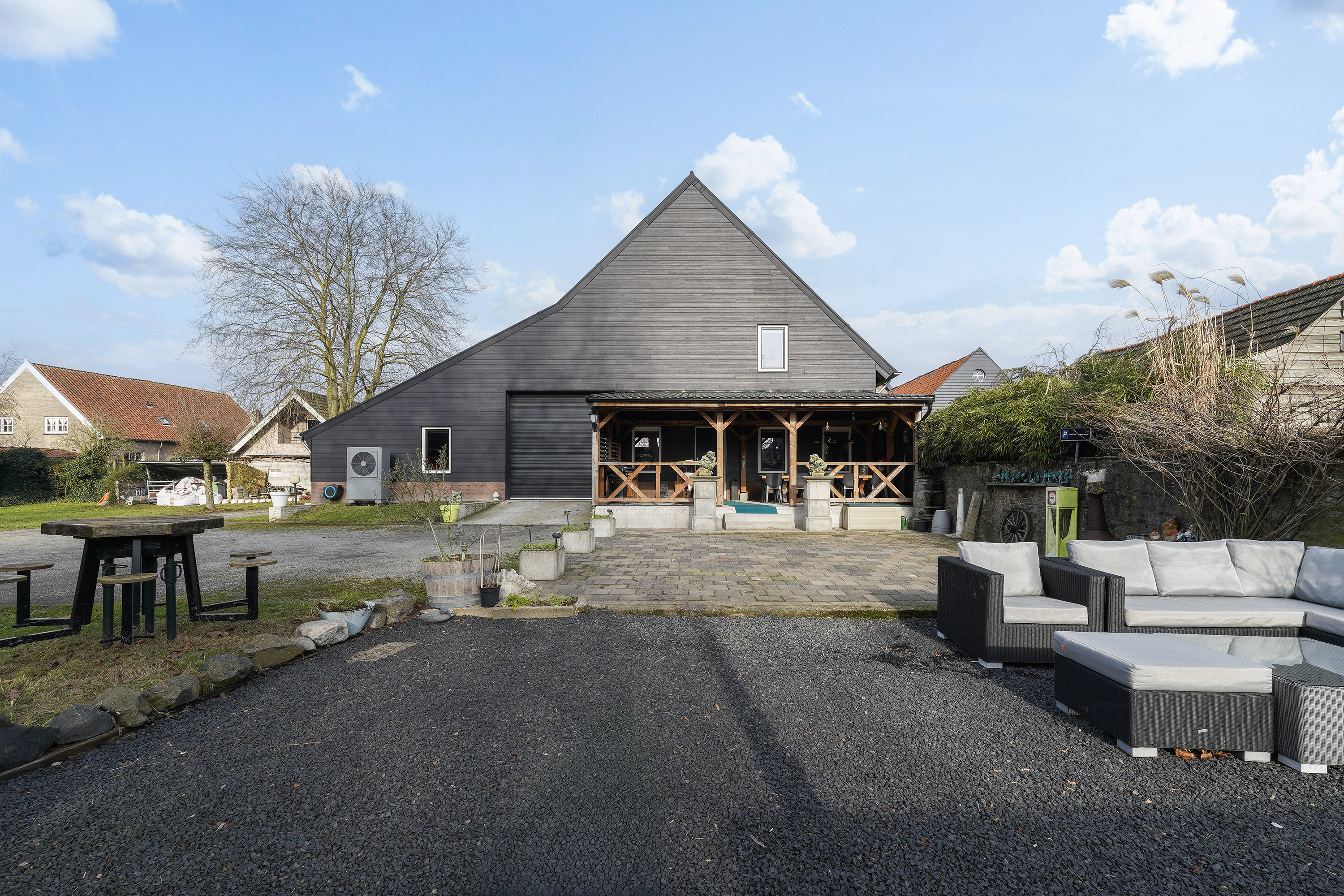 Woorden, plattegronden en foto’s doen hun best, maar deze woning laat zich eigenlijk niet vangen op papier. De ruimte, de sfeer, de rust en de mogelijkheden moet je zelf ervaren. Dit geldt ook voor de buitenruimte! Doordat alle tijd en energie in de woning is gaan zitten, mag de volgende bewoner de tuin verder gaan inrichten. Er is al een goede basis, want de verharding is reeds aangebracht evenals een zeer riante veranda die vanaf de bar bereikbaar is. Door de grote ruimte achter en naast het huis zijn ook hier de mogelijkheden nagenoeg eindeloos.