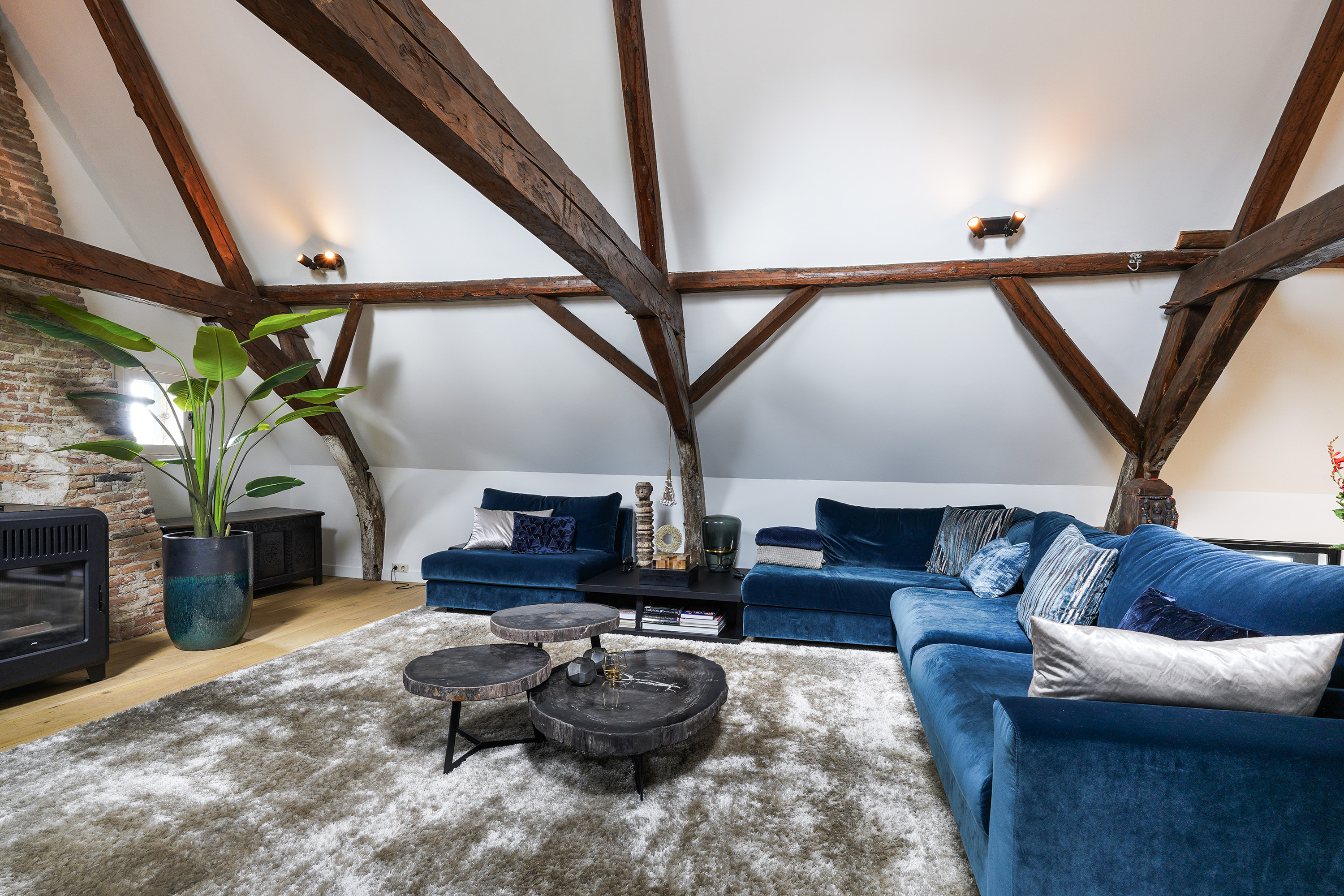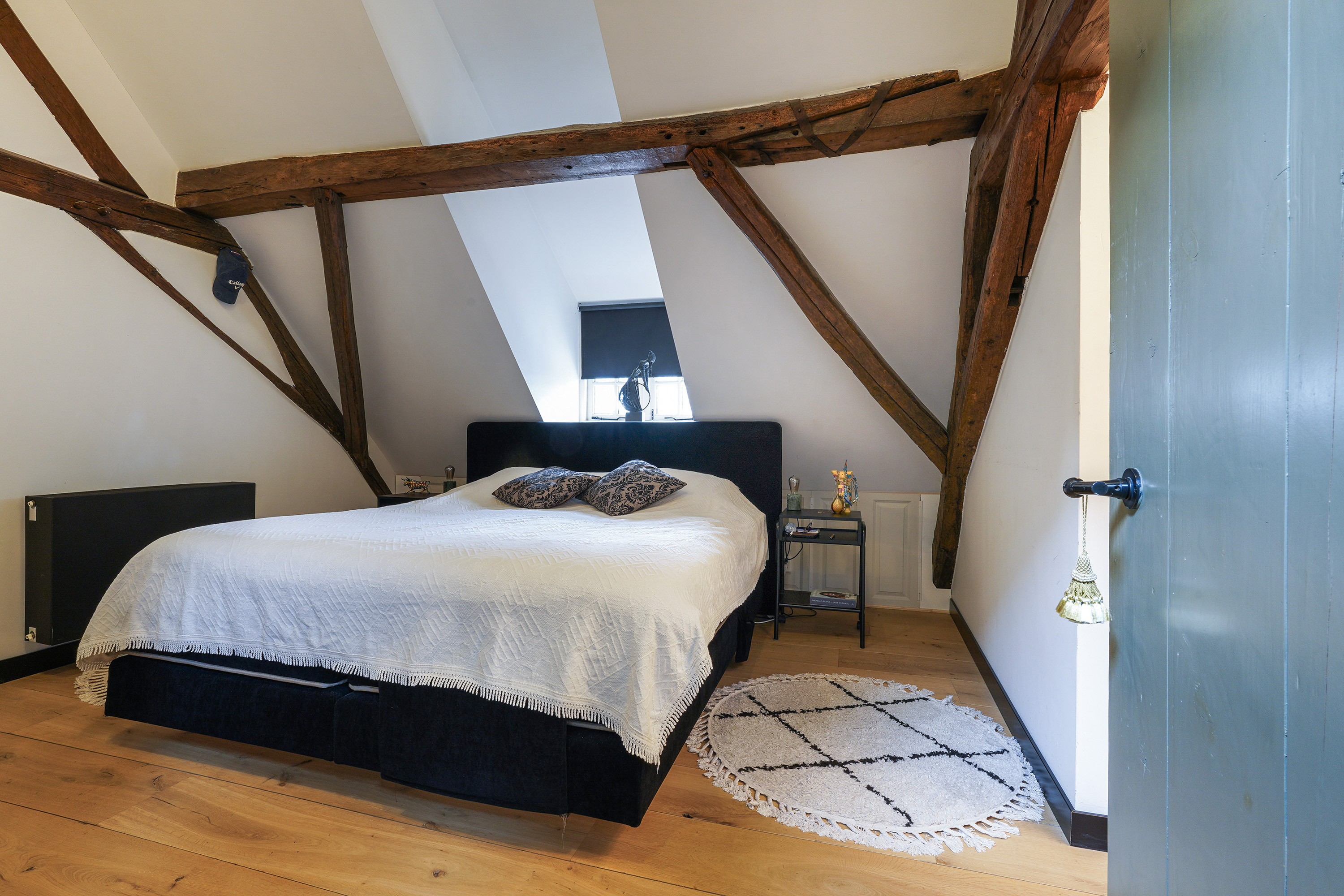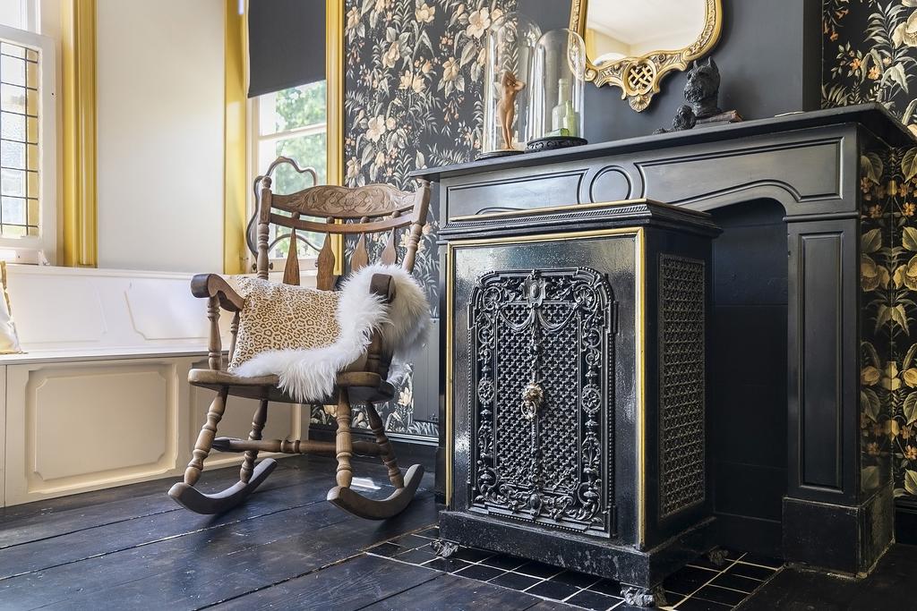 Heritage house Sprang-Capelle embraces history and considered renovation, offering a rare 420 m² living area within a 658 m² plot. This national heritage property is marked by extraordinary provenance, its 17th-century origins woven into exposed wooden beams, vaulted ceilings, and a grand sense of arrival. The main living room of nearly 90 m² is anchored by a pellet stove and illuminated by tall windows, with volumes softened by white plaster and timber floors. The heart of the home is a bespoke kitchen crafted in 2024, featuring custom cabinetry by Ecker Interieurbouw and generous space for dining, gathering, and quiet observation of the garden.