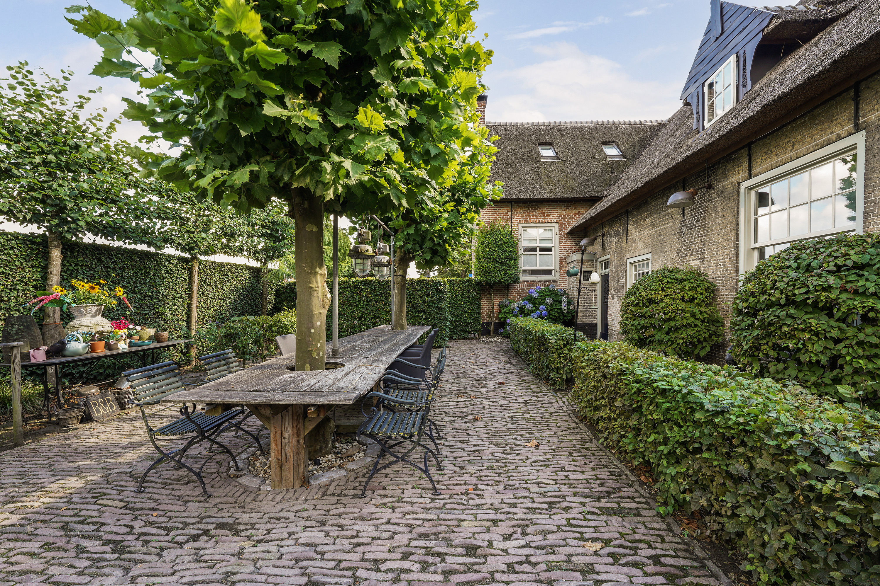 A cultivated rear garden extends the living space outdoors, framed by mature trees, cobbles, and dense hedges, providing both privacy and a rooted sense of place. Everyday life is eased by proximity to Sprang-Capelle’s amenities, while leisure pursuits lie moments away at the Loonse and Drunense Dunes or the Efteling amusement park. This heritage house for sale in Sprang-Capelle stands as an invitation to those who value legacy, comfort, and discretion in equal measure.