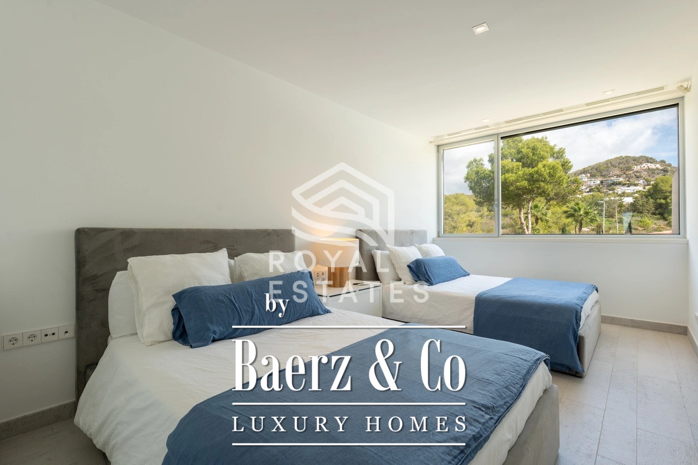 Within walking distance lie Talamanca Beach, acclaimed restaurants, and the cosmopolitan atmosphere of Marina Botafoch. The international airport is reached in under twenty minutes. This penthouse in Es Pouet offers not simply space and architecture but the rare promise of seafront living paired with ease and exclusivity.