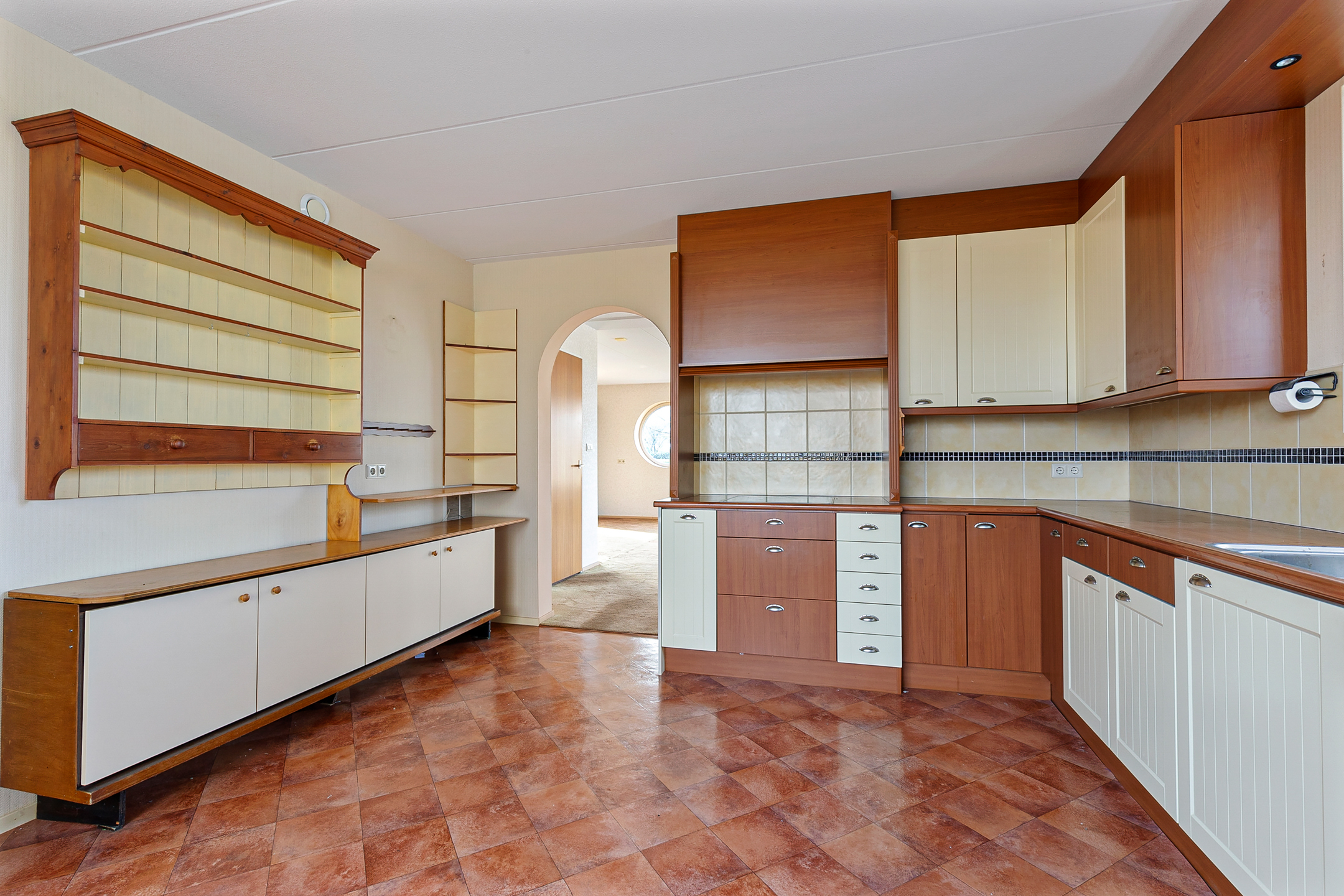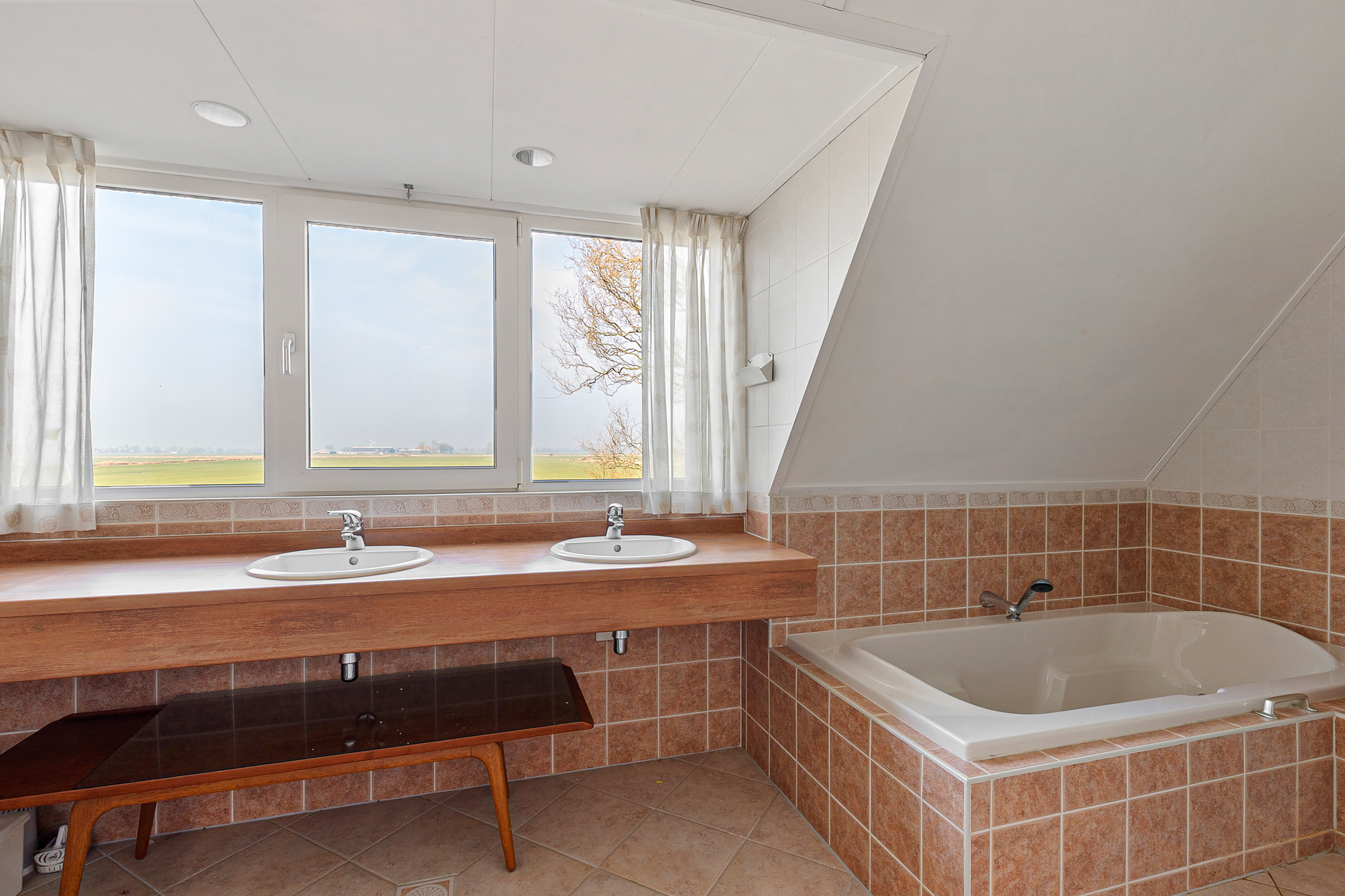 The entrance leads into a spacious hallway providing access to the various rooms. The generous living room is oriented towards the water and the typical Frisian vistas and, thanks to the large windows, offers breathtaking views. Adjacent is the conservatory with double garden doors, a wonderfully bright space that seamlessly connects indoor and outdoor living.