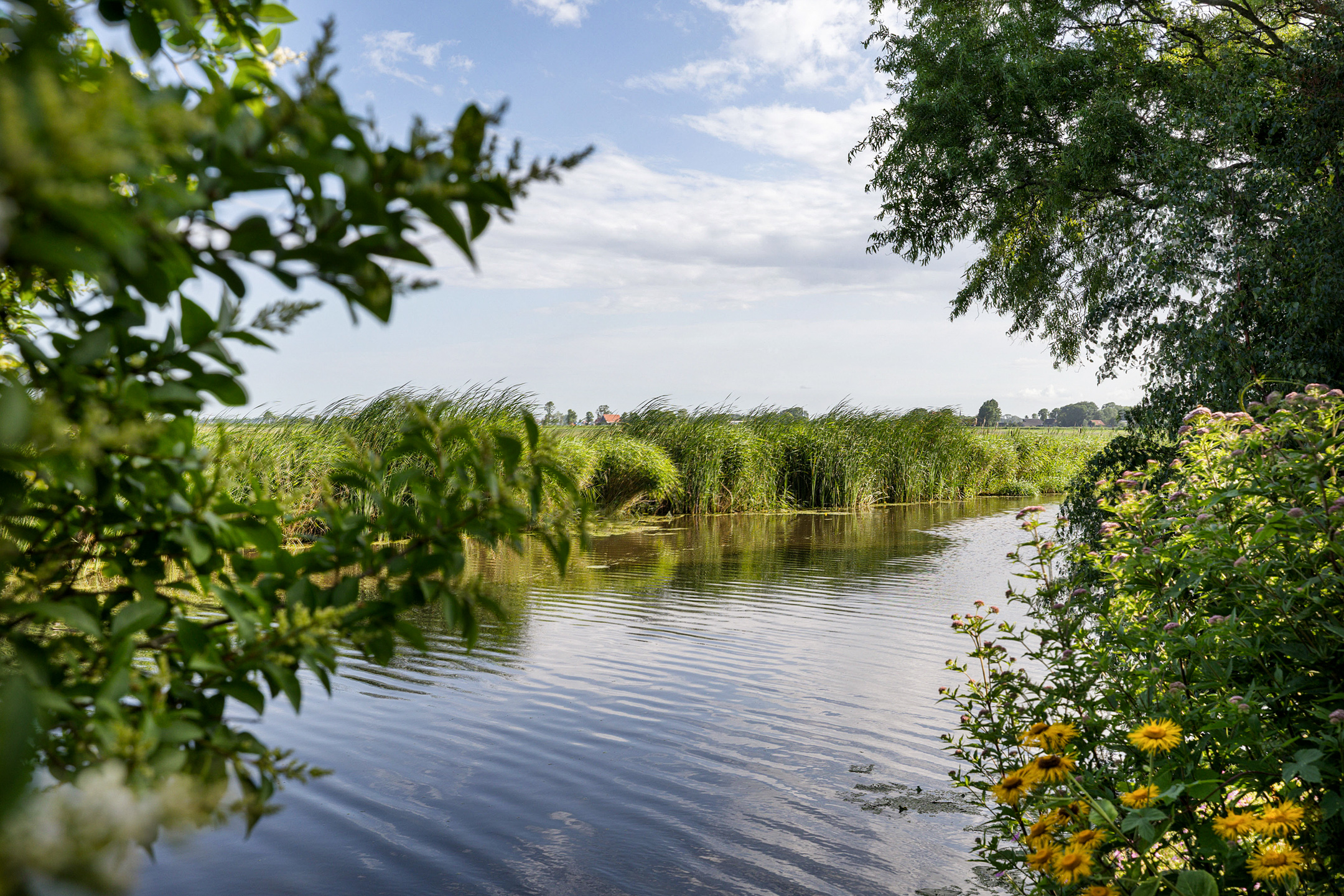 Thanks to its corner position with (private) water on all sides, the garden is completely free and offers optimal privacy. The rear garden features a small pond, a garden shed and along the bank several (older) jetties for mooring boats. Here you can enjoy the pure Frisian outdoor life from early morning until late evening. The navigable water is suitable for leisure boating and is directly connected to the Aldfeart towards Sneek, the Zwette towards Leeuwarden (Eleven Cities route) and the Bangafeart towards the Sneekermeer and Terherne.