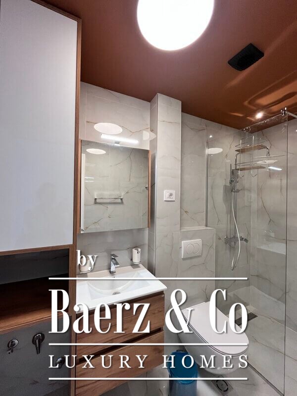 The building has 3 floors, while the apartment is on the 3rd floor. This project will have a pool. There is an option of buying a garage spot for 24 000e, which comes with a storage room. The building is connected to the main road by an asphalt road. Apartment is already finished and ready for furnishing, while the garage, the pool and surrounding of the building will be done by the end of 2025.
