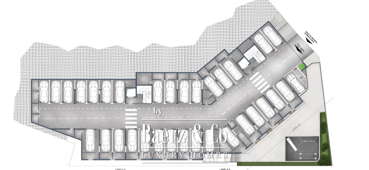- Fire protection system in the garage made to high standards: sprinkler system in the passages and above each parking space, JET smoke extraction system, backup power supply via a diesel electric generator, and a fire alarm control panel.