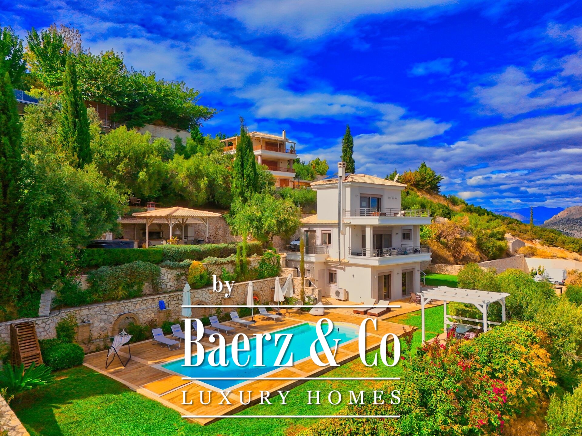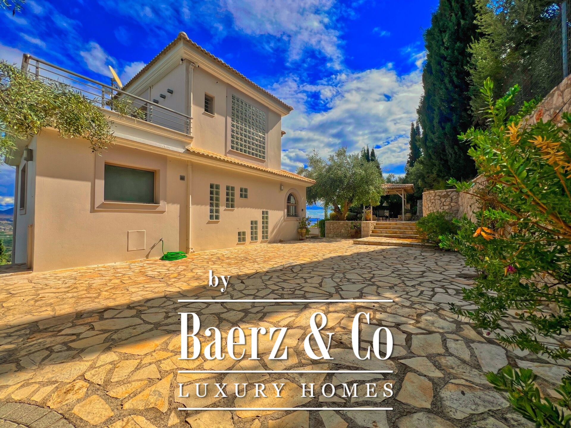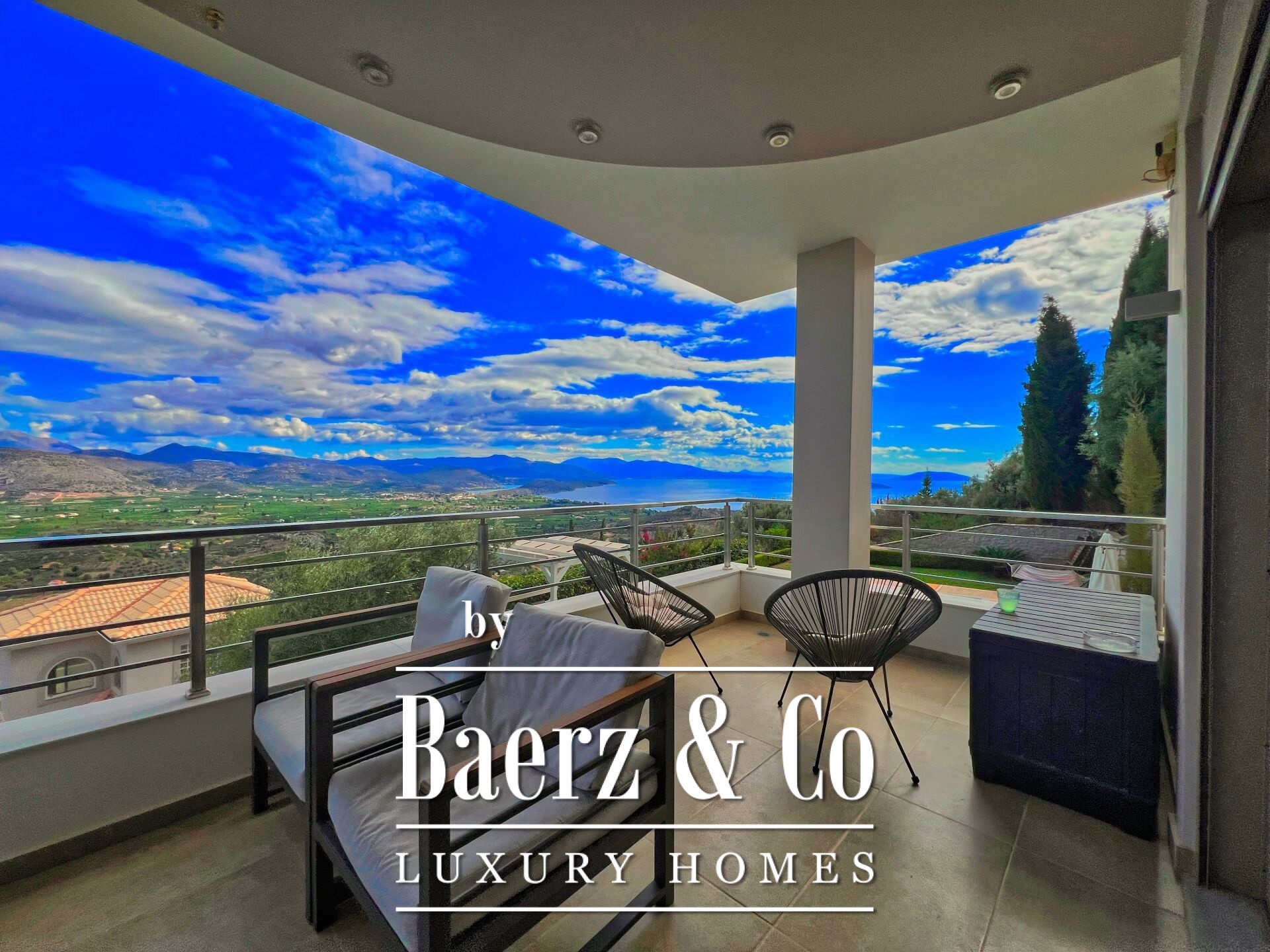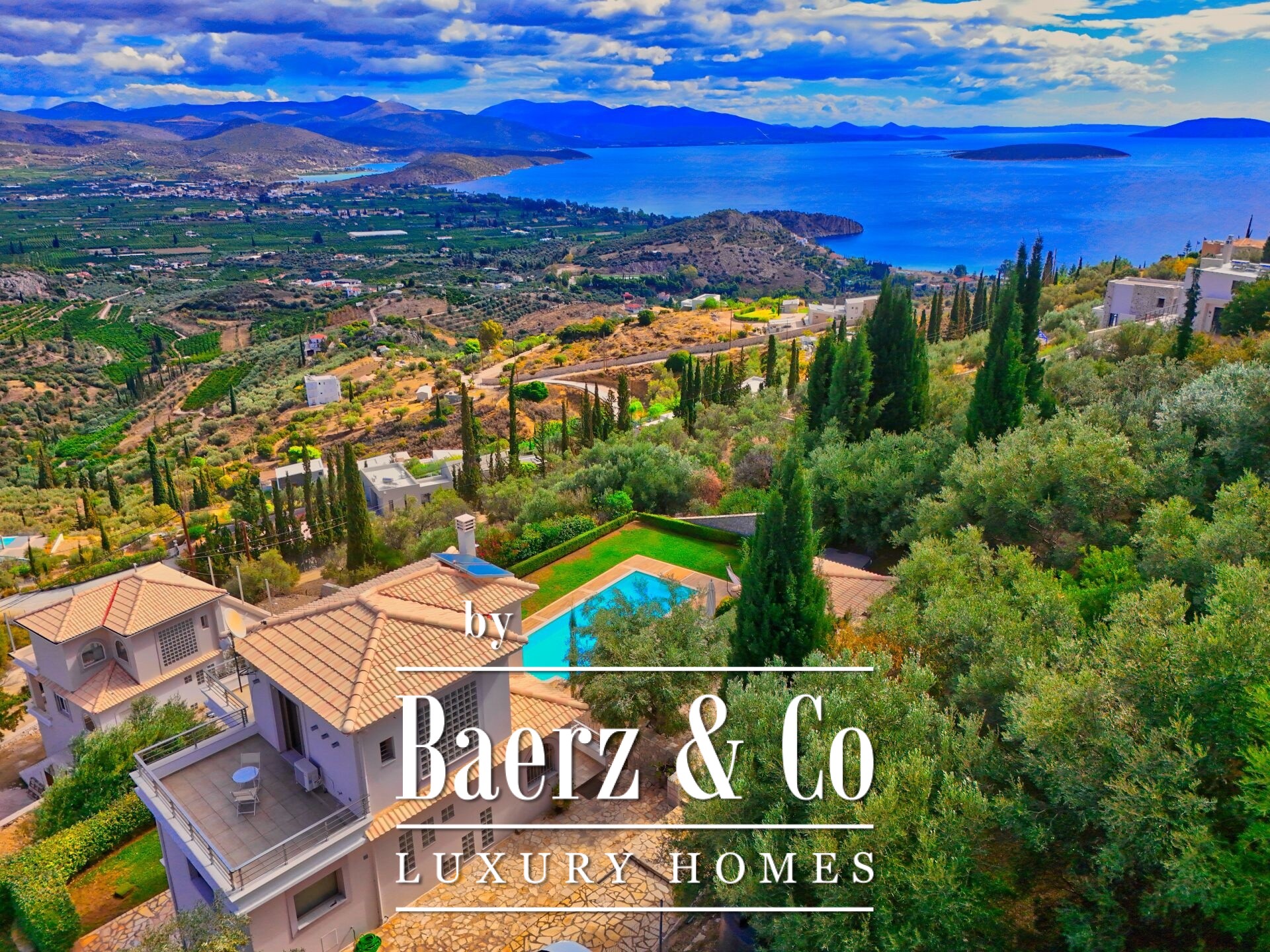 This luxury villa Tolo sits on one of the area’s highest points, commanding panoramic views of the sea, Spetses island, the mountains and open countryside. The property stretches over 165 m² across three thoughtfully arranged levels, offering a sense of seclusion while remaining just 2 km from the sandy beach and local shops.