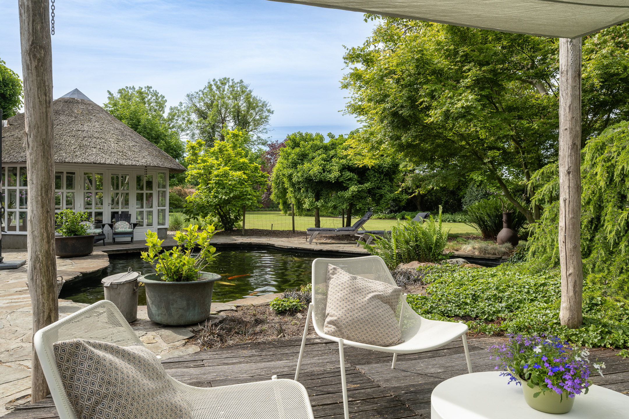 Set on approximately 1 hectare of land, the estate offers a park-like garden with mature trees, a pond, and multiple terraces. For equestrian enthusiasts, there are stables, a fully fenced paddock, and direct riding access to the Bedafse Bergen trails. Additional features include a fruit orchard, vegetable garden, natural pasture pond, animal shelter, an authentic water well, and even a converted baker’s cottage serving as a charming chicken coop.