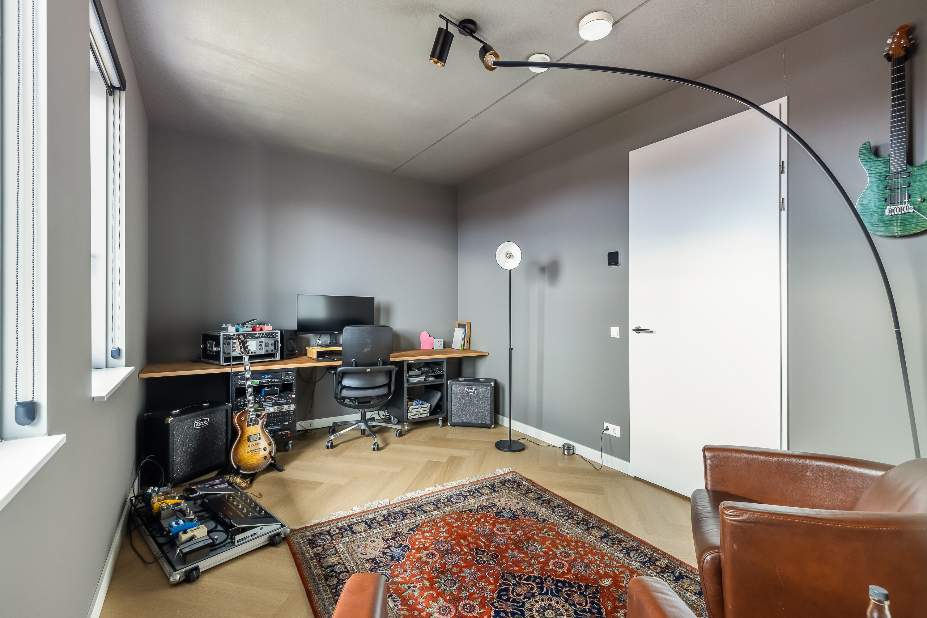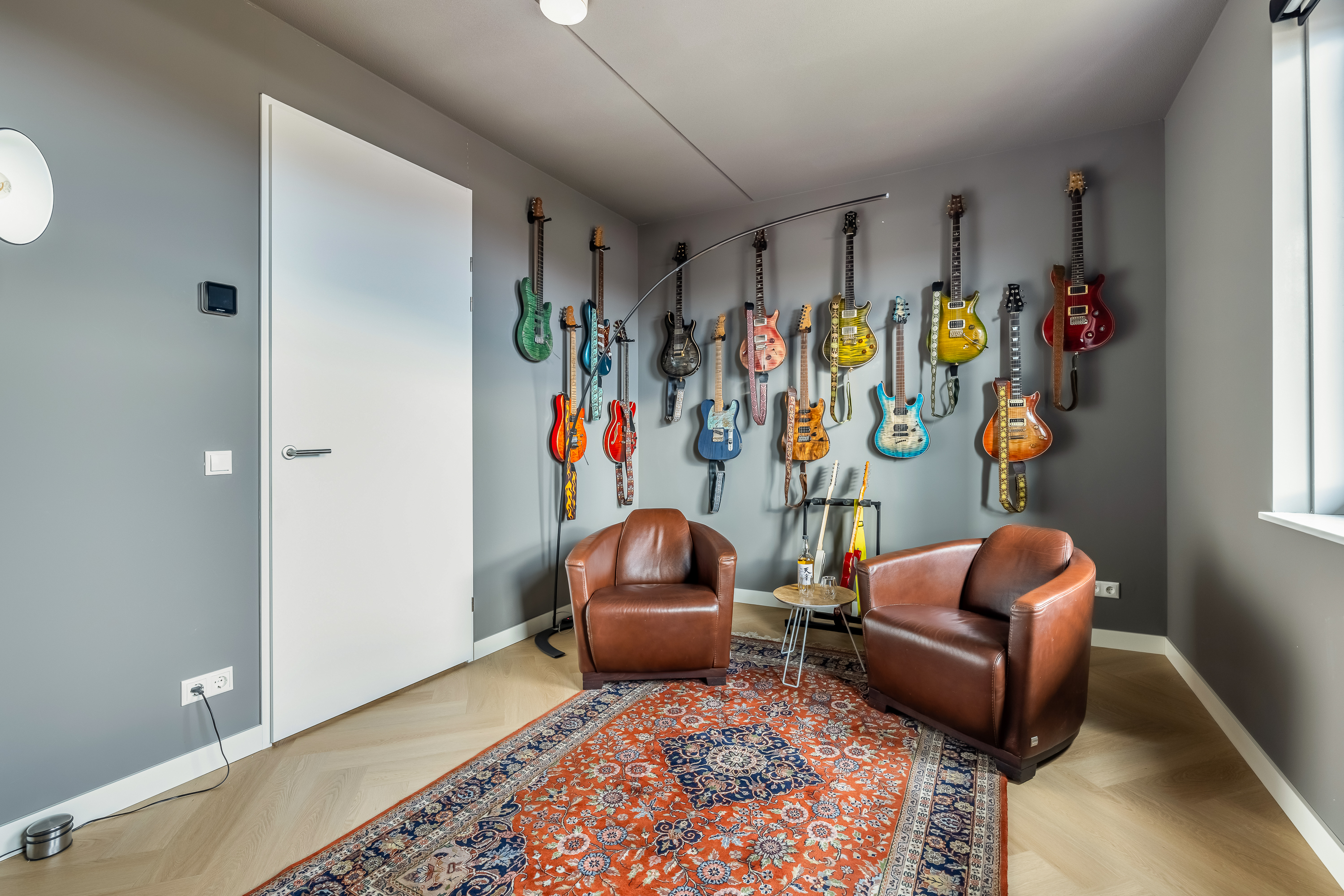 De woning is tot in detail ontworpen. Warm, luxe en eigentijds, zonder koel of afstandelijk te worden. De maatwerkkeuken is een echte leefkeuken. Kasten tot aan het plafond, mooie materialen en goede inbouwapparatuur die met wifi te bedienen is. Je zet de oven alvast aan onderweg naar huis, laat de broodjes bakken voordat je beneden komt en schuift daarna meteen aan om samen te eten. Alles is strak uitgelijnd, nergens standaard, alles klopt. Dit is een huis voor mensen die oog hebben voor detail.