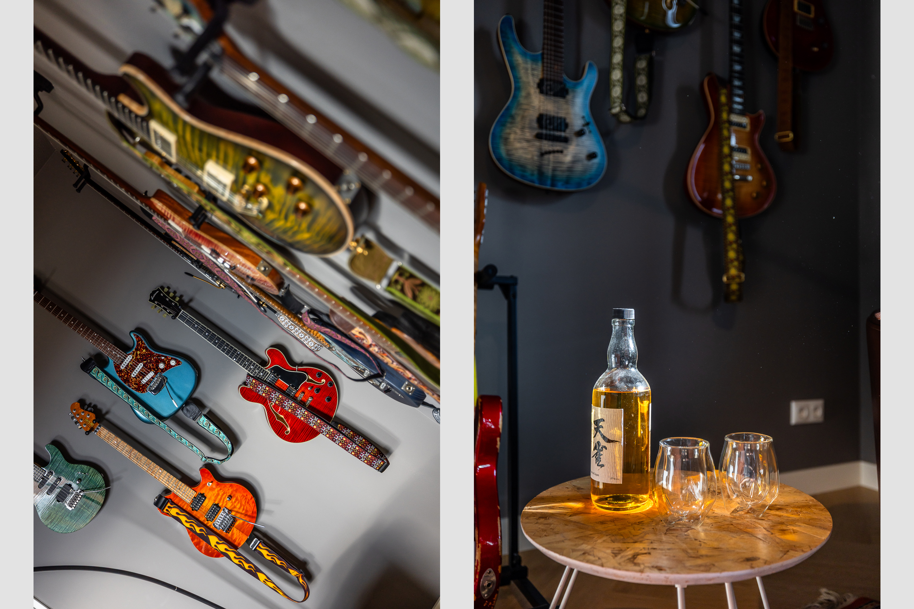 Zodra je binnenkomt, valt alles samen. De hoogte van de voorkamer is indrukwekkend. Met bijna vijf meter tot het plafond voelt deze ruimte groots, licht en vrij. De ramen lopen helemaal door tot boven en laten het daglicht op een bijna theatrale manier naar binnen vallen. Dit is zo’n ruimte die je niet hoeft in te richten, die vertelt zelf al een verhaal. Een plek waar je muziek maakt, yoga doet, werkt, speelt of gewoon even zit en naar de lucht kijkt terwijl de kleuren van de dag veranderen.