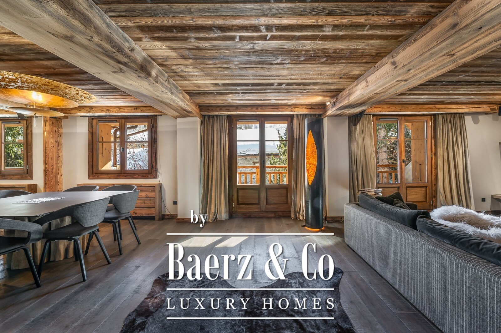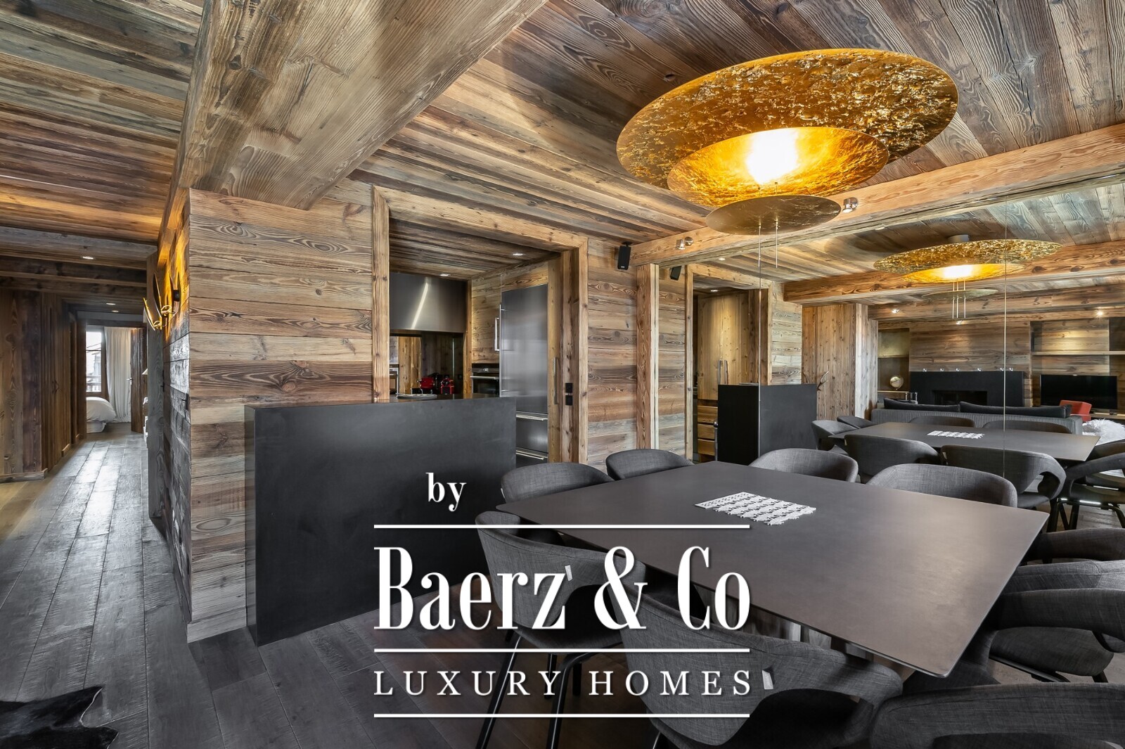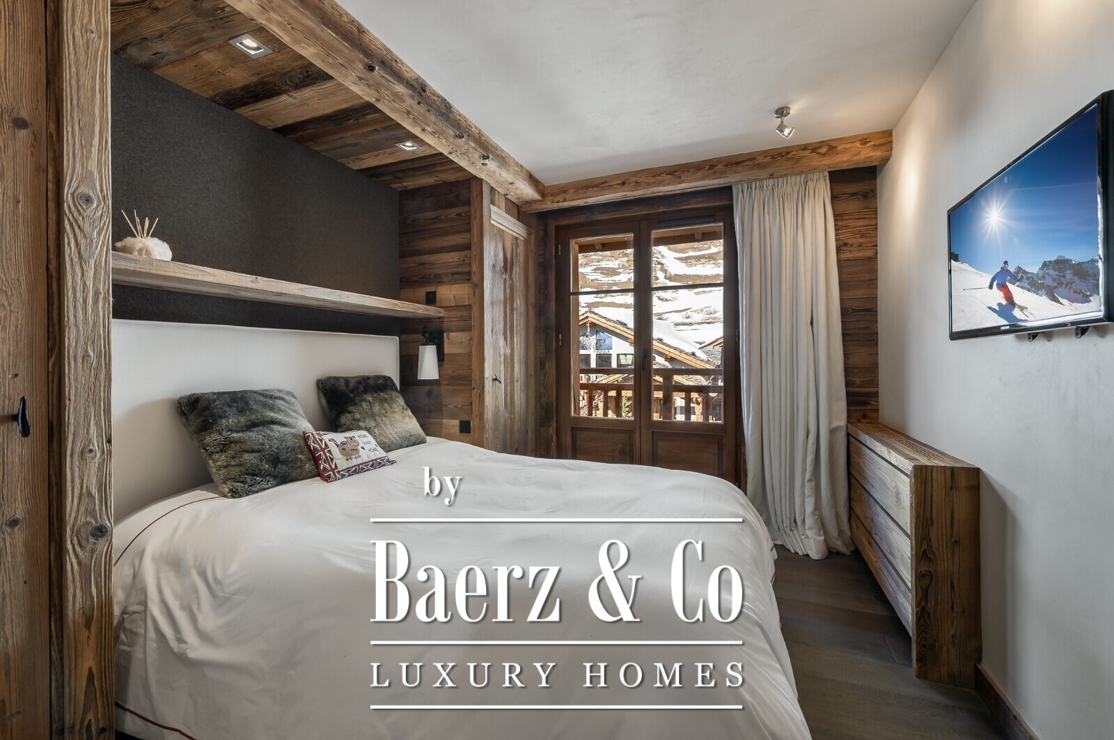 This magnificent apartment is located in a small luxury residence in the heart of the old village, one of the most sought-after areas of Val-d'Isère. This apartment offers spacious rooms, a beautiful living room with a fireplace, three double bedrooms, a dormitory, an indoor parking space, and two cellars. The high-quality materials and tasteful decor give it a warm atmosphere in a distinctly Alpine style. The apartment's south-facing aspect allows for sunshine throughout the day.