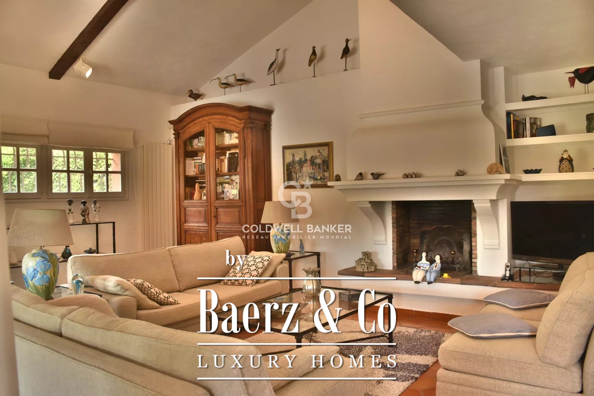 This Provençal villa Valbonne is quietly situated moments from the heart of this revered Côte d’Azur village. The property offers 200 m² of considered living space across two levels, set within a gently landscaped 2,670 m² park filled with olive trees and Mediterranean shrubs. The villa blends classic regional architecture with contemporary comfort, combining high-ceilinged living areas and a stone fireplace with generous light from bay windows that open to a covered terrace and garden.