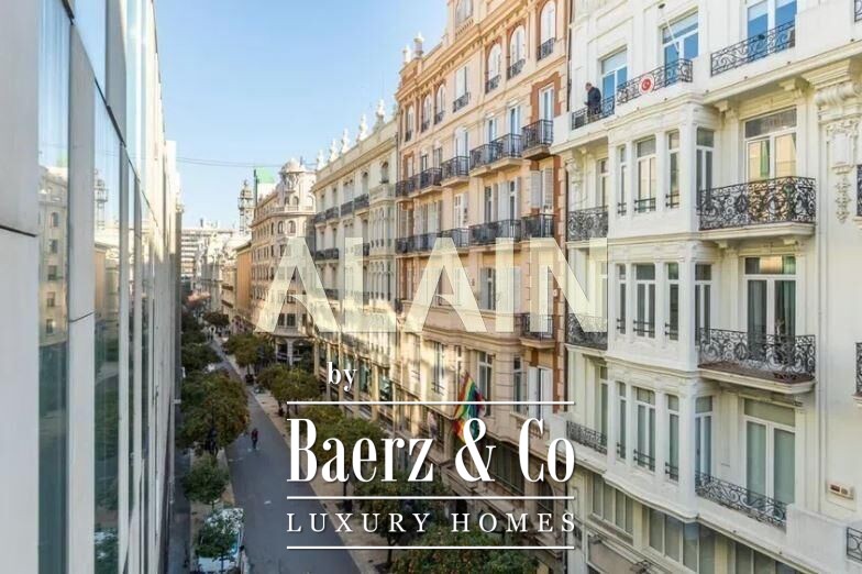 Baerz & Co is selling an exceptional apartment on Paseo Ruzafa next to Valencia's Town Hall Square, located in the heart of the city. With a generous constructed area of 243 square meters, this property masterfully combines classic charm with the modern amenities any owner could desire. Currently configured as an office and classified for residential use according to the land registry, it offers multiple possibilities for residential, business, or even your new home. The layout includes a spacious entrance hall that leads to seven versatile rooms ideal for both offices and private bedrooms; three well-distributed restrooms complement