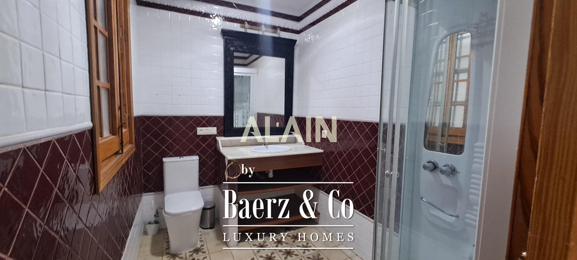 A large kitchen, fully equipped and enclosed by double doors, provides space for gatherings or solitude. The living spaces open onto an elegant balcony, offering connection to the rhythm of Valencia below. Thoughtful amenities include an elevator, air conditioning, storeroom, robust security, video intercom, and wardrobe storage. Every detail suggests enduring quality, from the armored door to the mirador and washing room.
