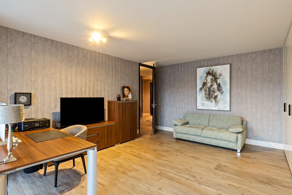 The entrance of Rembrandt Résidence immediately makes a neat and representative impression. Through the shared, secure entrance with intercom panel and mailboxes, you reach the stylish staircase and elevator that comfortably take you to the apartment. In the basement level, you have access to a spacious private storage room, ideal for bicycles and additional storage, as well as access to the secured parking garage with two private parking spaces at your disposal. Additionally, two extra parking spaces are optionally available for purchase at €20,000,- per space. Everything is generously designed, well-organized, and at the level you would expect from this apartment.