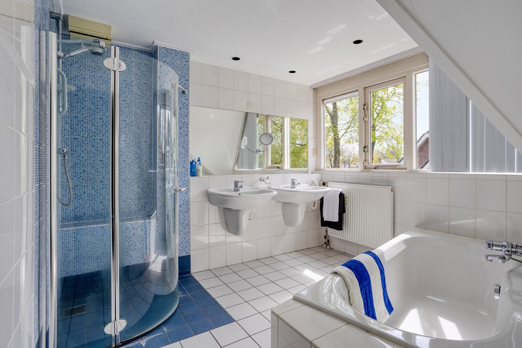 Via the fixed staircase in the hallway, you reach the first floor. Here you will find no fewer than four bedrooms, two bathrooms, and a practical storage room, making this floor highly functional.