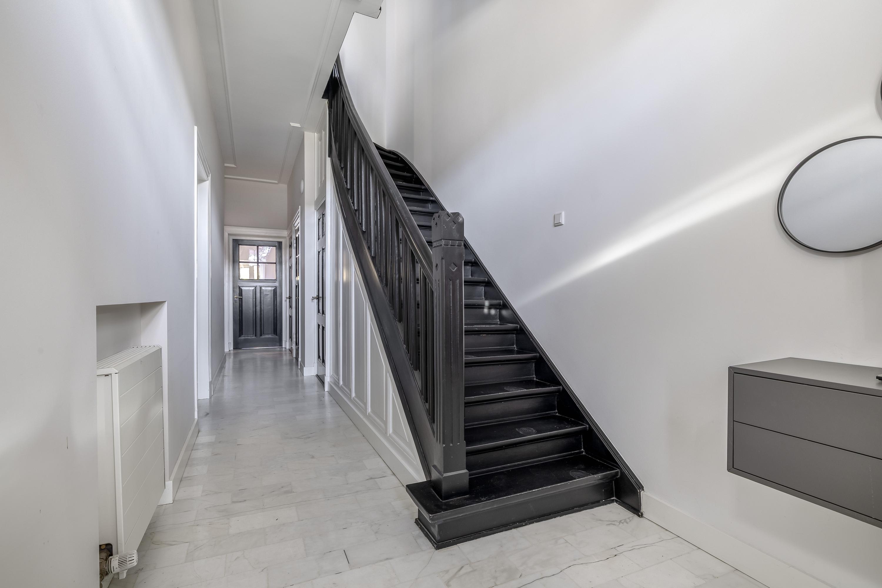 Townhouse Venlo is a remarkable example of 1920s architecture set in the heart of the city, combining historic character with contemporary comfort and a privileged outlook over the Rosarium. This residence spans 225 m² across three levels, offering five bedrooms, two bathrooms, and an abundance of natural light throughout. From the wide entrance hall with its Bianco Carrara marble tile floor to the spacious living room finished in French oak herringbone parquet, every space resonates with quiet refinement and authenticity.