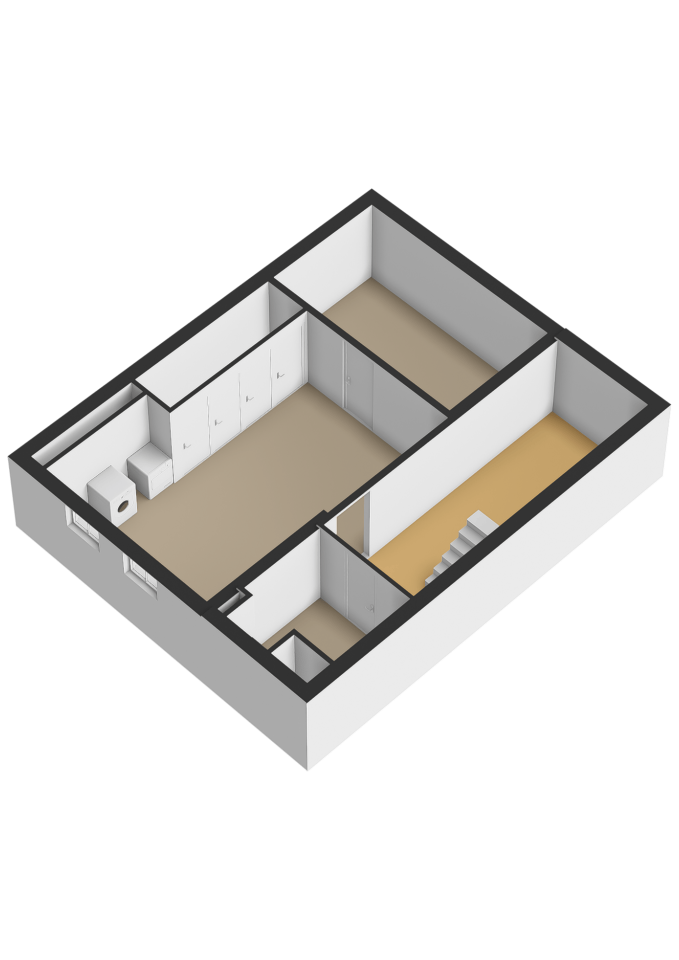The basement consists of multiple rooms. Here you will find the utility meters, inverter for the solar panels, laundry connections, water softener and various built-in cupboards.