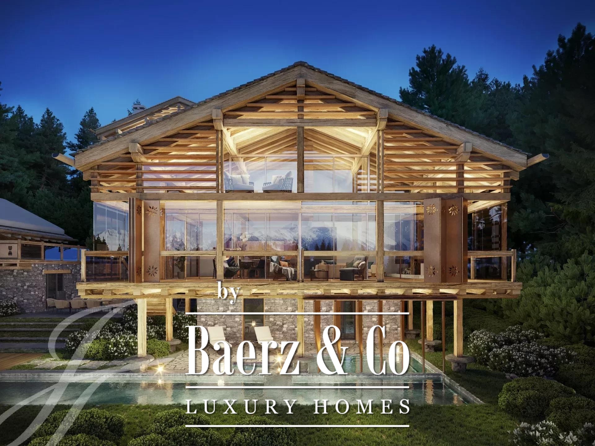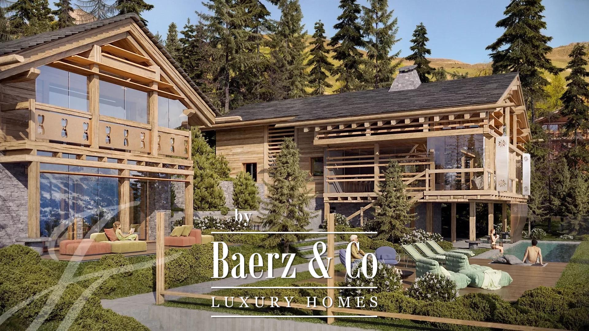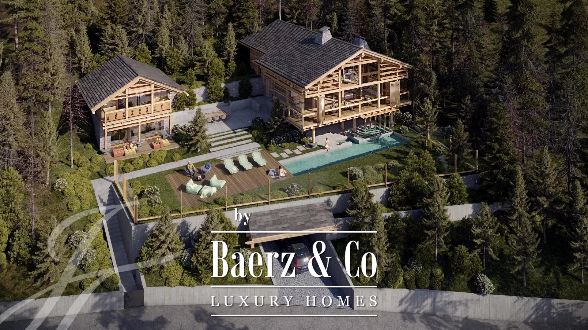 to a sumptuous master suite.The guest chalet has 2 floors, with 2 double bedrooms and en-suite bathroom. An open kitchen, living room, dining room and private south-facing terrace offer perfect independence.Both chalets are bathed in light and enjoy panoramic views.The plus points of this exceptional property: - Newly landscaped outdoor pool and gardens- Underground parking with direct access to both chalets- Customizable finishes to suit future owners' preferencesA rare combination of luxury, comfort and nature.