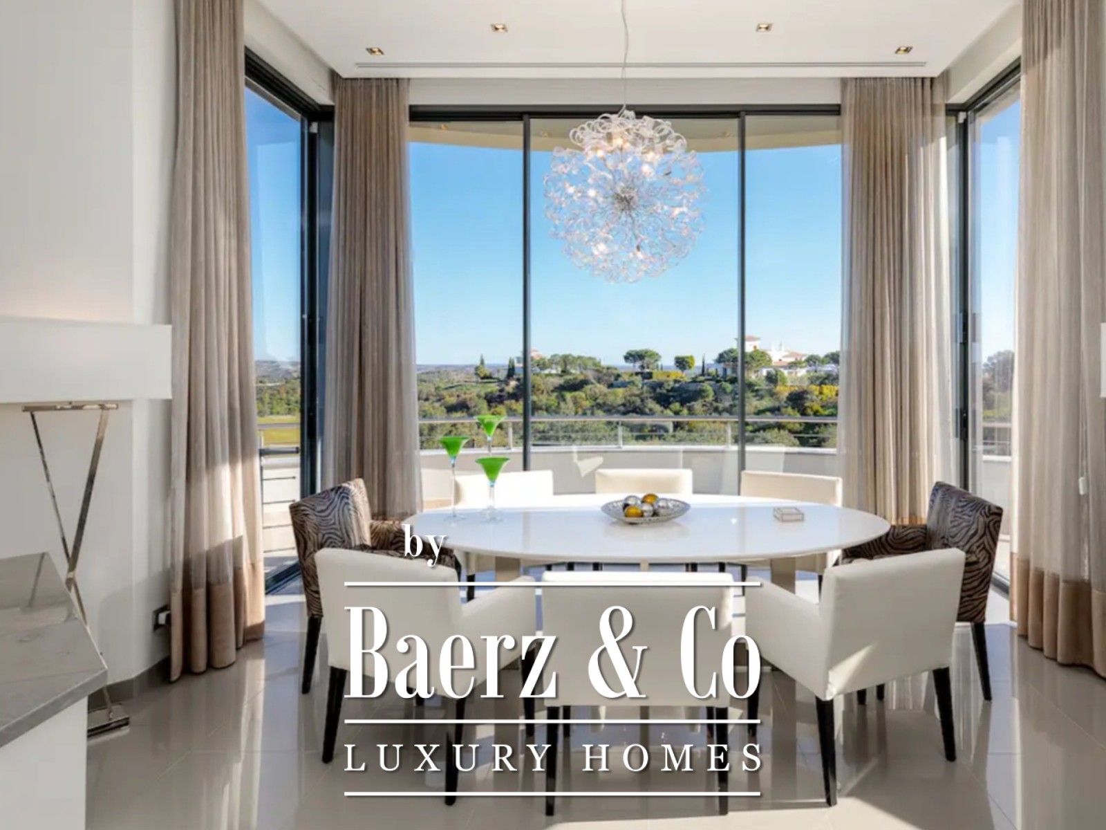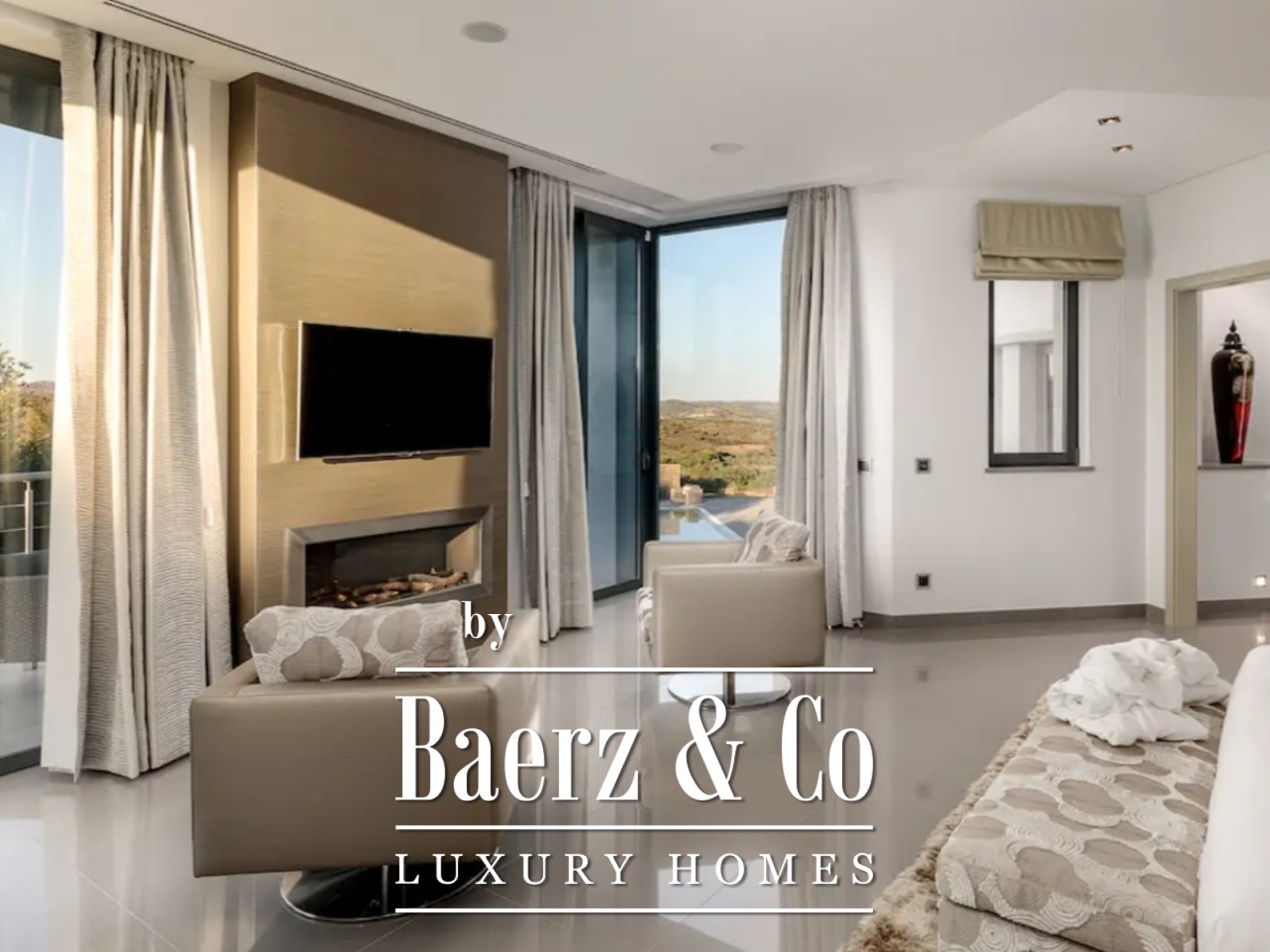 Villa Vila Real de Santo António stands as a statement of refined living, commanding sweeping views of the Monte Rei Jack Nicklaus Signature North Course, the Atlantic, and the Serra do Caldeirão. This 446 m² property, set on a 2,368 m² plot, offers a fully furnished, high-design environment where every space is honed for comfort and privacy.
